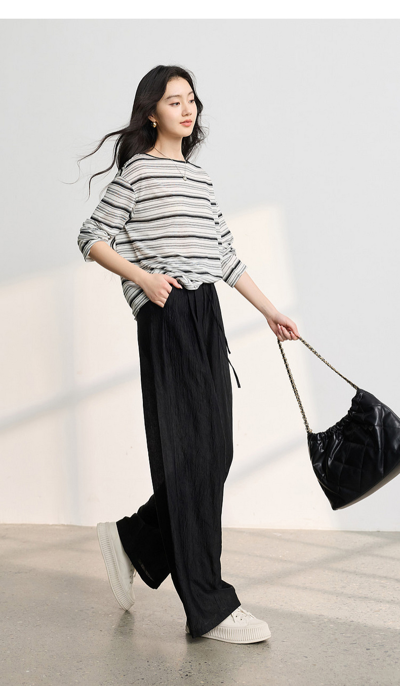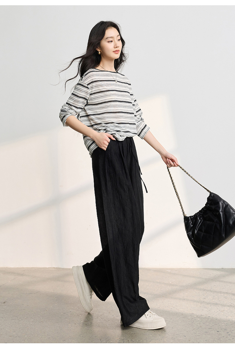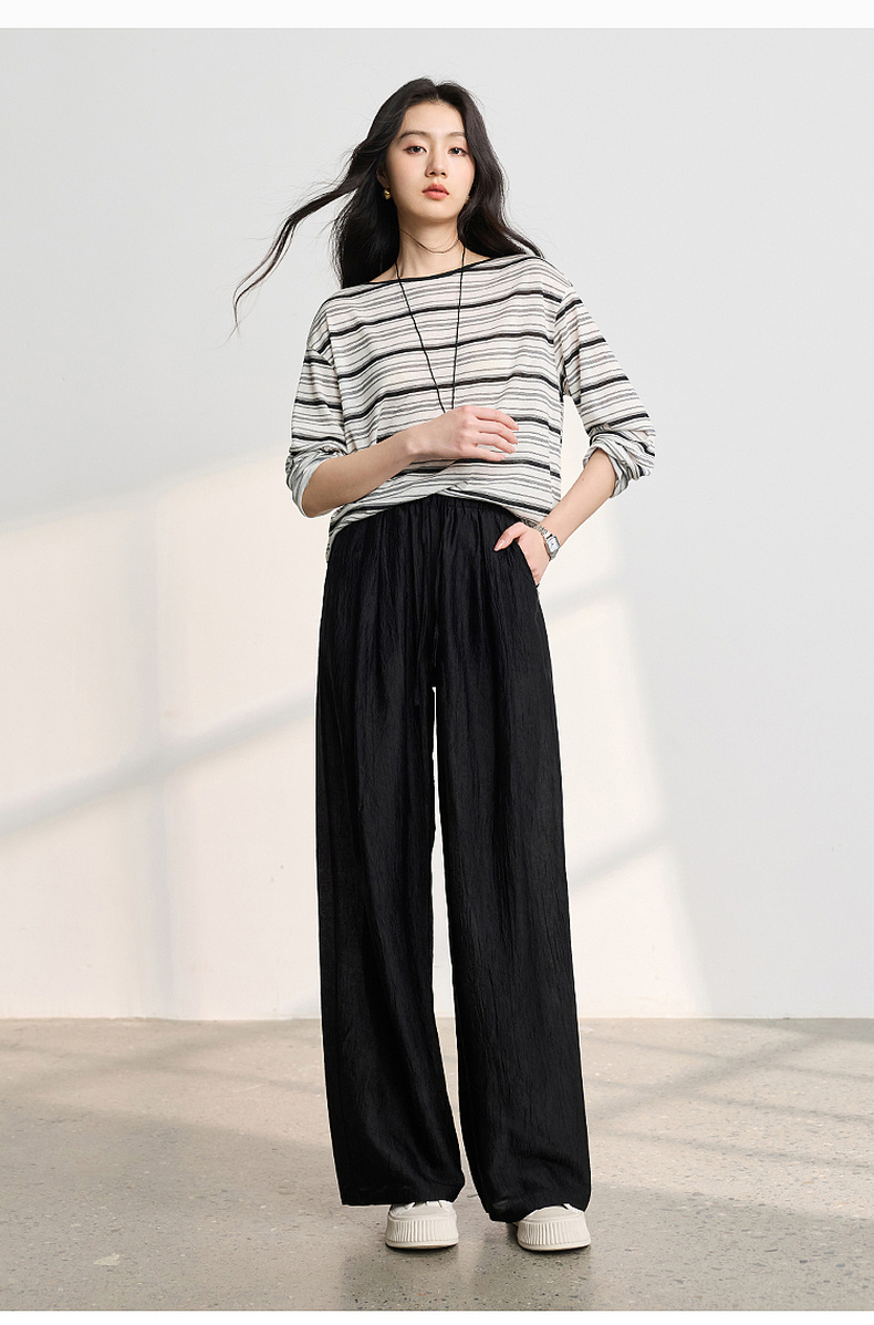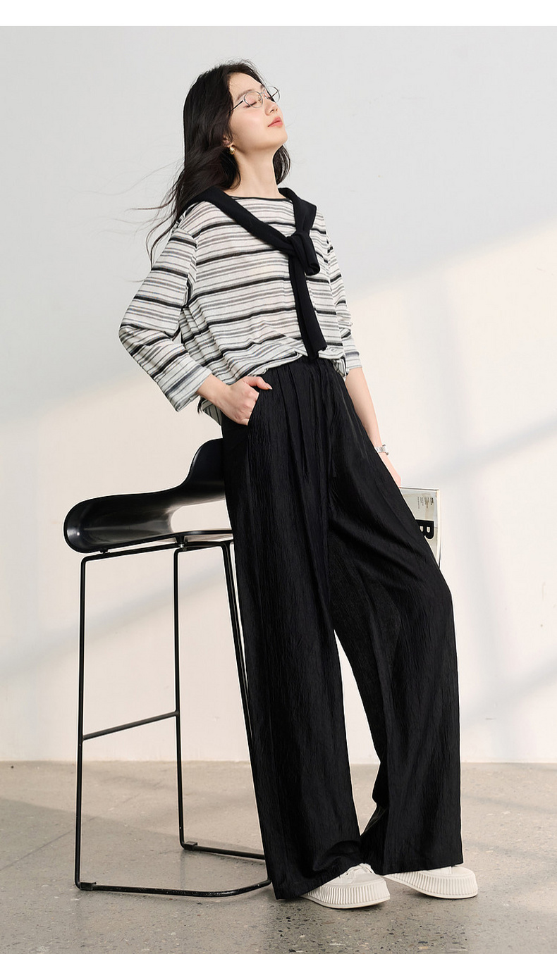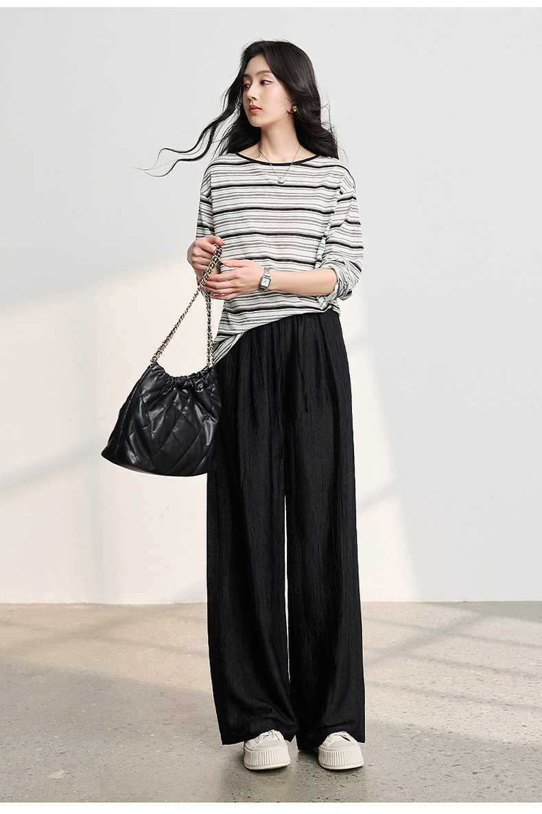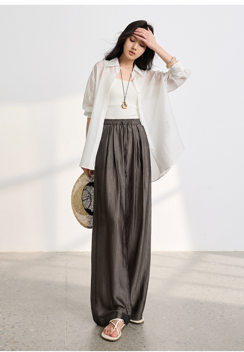 【醋酸休闲裤】三彩2026春季新款长裤宽松阔腿裤高腰垂感显瘦M