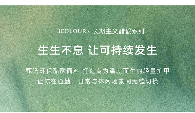 - 3COLOUR,一直致力于探索自我与时尚审美,用穿衣哲学折射生活主张,在流动中探寻恒久。