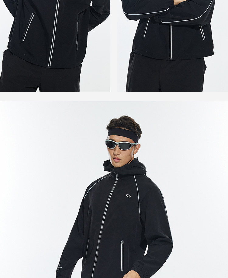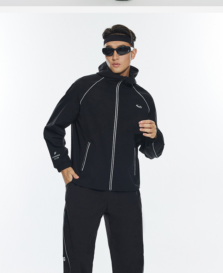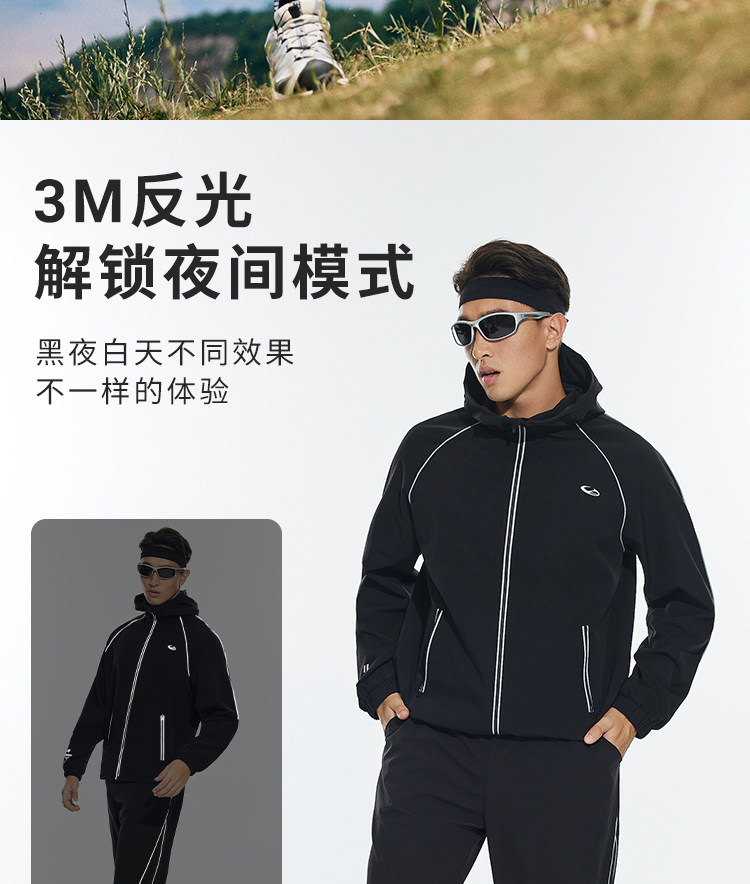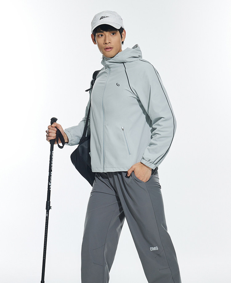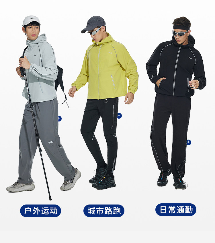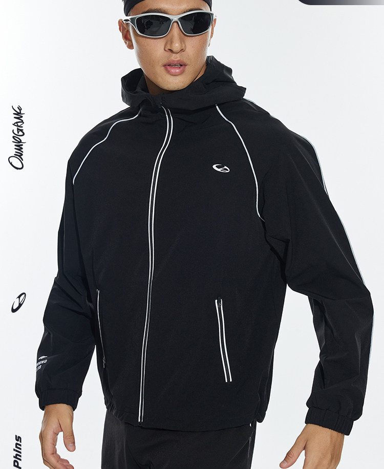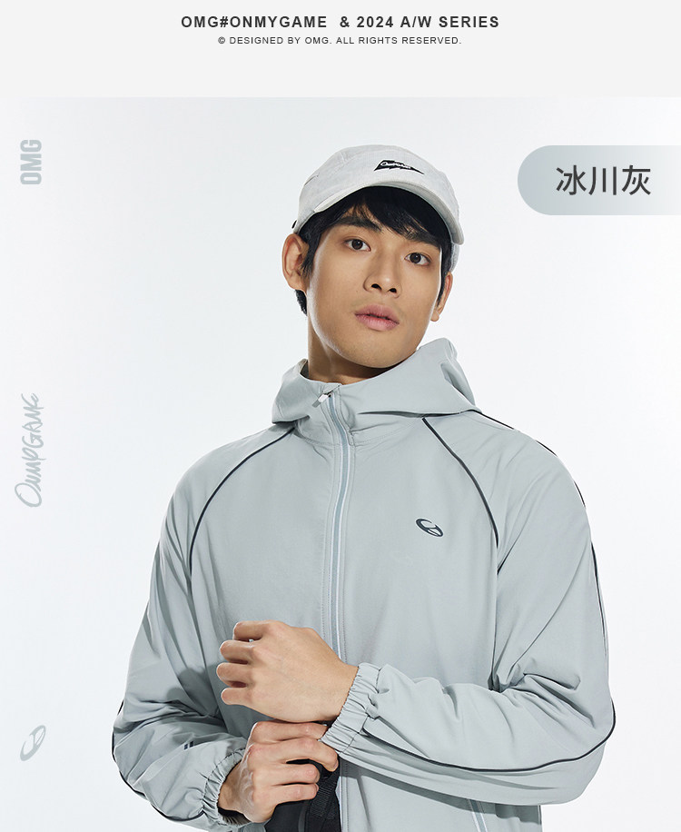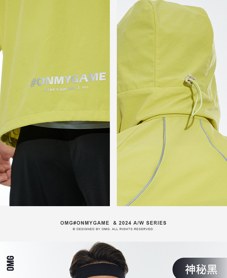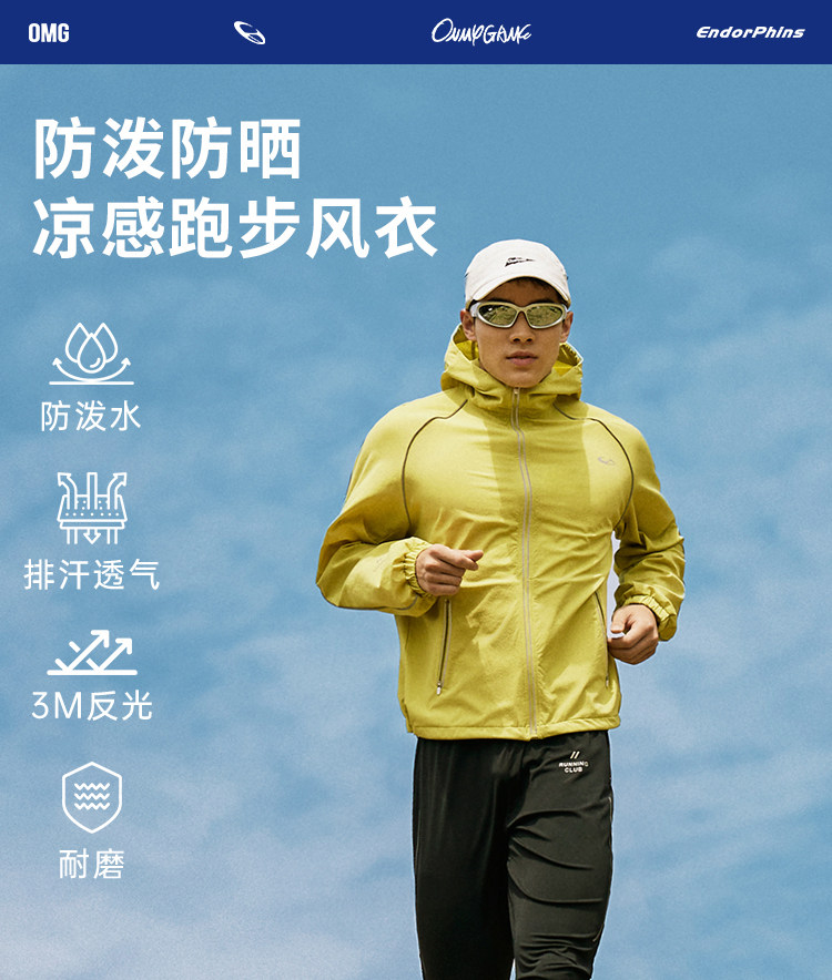OMG运动 【防泼水】跑步外套男户外春秋季连帽夹克防风休闲软壳