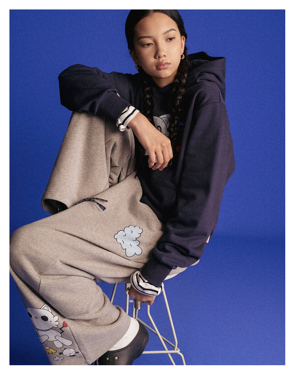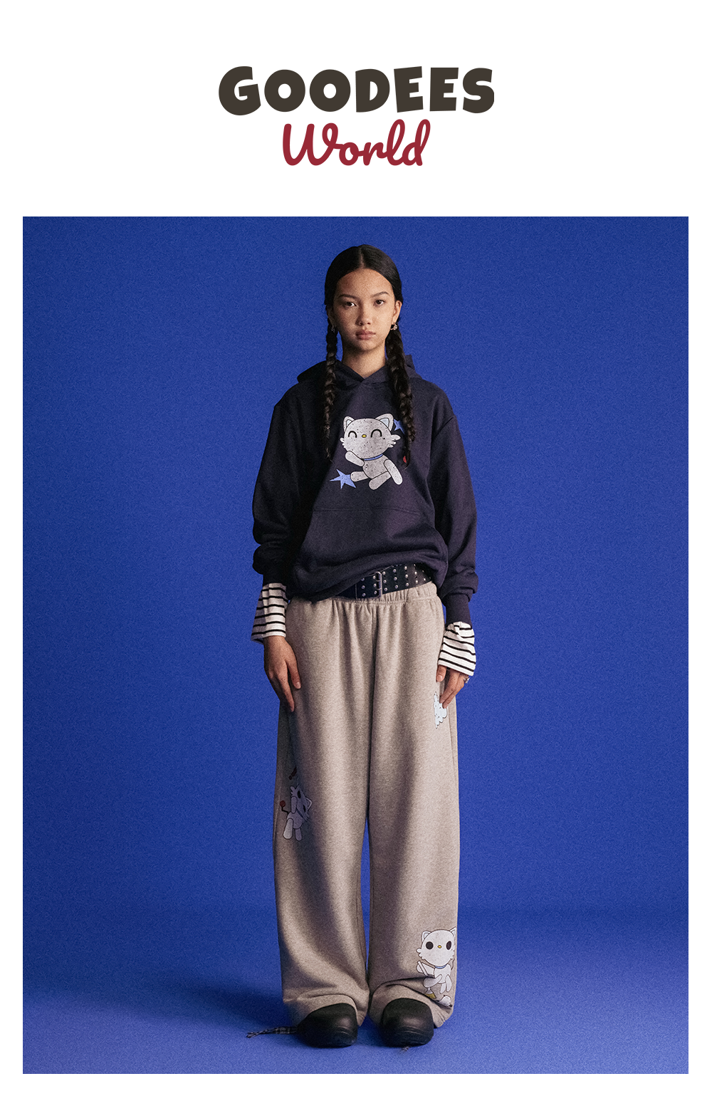 GOODBAI GOODEES做旧印花阔腿休闲卫裤