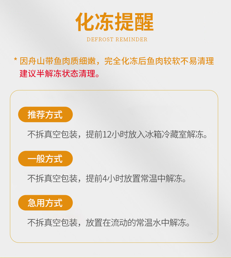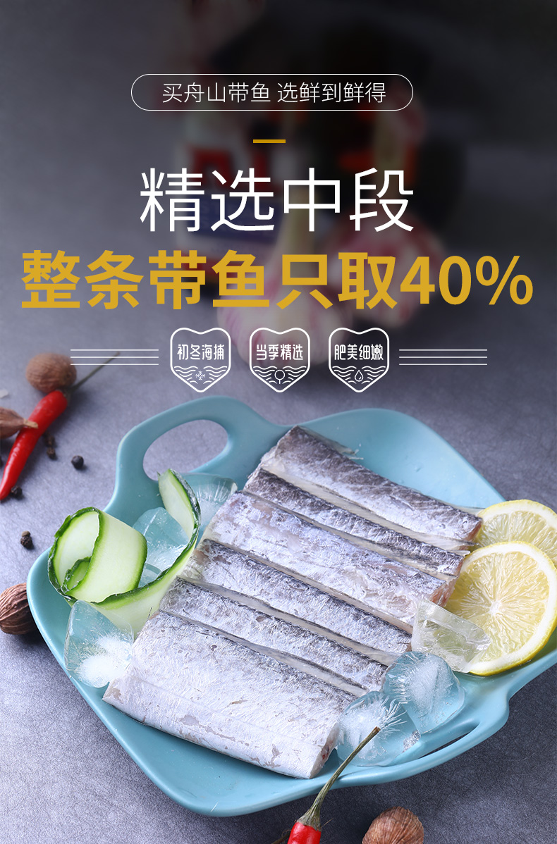 【新鲜冷冻】鲜到鲜得 舟山黄金段带鱼 400g*4包 去头去尾无肚段