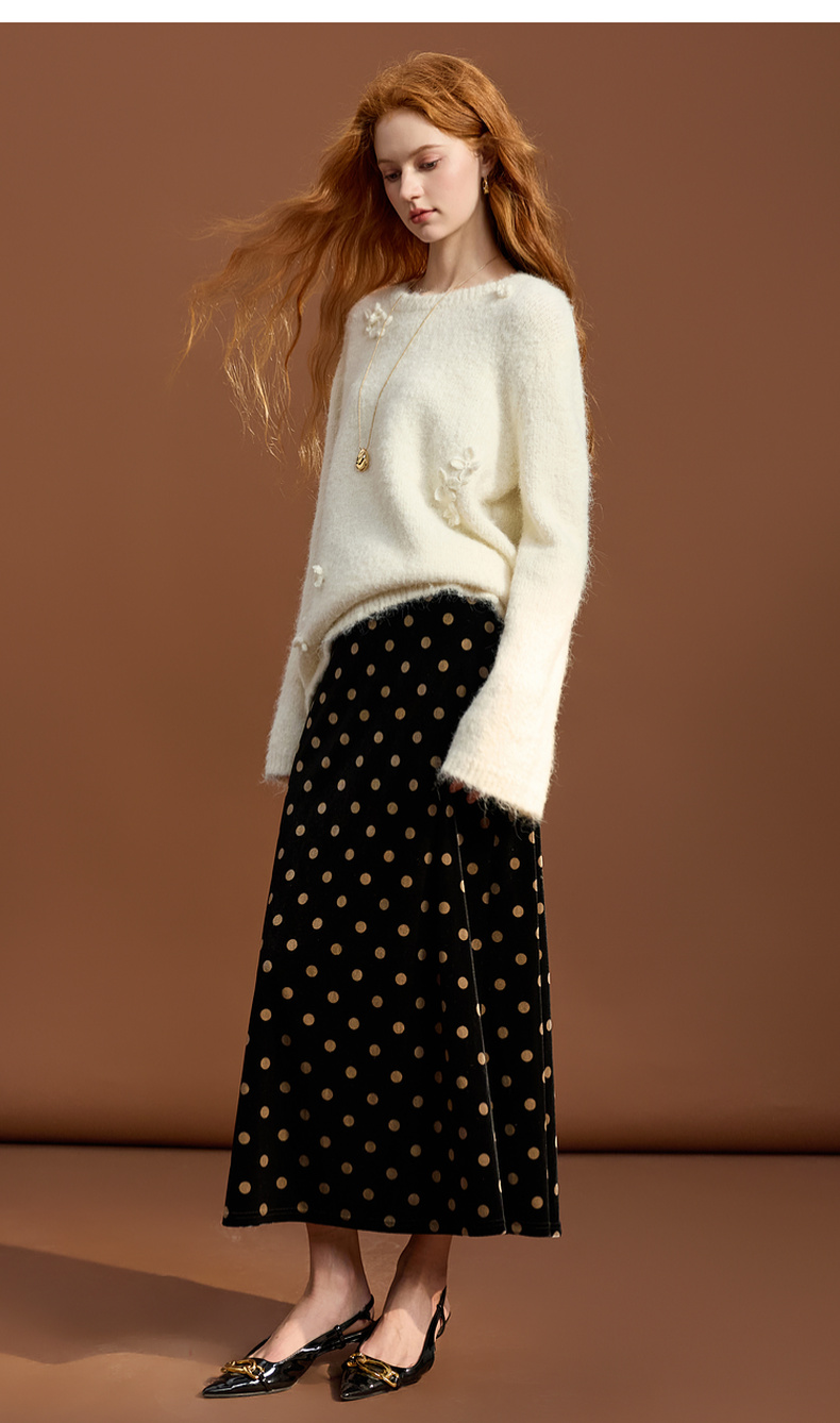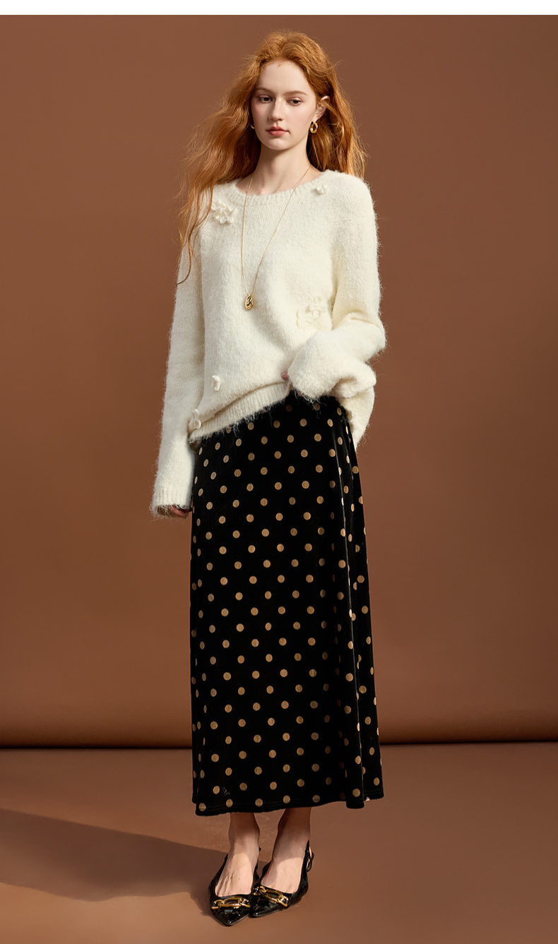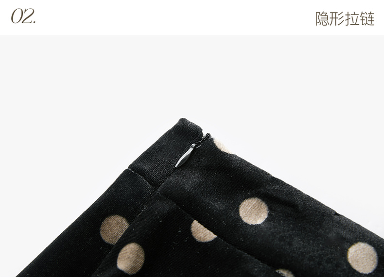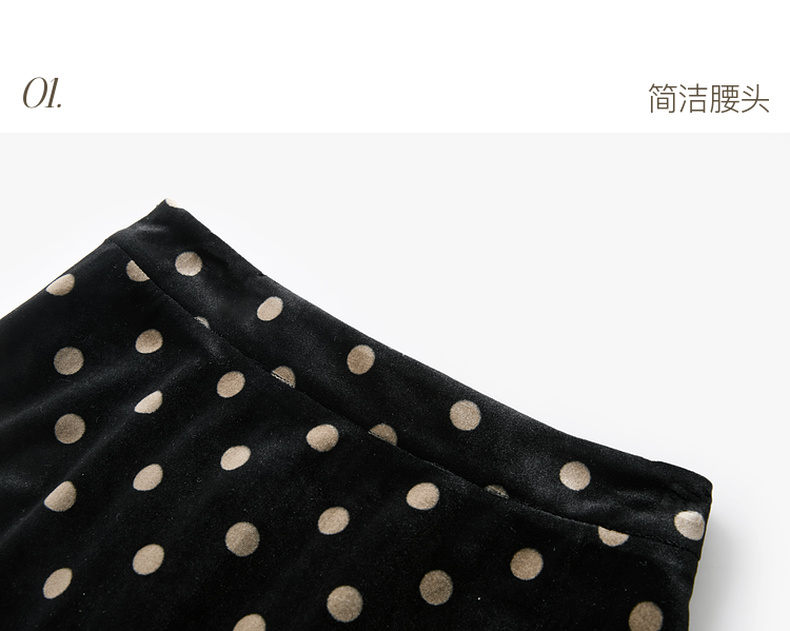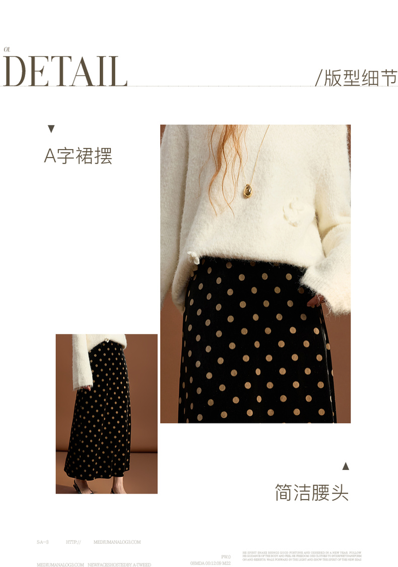 三彩2025冬季新款波点丝绒半身裙A字裙长裙复古优雅M
