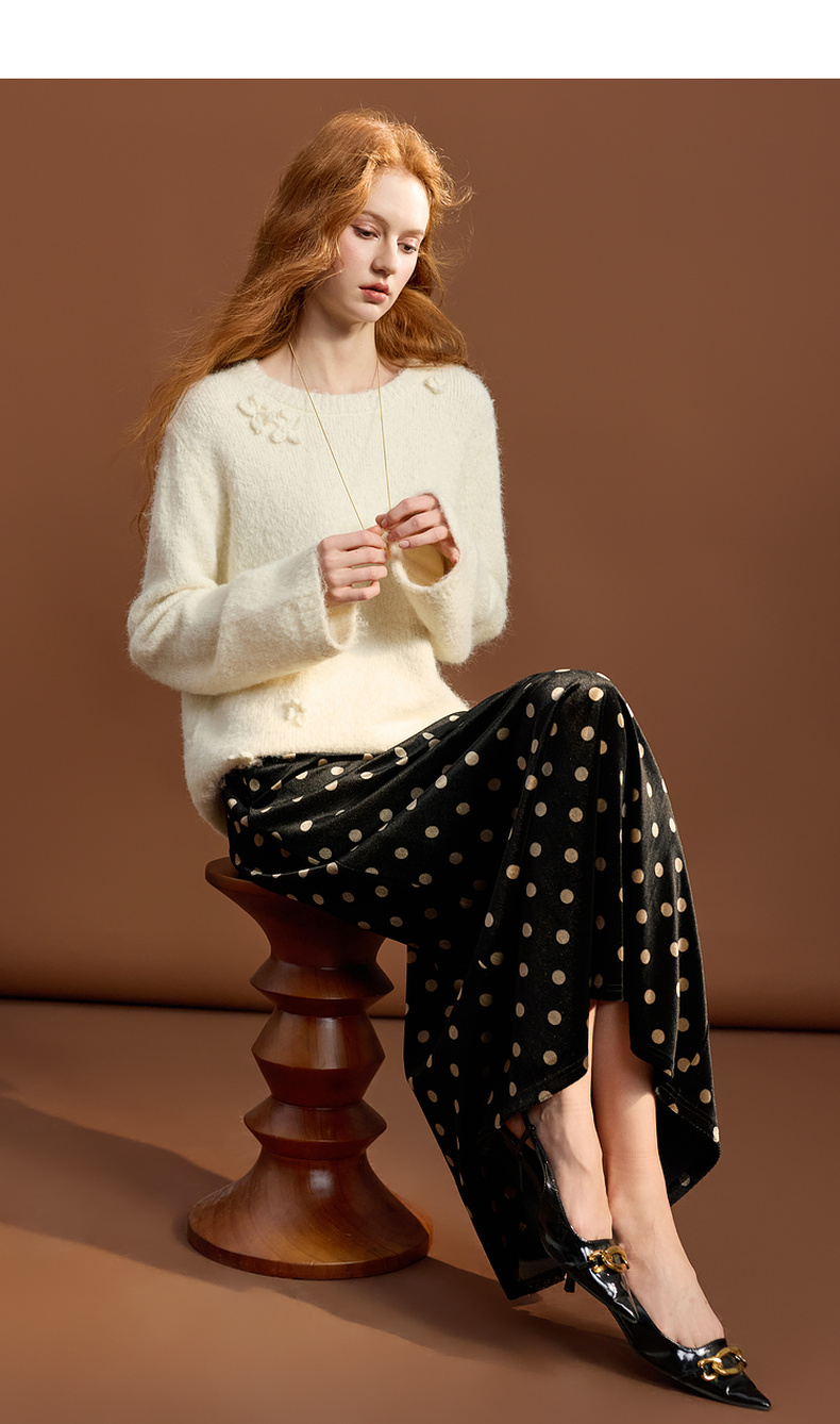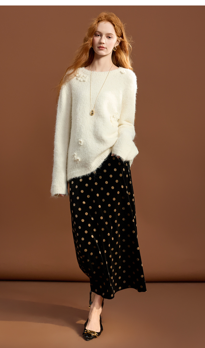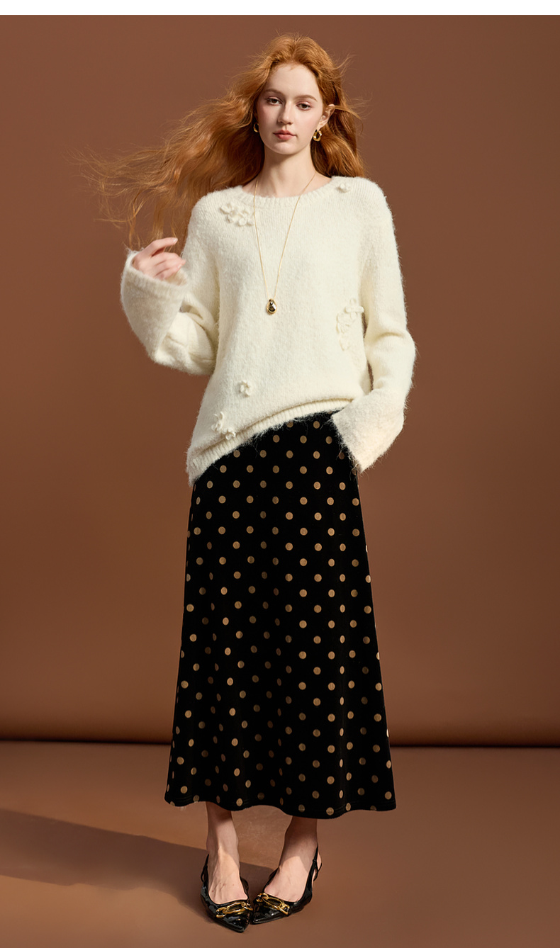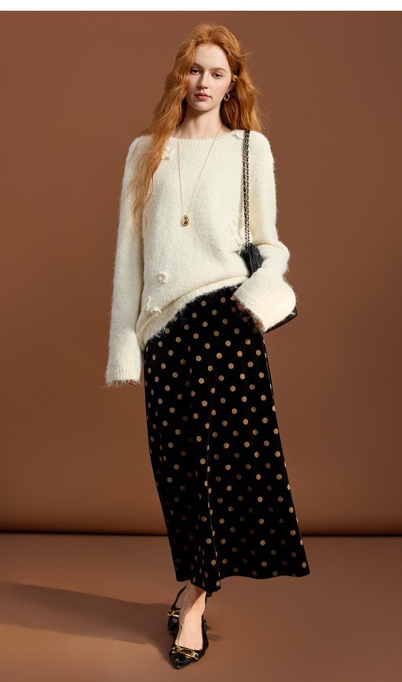 三彩2025冬季新款波点丝绒半身裙A字裙长裙复古优雅M