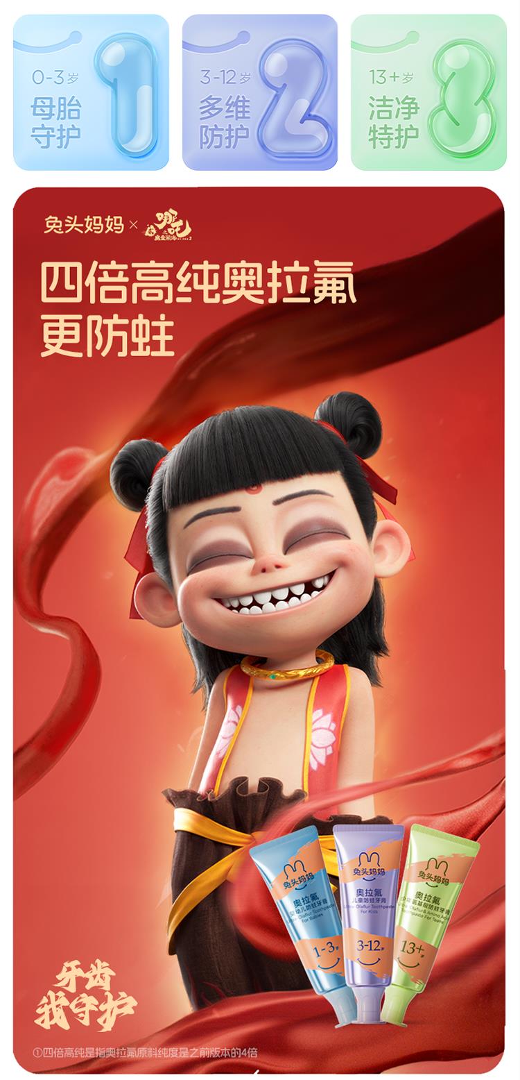 【哪吒×兔头妈妈 联名款 】高纯奥拉氟婴幼儿防蛀牙膏 规格:50g/支