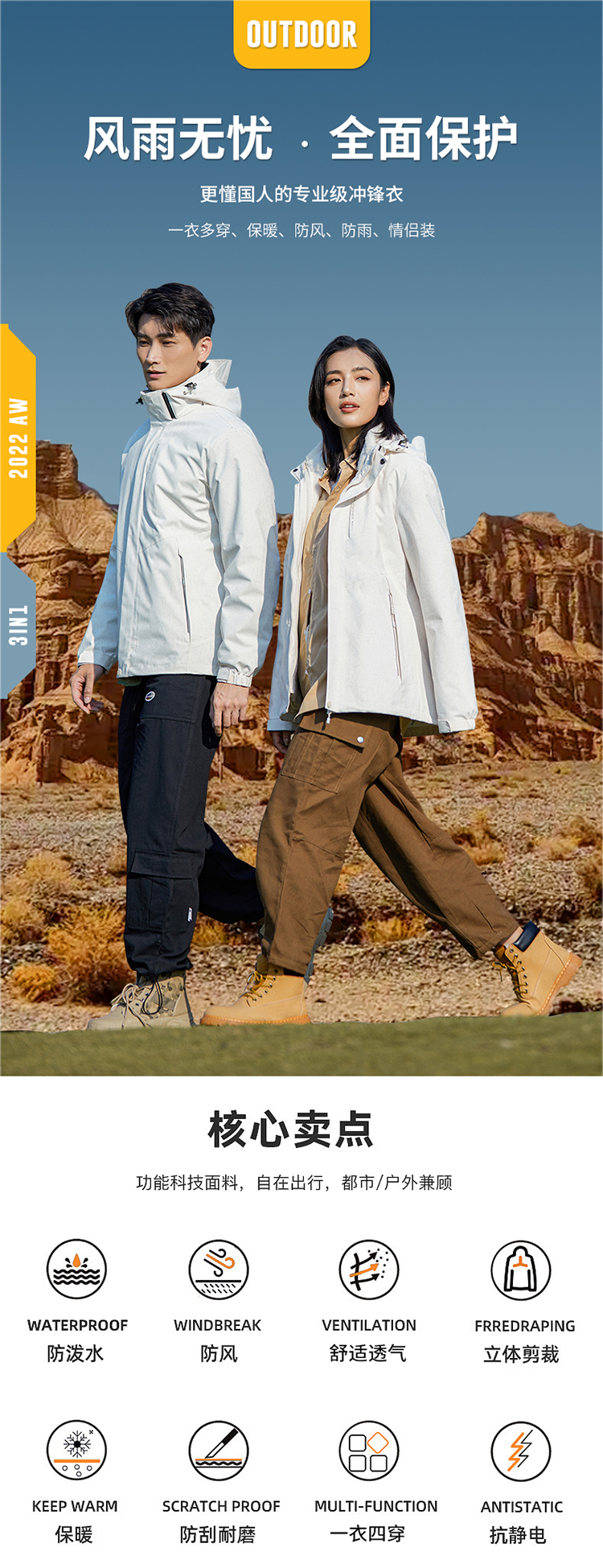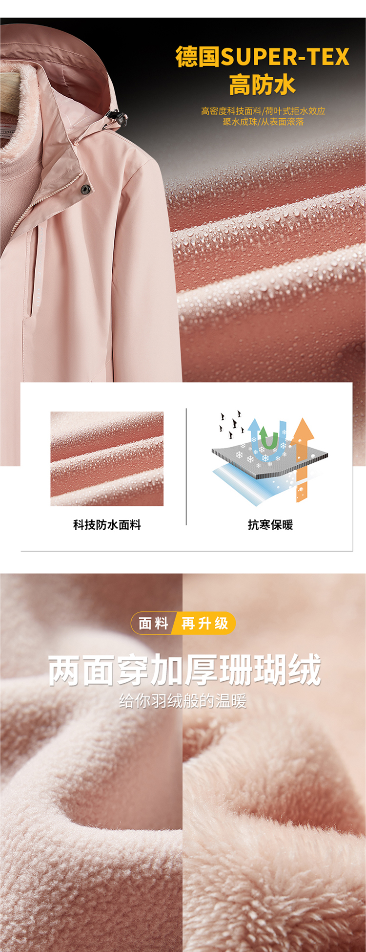 【酷然】冲锋衣女 冬季加绒加厚羊羔绒 内胆可双面穿 户外三合一可拆卸防水防风