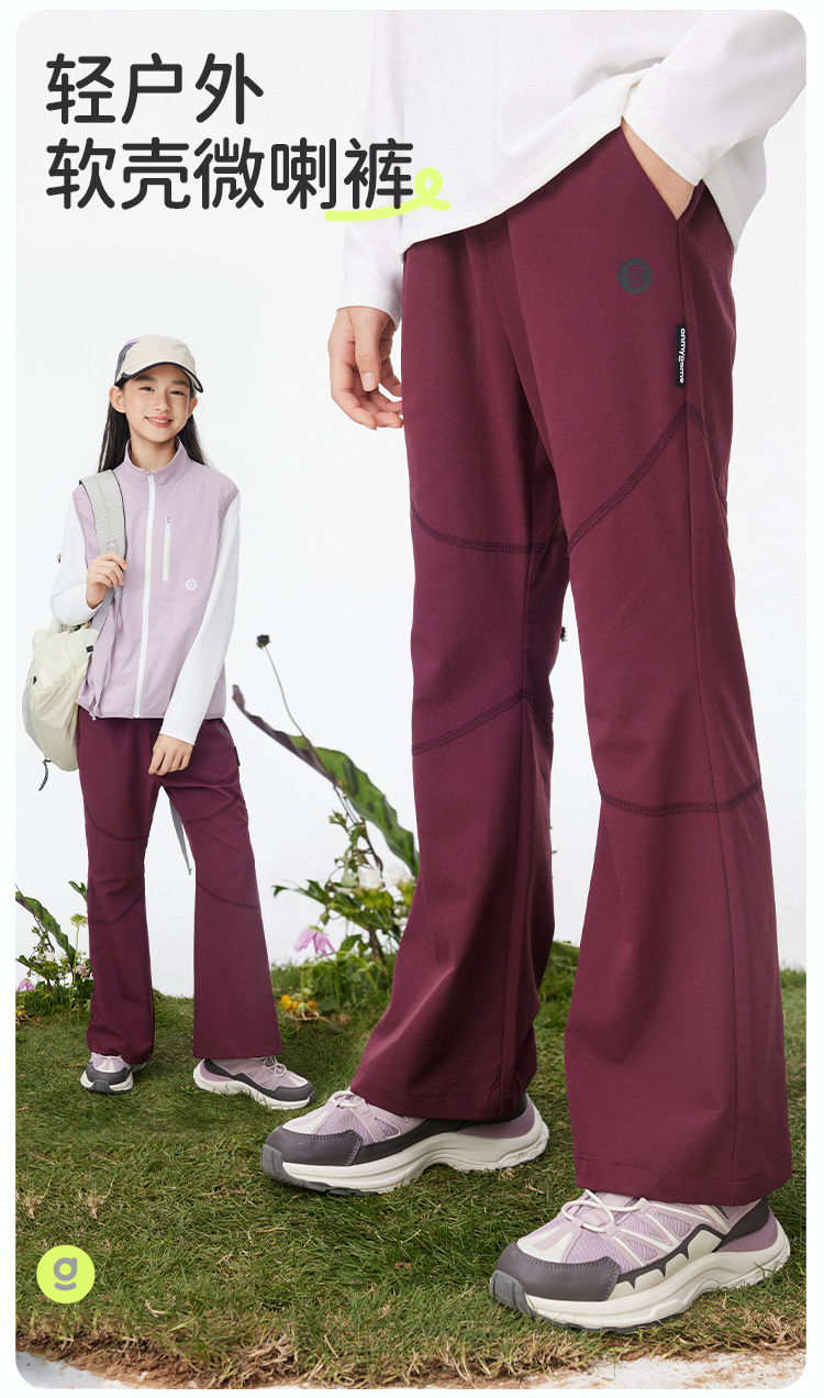 onmygame【软壳微喇裤】女童2025新款长裤春季儿童户外运动喇叭裤KEB2B210556