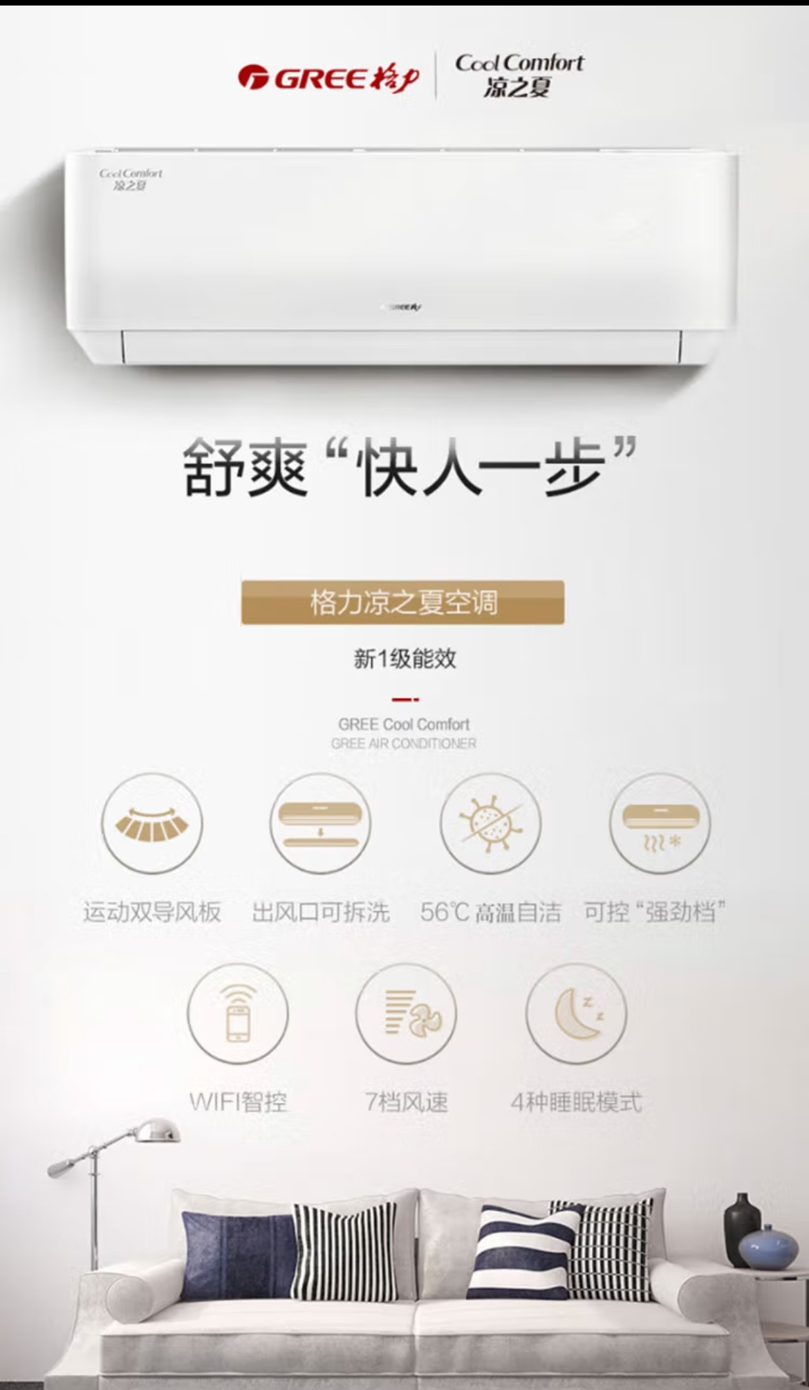 格力/空调/凉之夏变频1 1级 KFR-26GW(26564)FNhAg-B1 WIFI含管 皓雪白