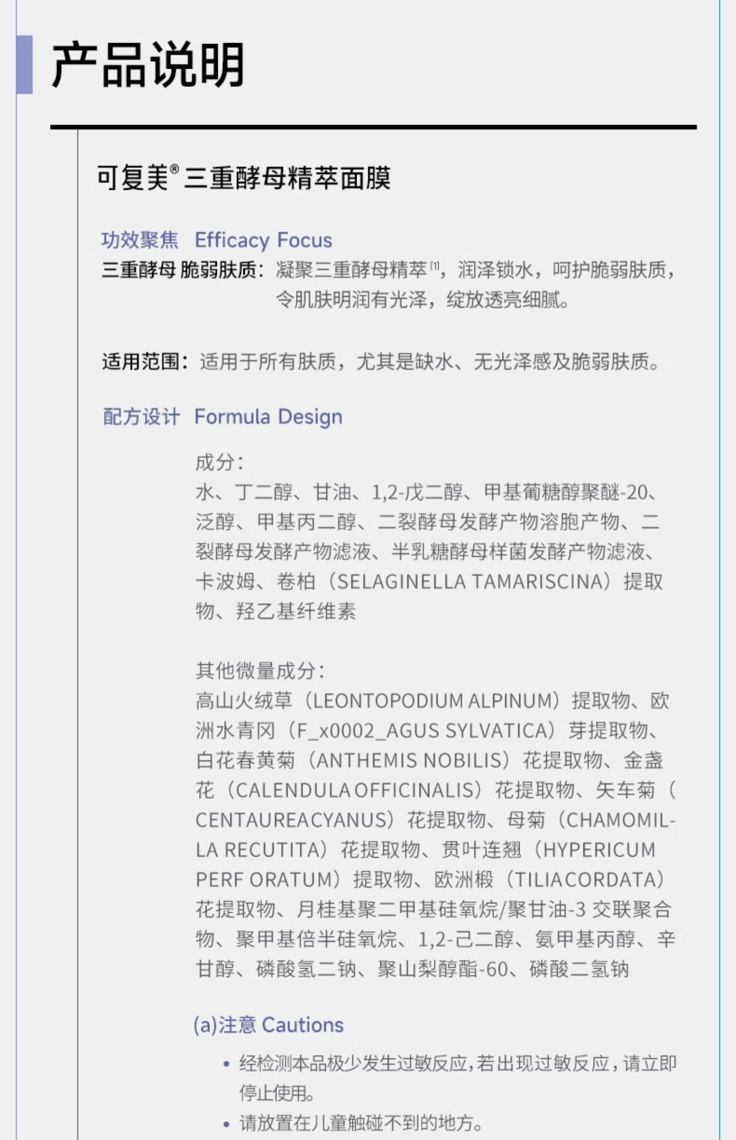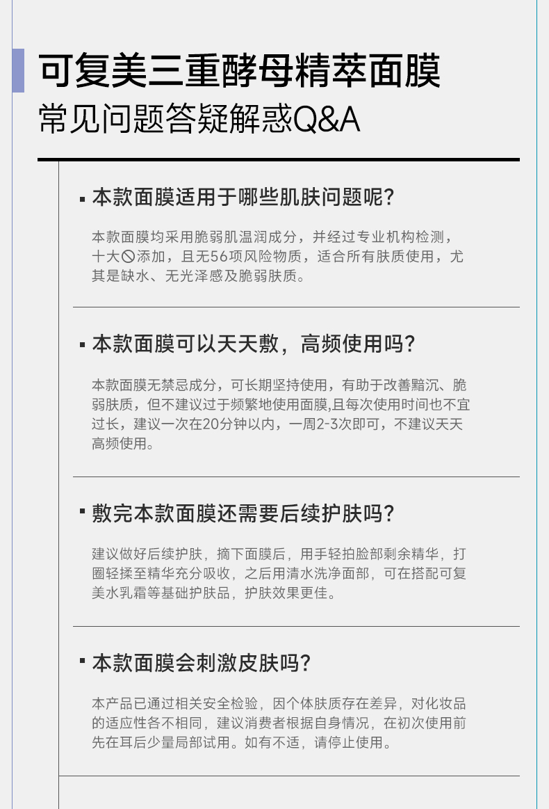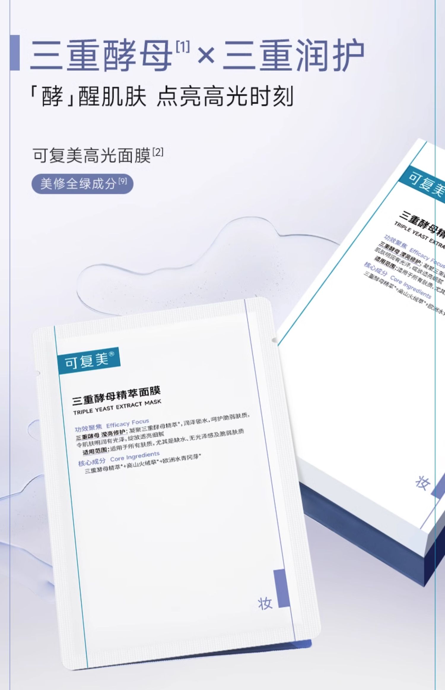 可复美三重酵母精萃面膜25g*5片/盒(高光面膜)