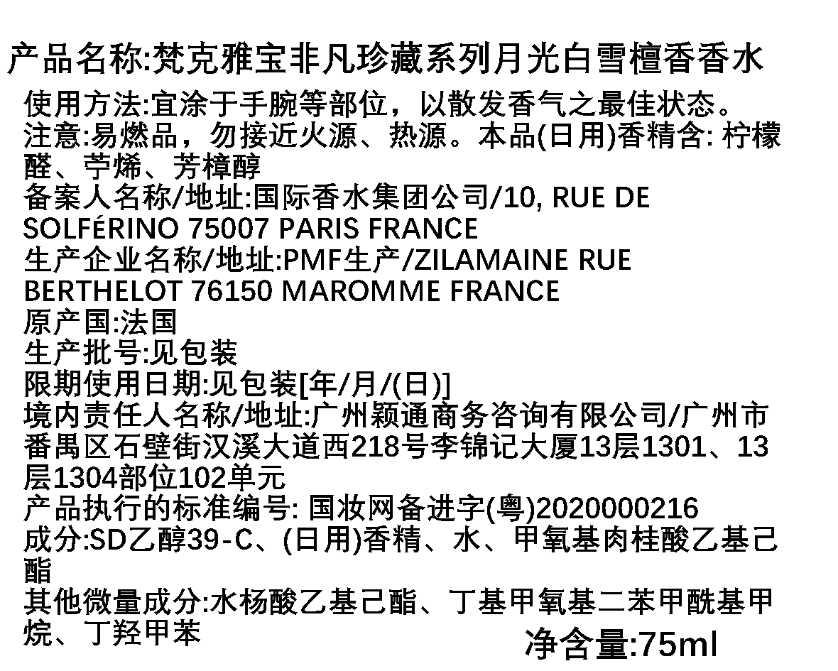Van Cleef & Arpels梵克雅宝 非凡珍藏系列月光白雪檀香(白檀)香水