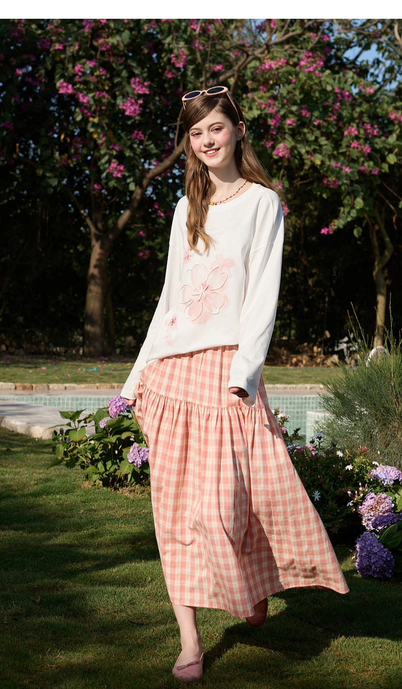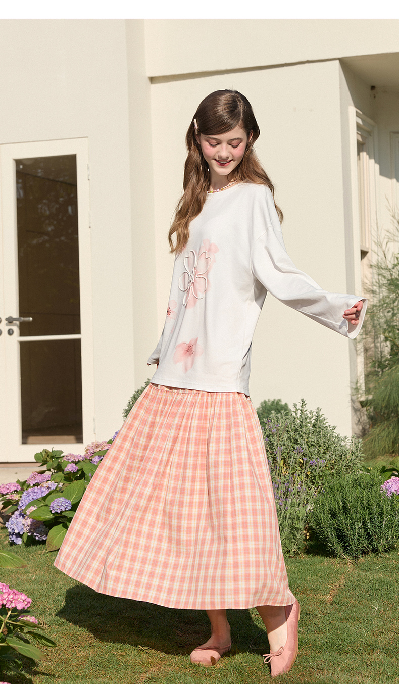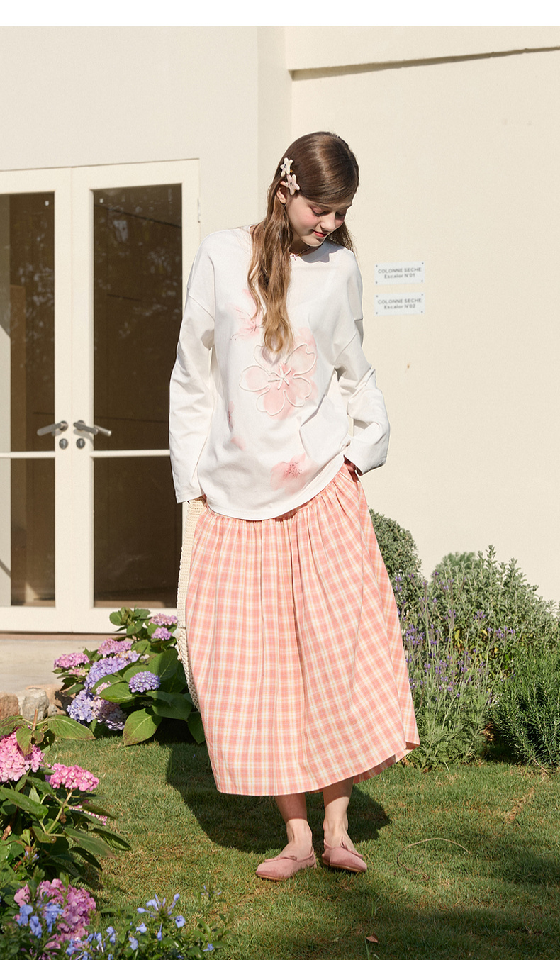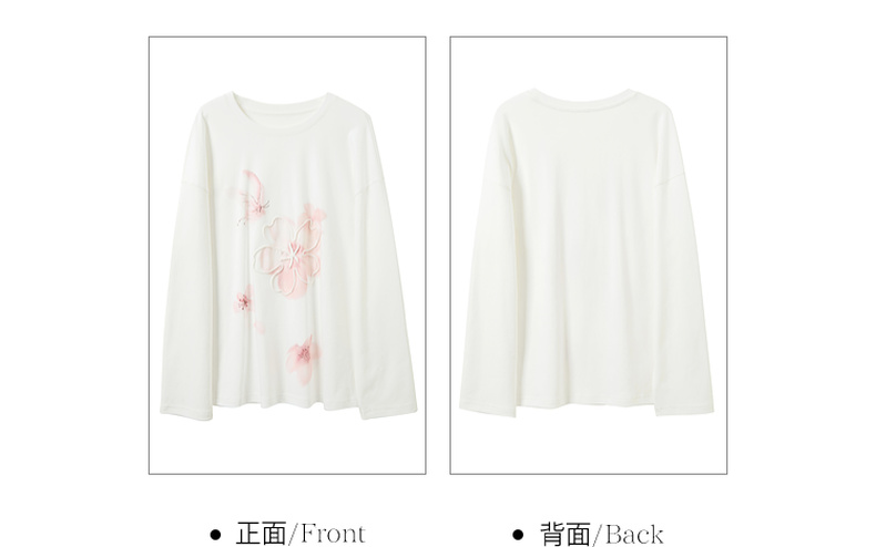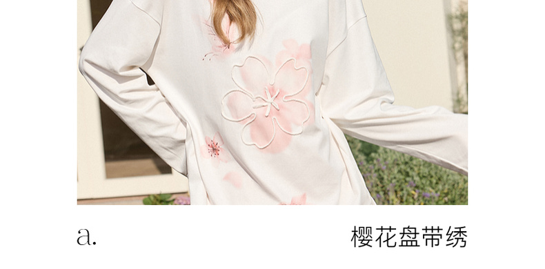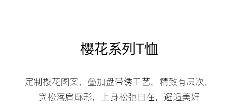 【100棉】三彩独醒2026春季新款樱花T恤盘带绣圆领宽松罩衫F