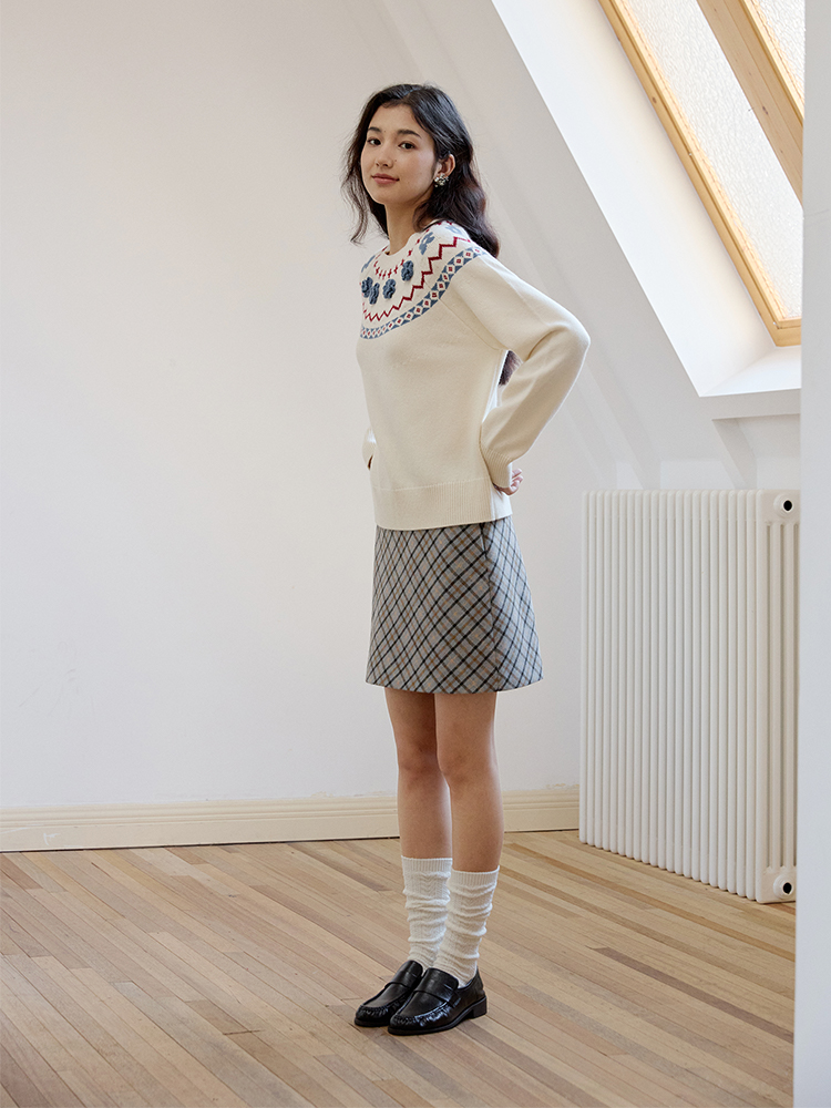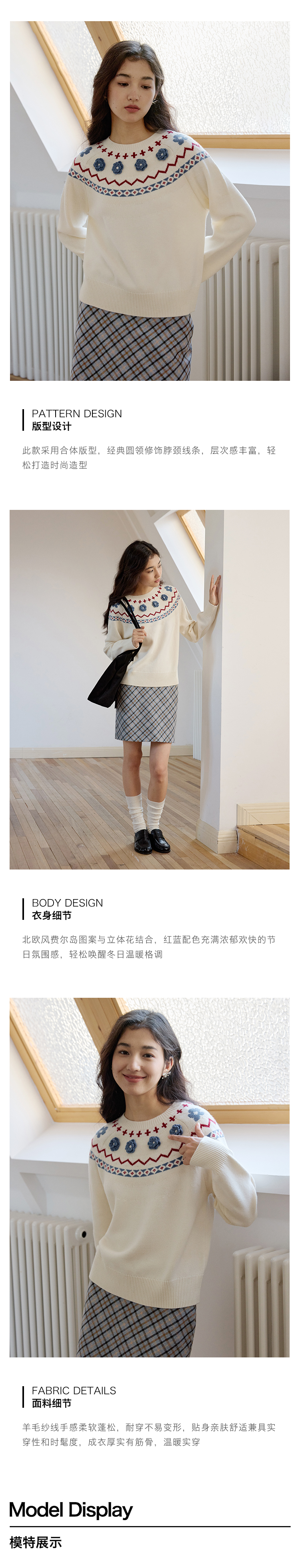 ForPoem 现货 24/FW原创设计北欧圣诞氛围感立体花羊毛费尔岛毛衣