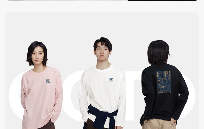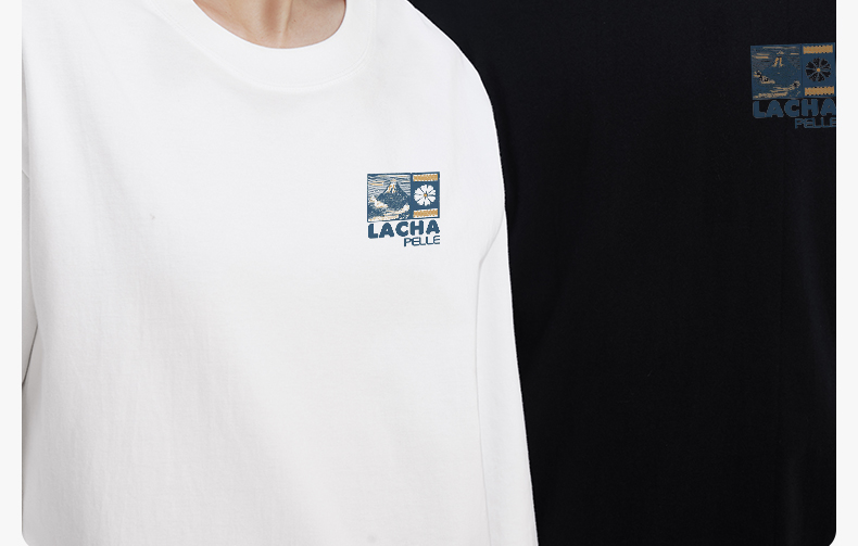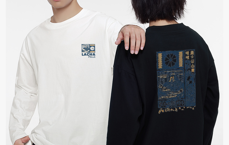 「棉的美学」时尚富士山印花长袖~秋季休闲日系印花长袖男女款