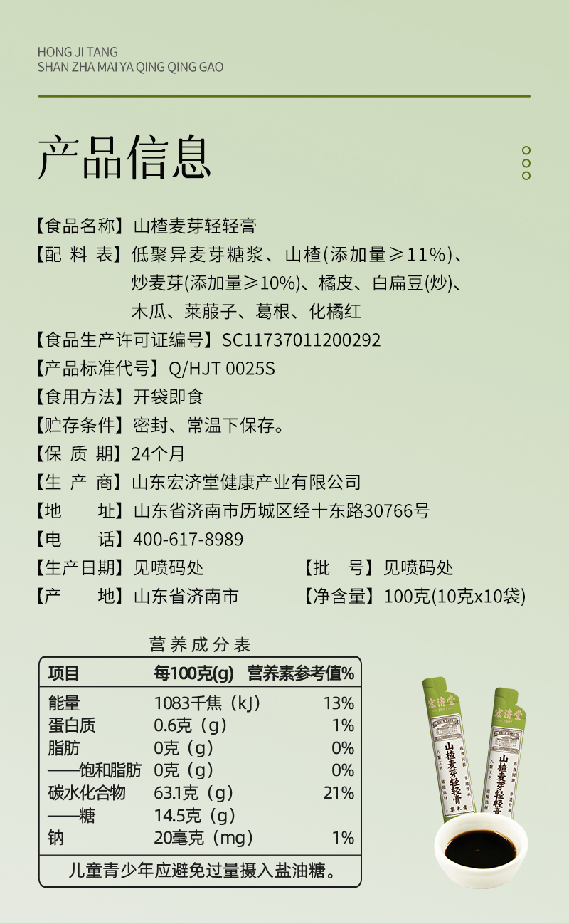 严选 | 宏济堂 山楂麦芽轻轻膏100g(10g*10条)*2盒/6盒 商品图1