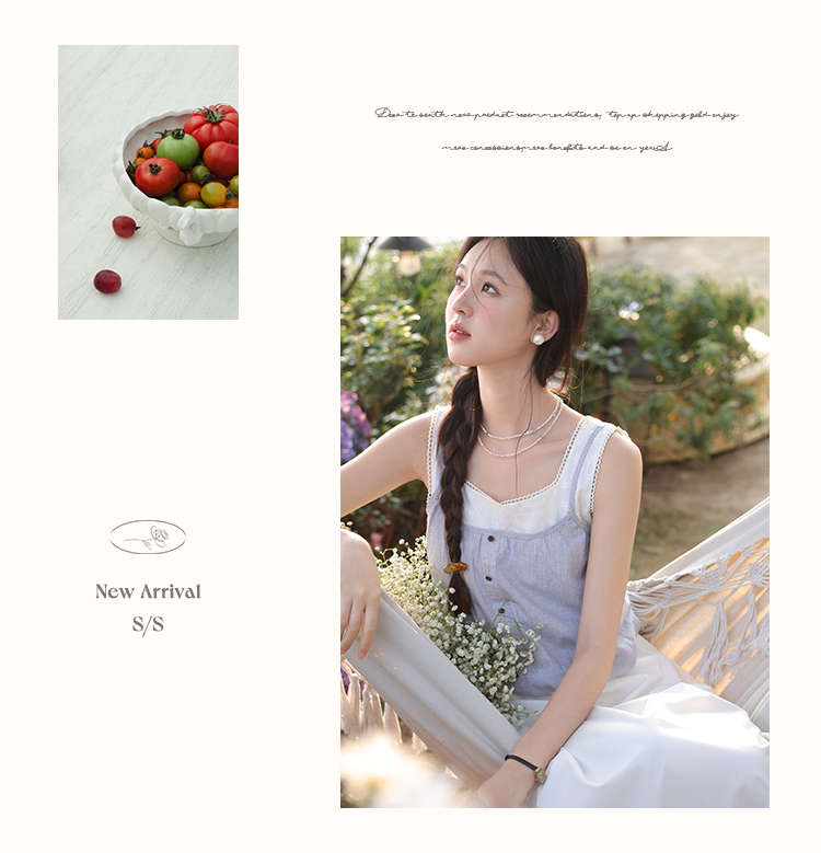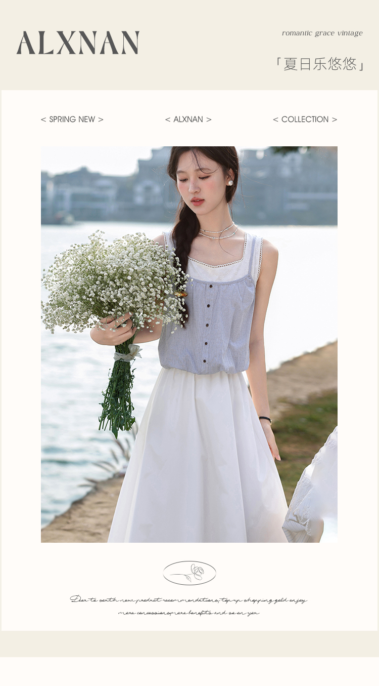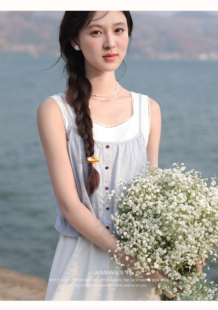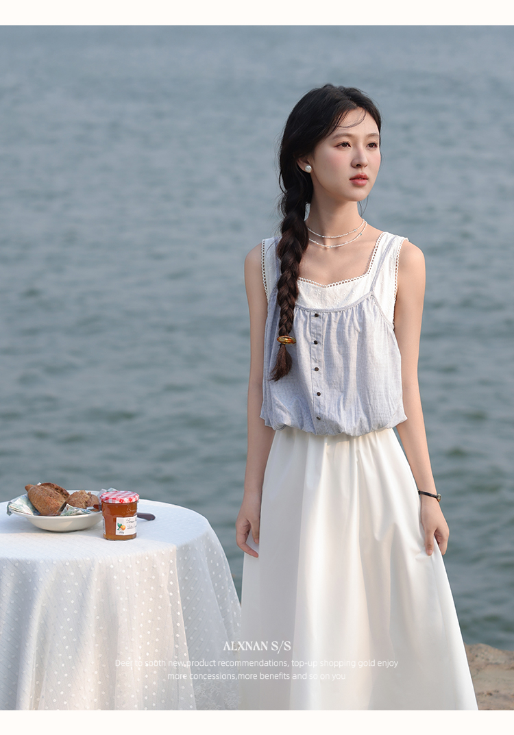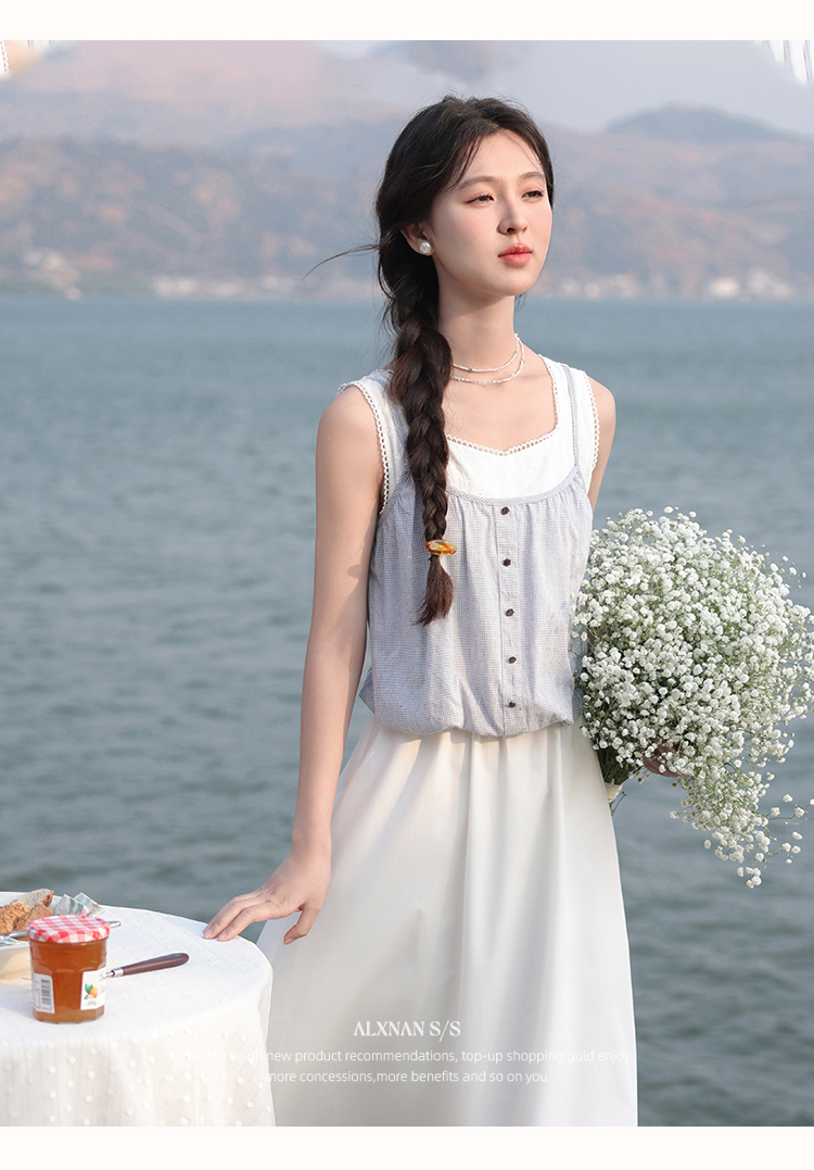 【6折秒杀】鹿向南「夏日乐悠悠」蓝白无袖假两件背心连衣裙夏新款时尚长裙女L55527