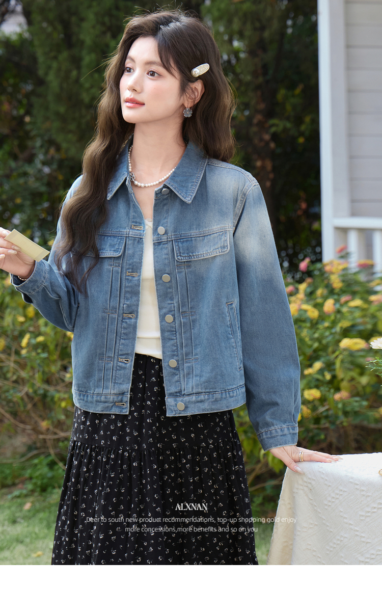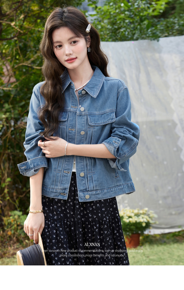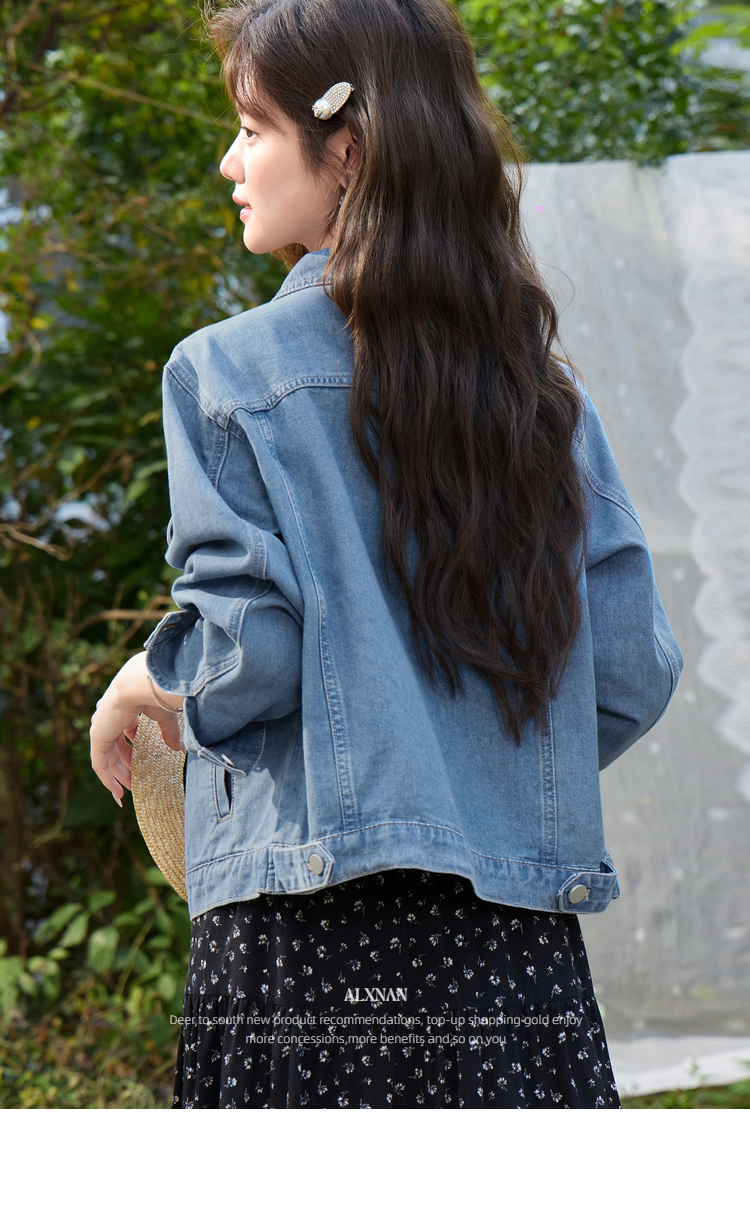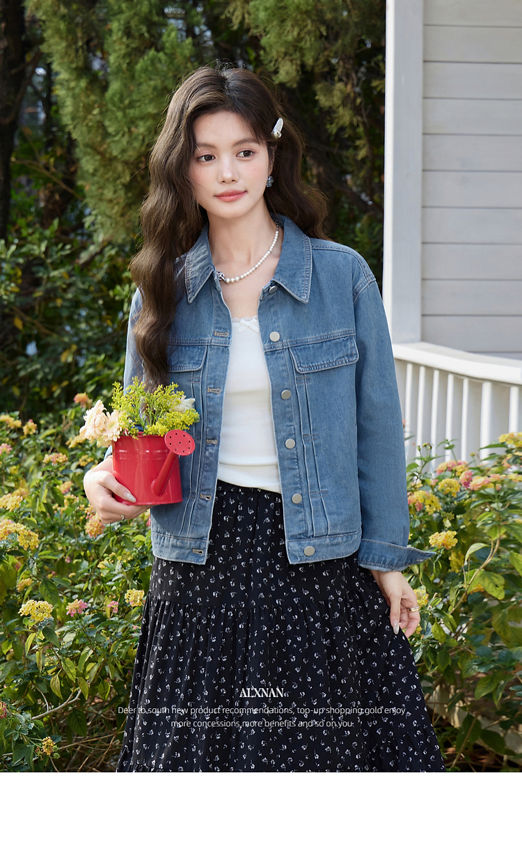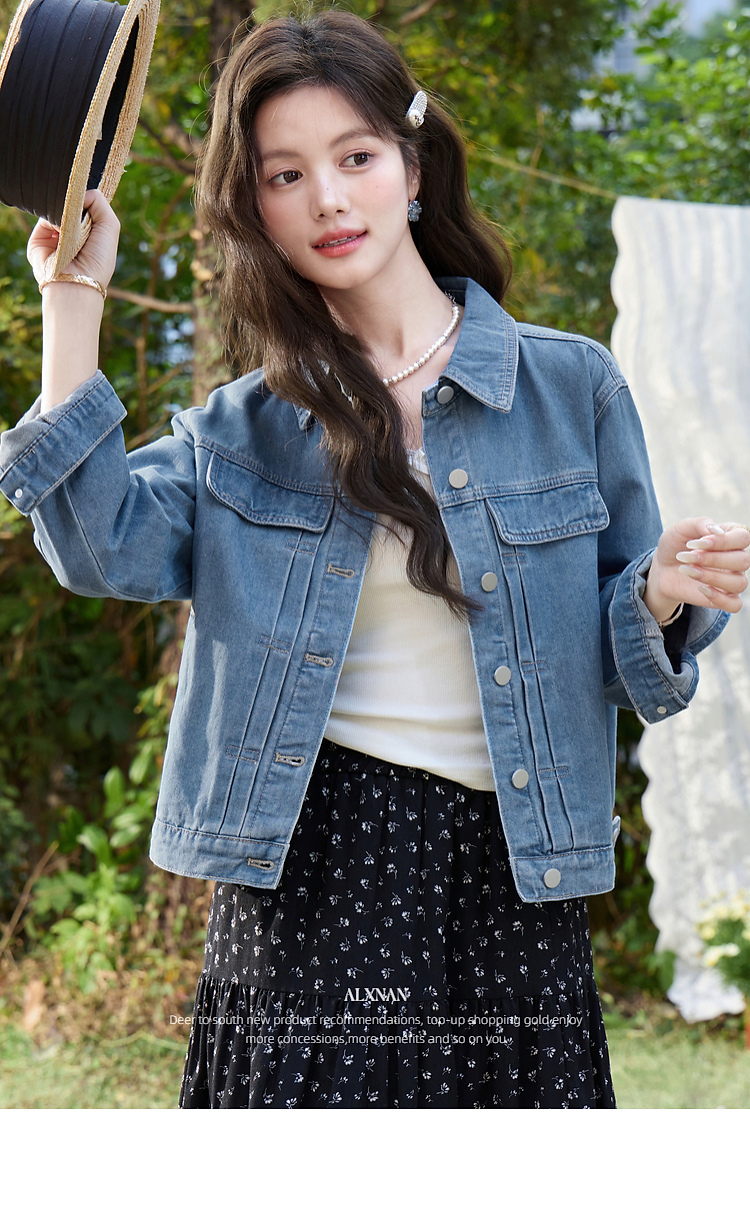 鹿向南「花漾佳人」韩系巨好看2026新款春季蓝色宽松牛仔短外套女