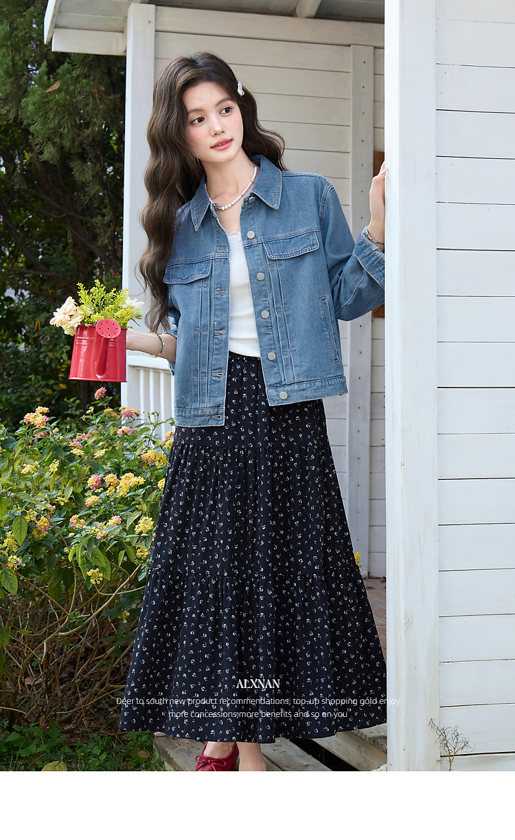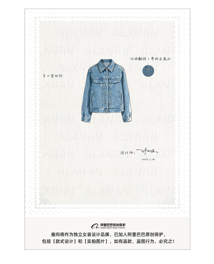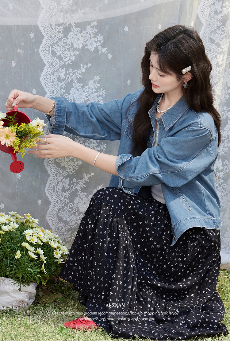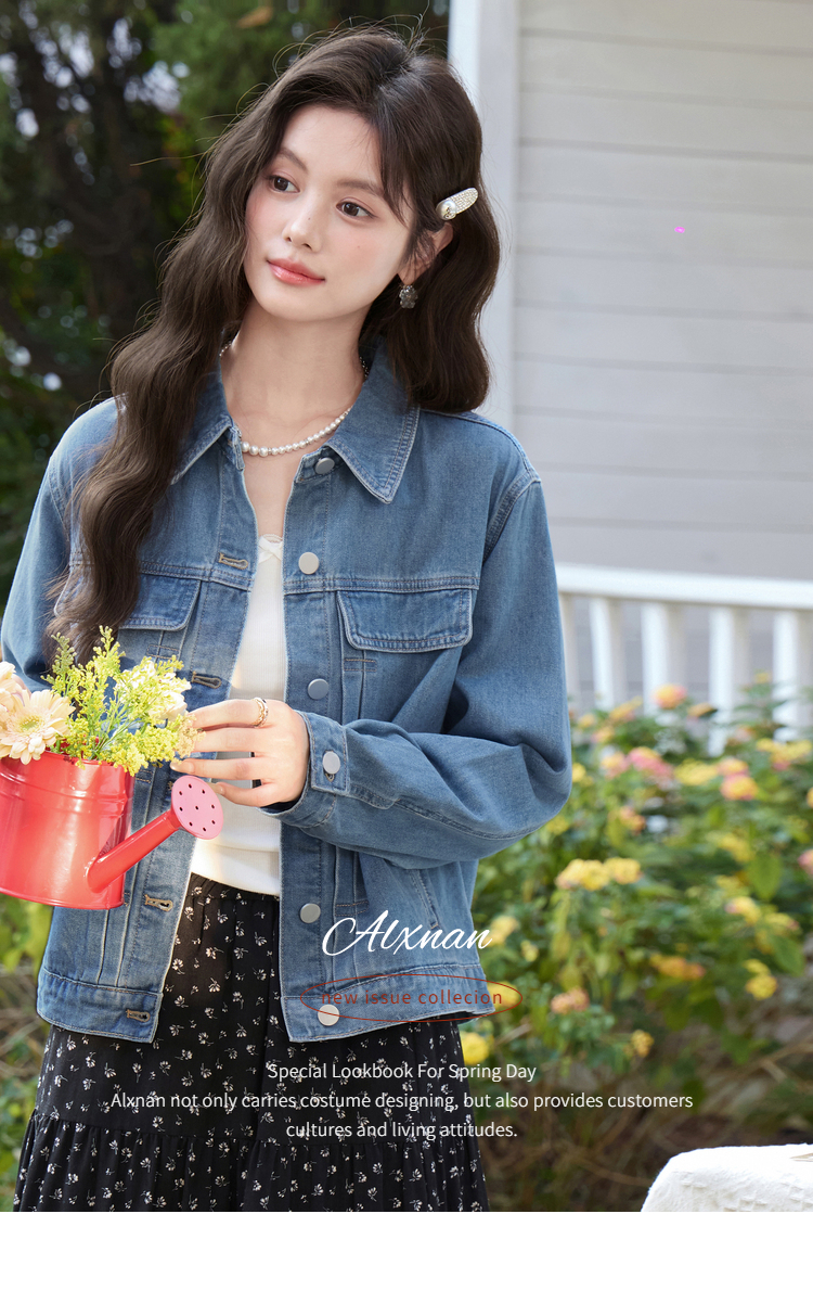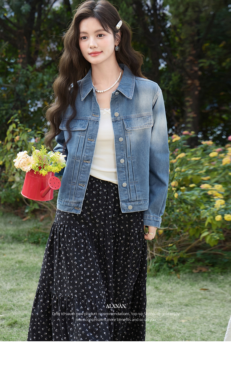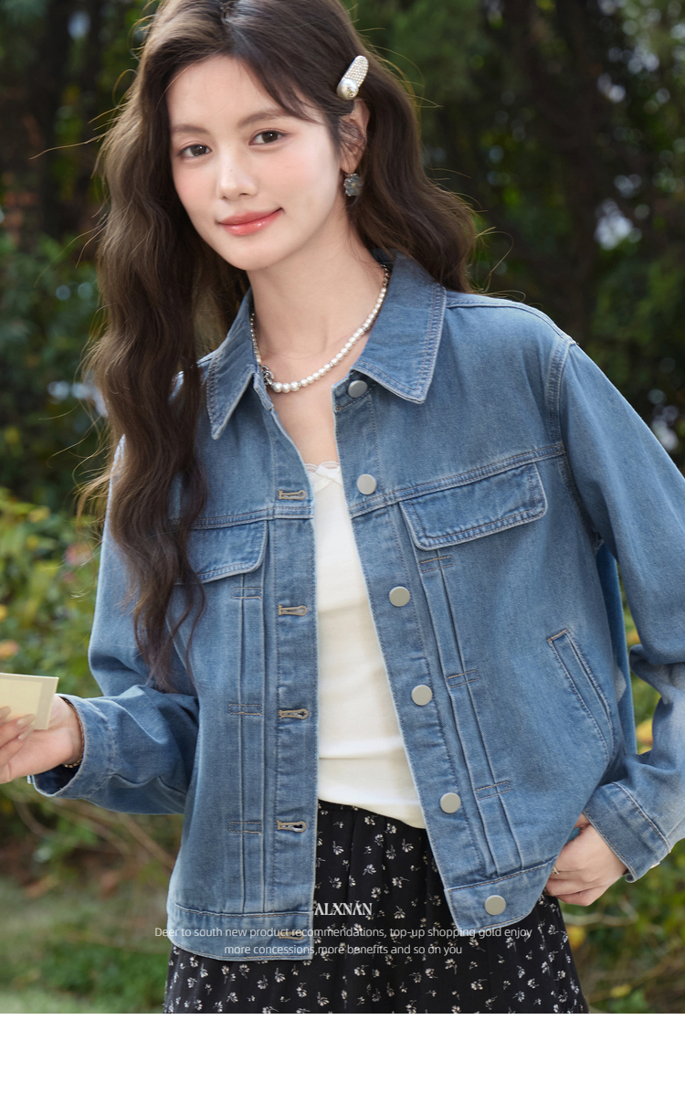 鹿向南「花漾佳人」韩系巨好看2026新款春季蓝色宽松牛仔短外套女