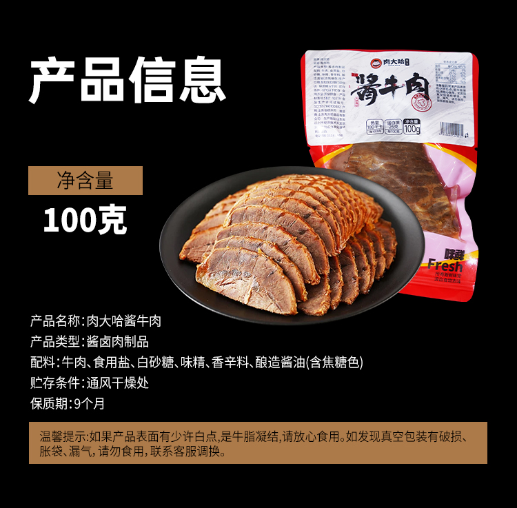 【99-50 199-100】肉大哈酱牛肉100克*10袋卤味熟食开袋即食牛肉零食健身减脂