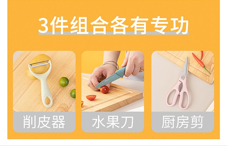 Debo德铂格里芬不锈钢水果刀套装削皮刀水果刀具剪刀三件套