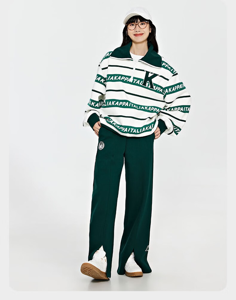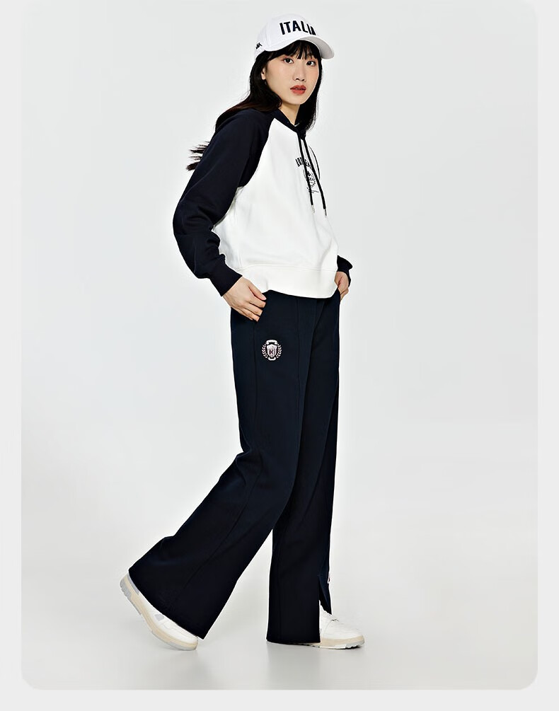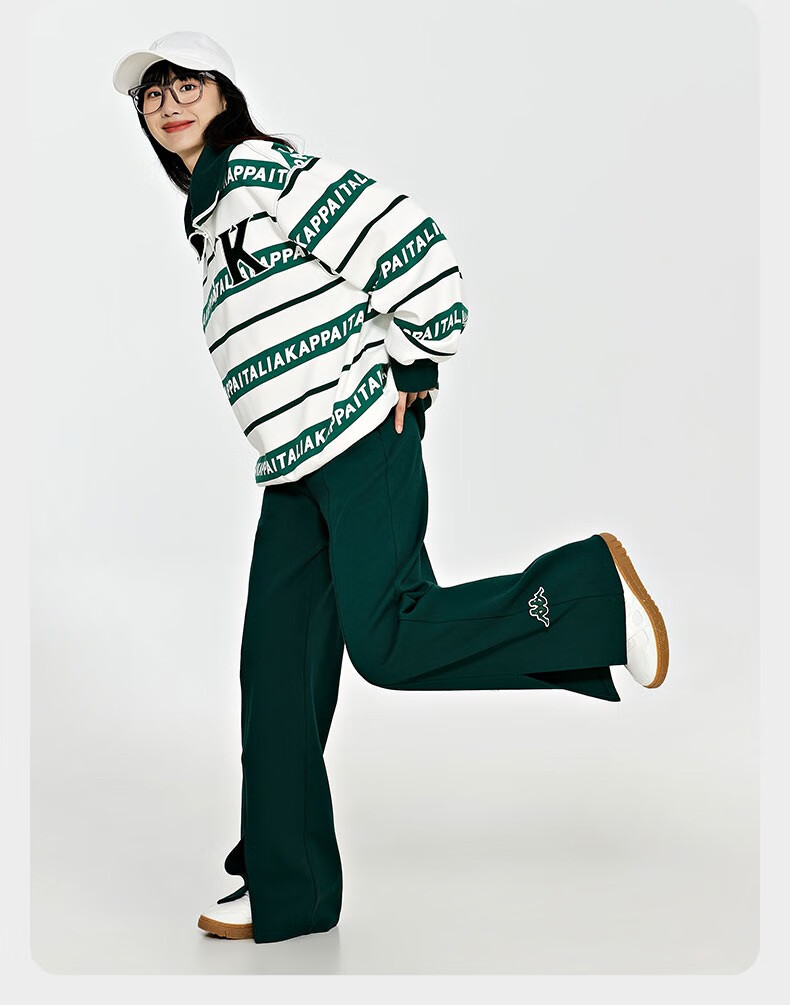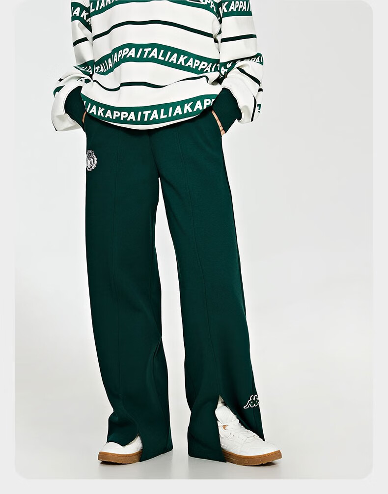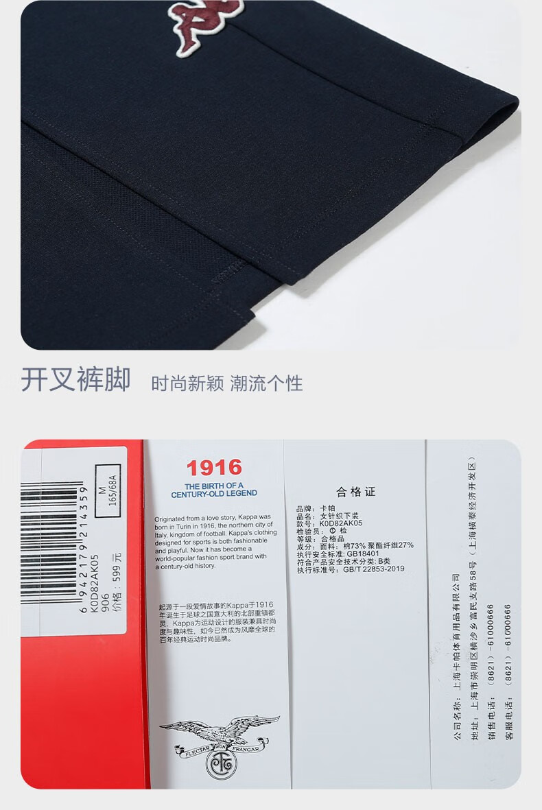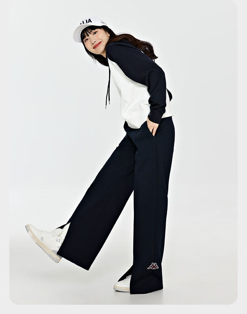卡帕(Kappa)复古休闲裤2023新款女高腰运动裤针织长裤开叉裤脚卫裤K0D82AK05