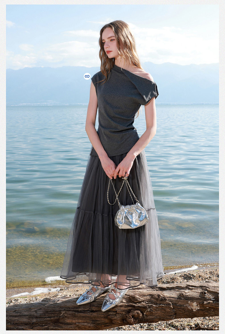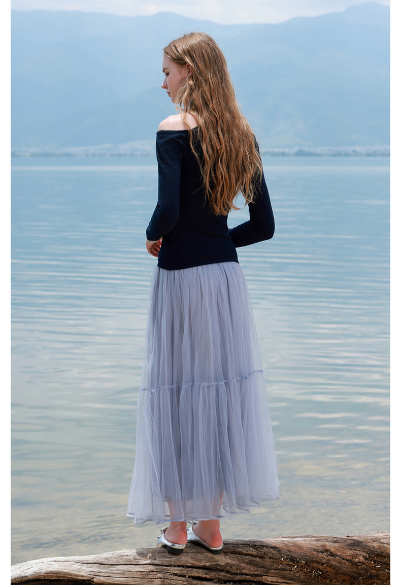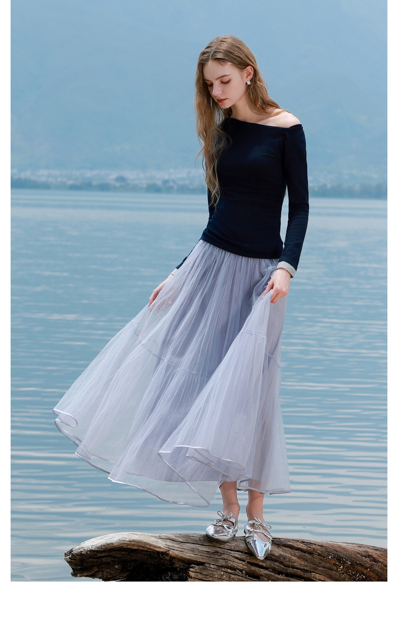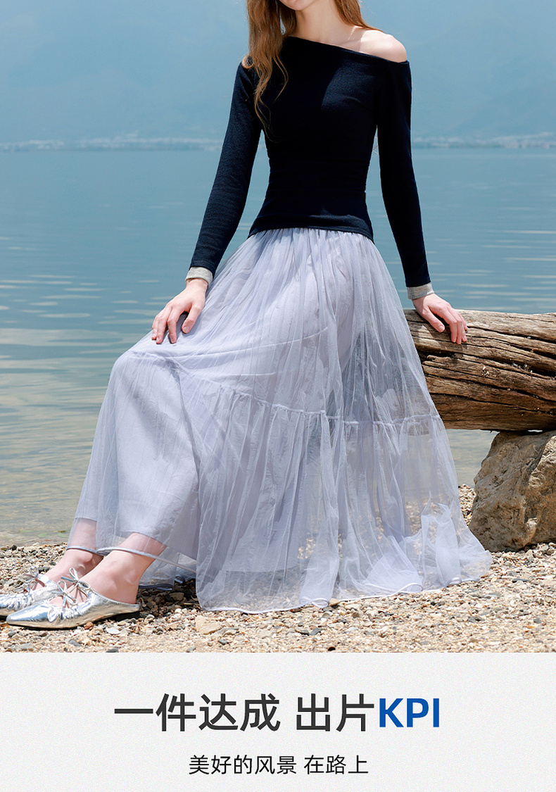 三彩2025秋季新款网纱半身裙松紧腰A字裙浪漫长裙优雅M