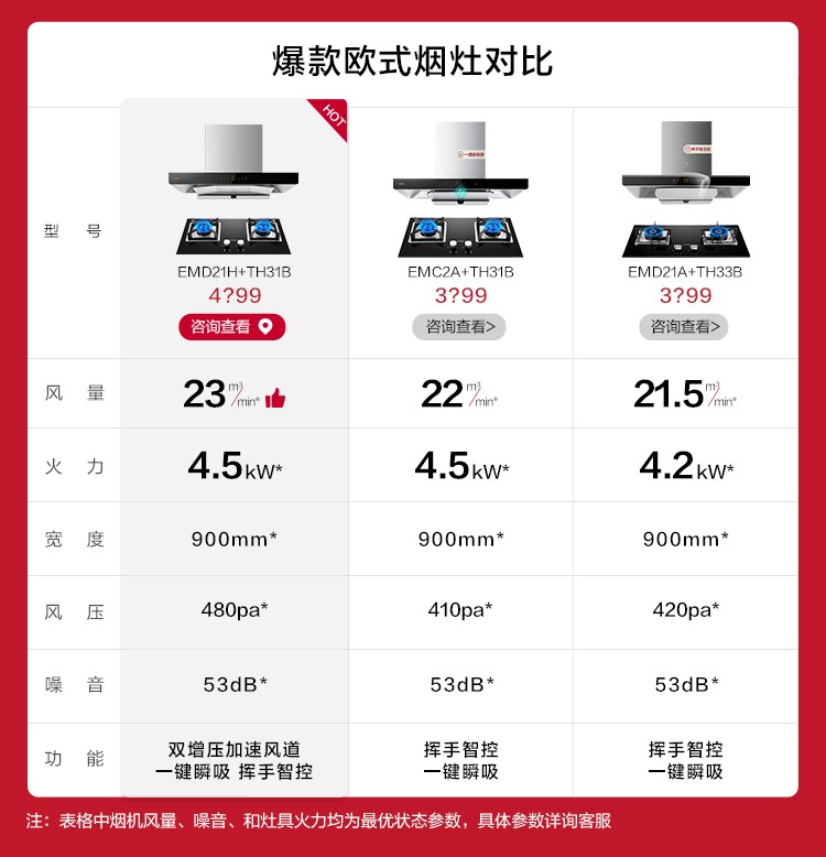 方太油烟机燃气灶具套装吸抽油烟机灶具套装烟灶套装23风量4.5kw猛火套餐EMD21H+TH31B 烟灶套装