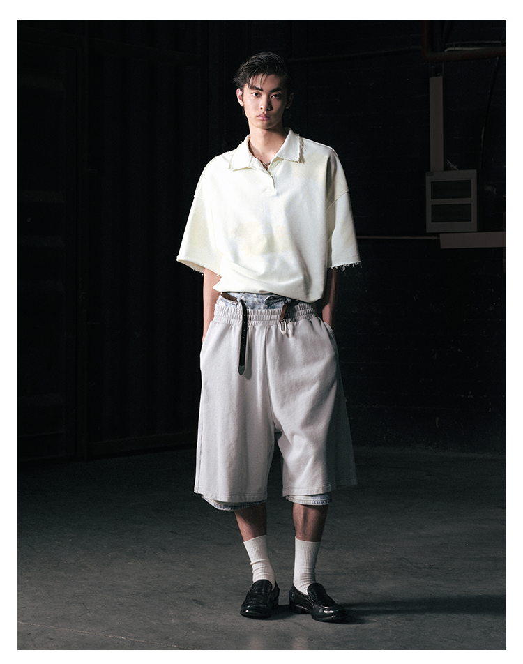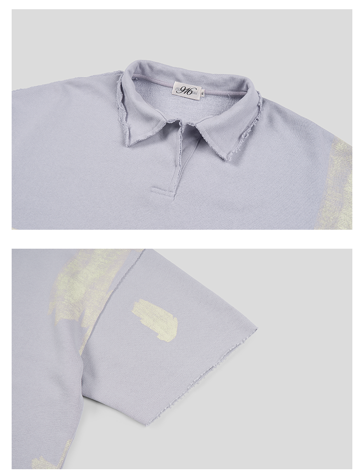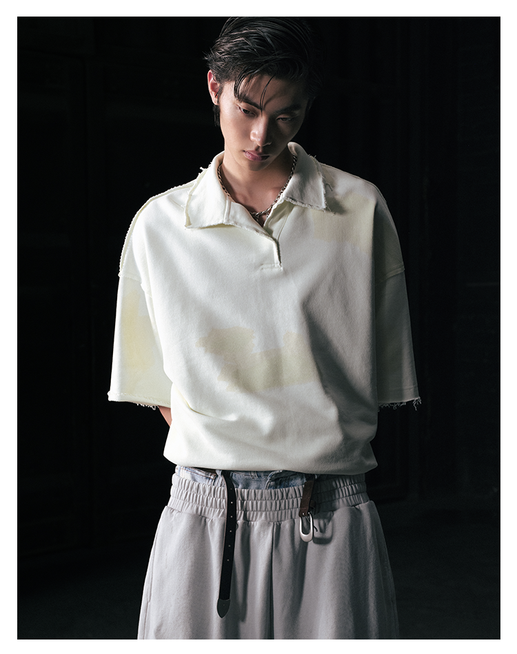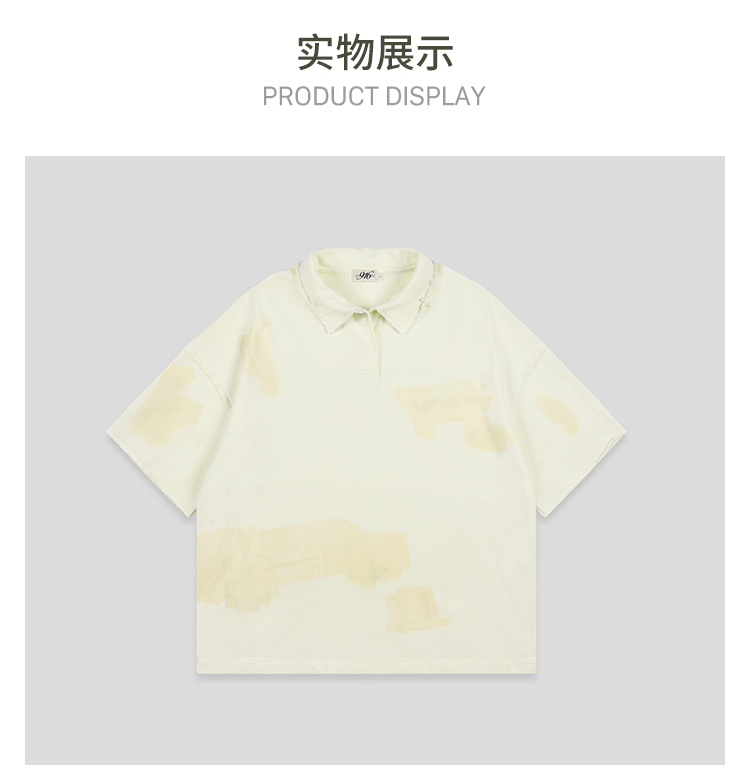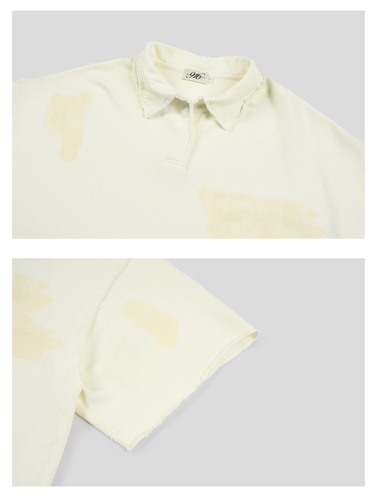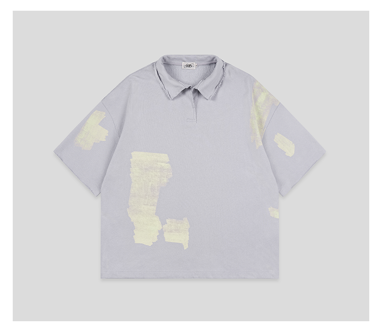 GOODBAI 916 仿胶带印花收腰翻领oversize短袖T恤