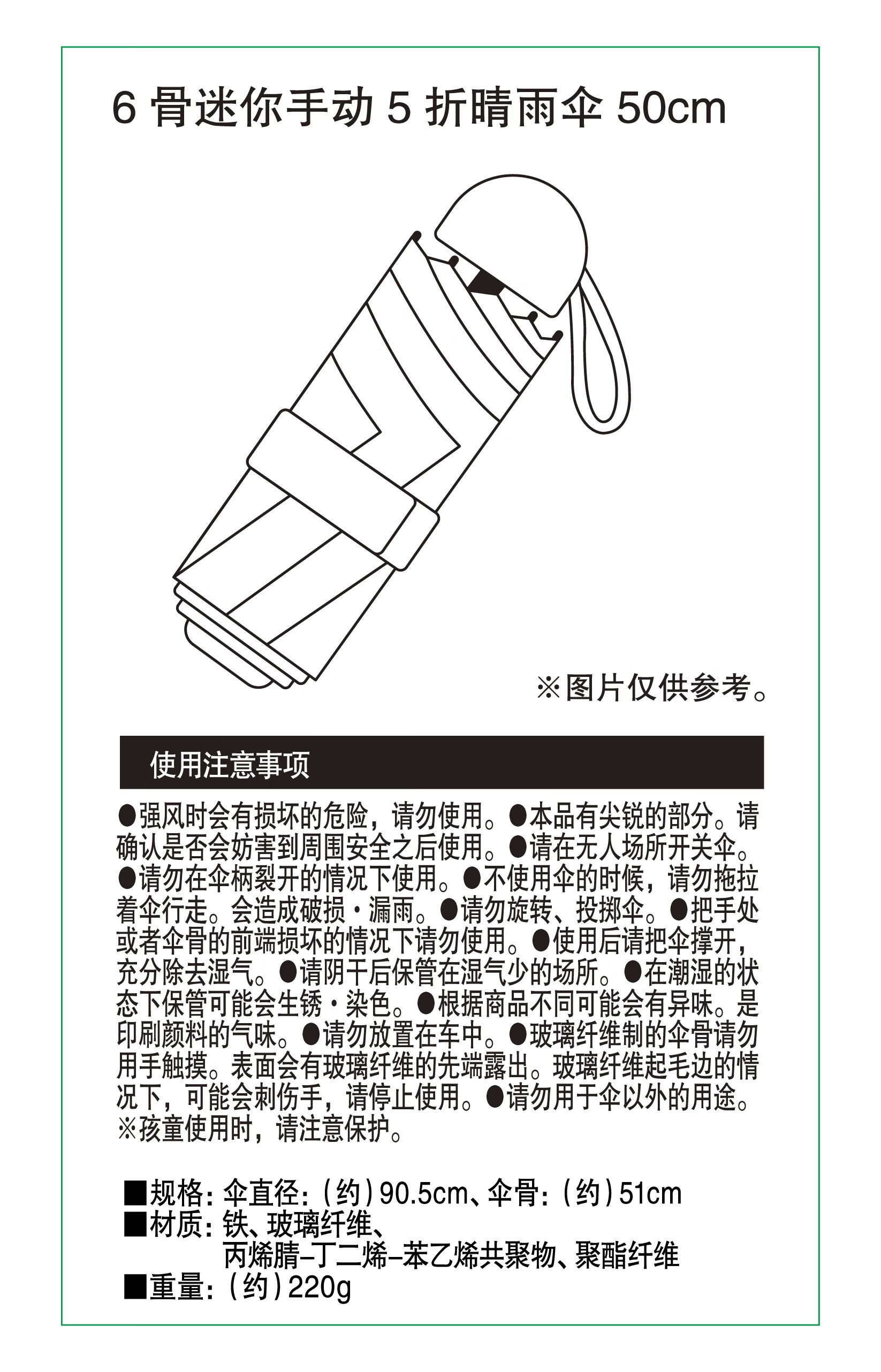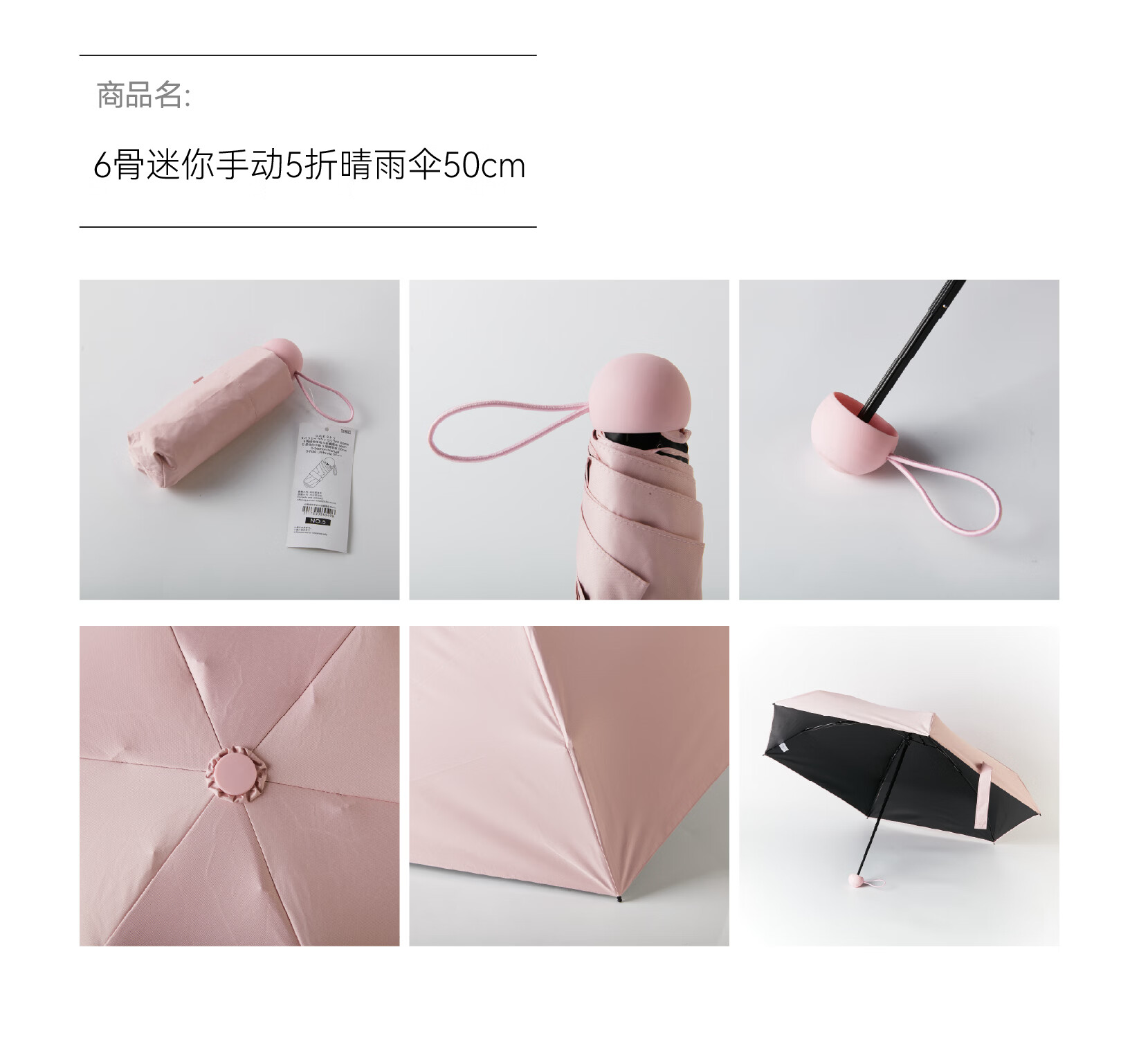 NITORI宜得利家居 便携式防晒伞遮阳伞6骨迷你手动5折晴雨伞50cm