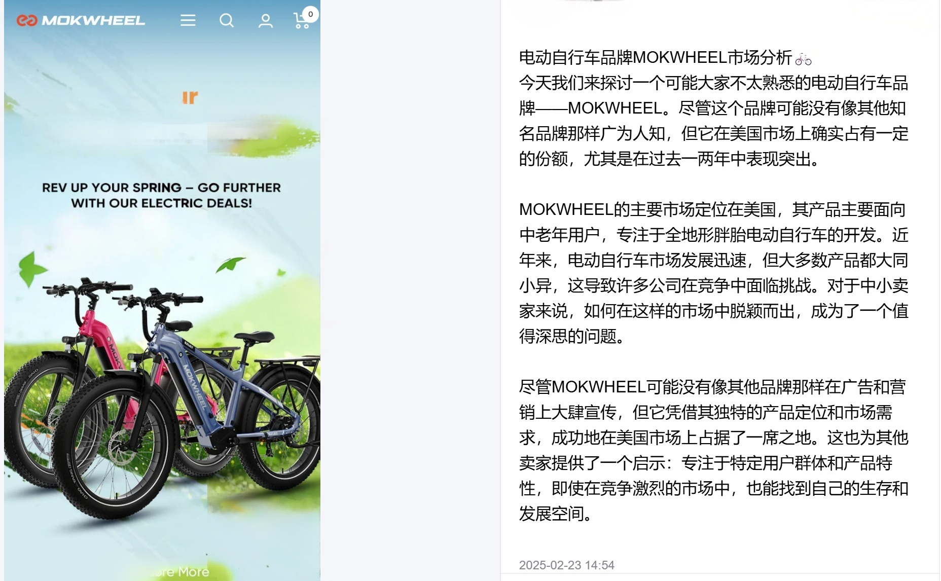 MOKWHEEL是美国电动自行车品牌,主要市场定位在美国,专注于全地形胖胎电动自行车的开发,凭借其独特的产品定位和市场需求,在美国市场上占据了一席之地