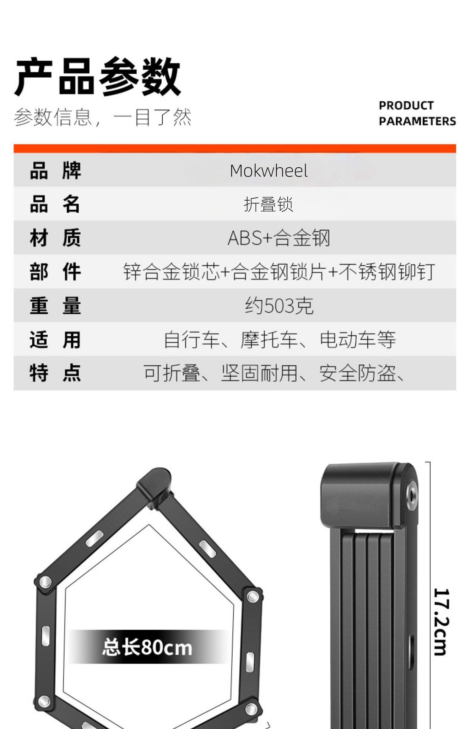 MOKWHEEL折叠锁在美国售价折合人民币约410元,可折叠、易安装,坚固耐用、安全防盗,超高品质。