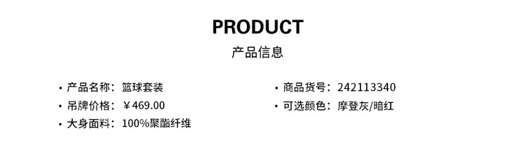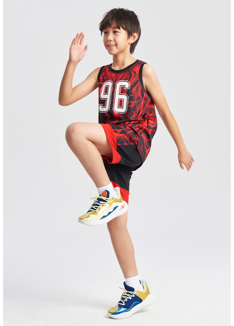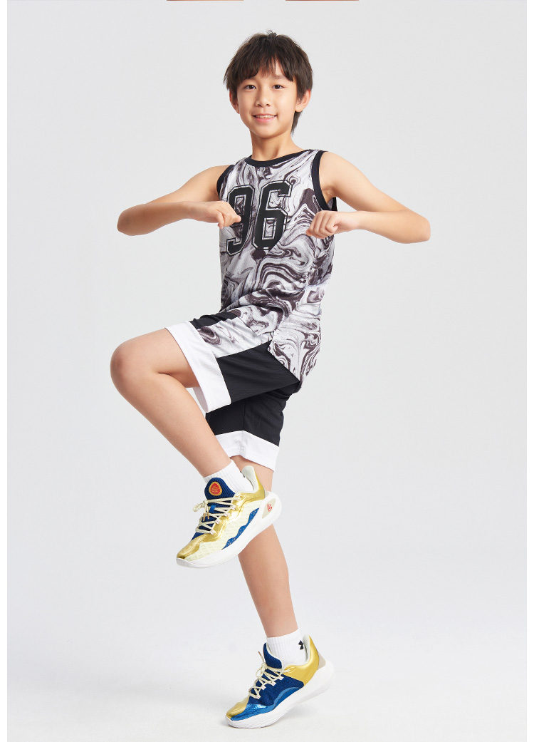 1.基础版型篮球套装,满版印花增强设计感