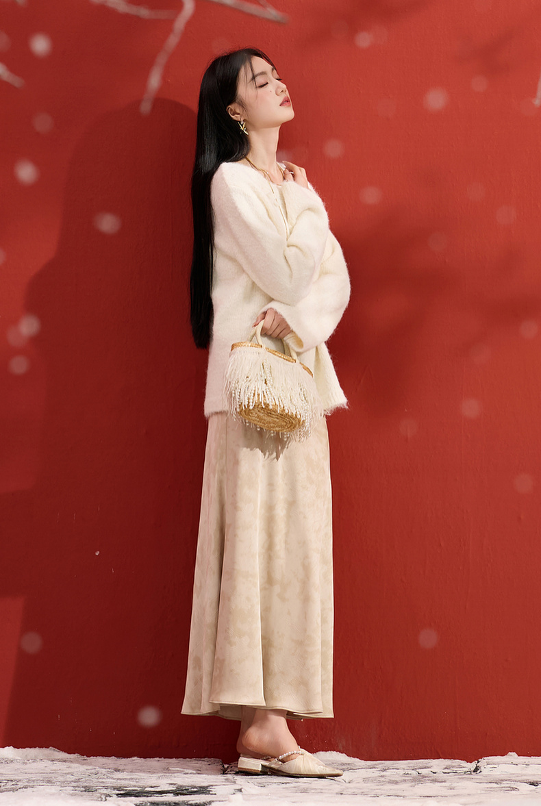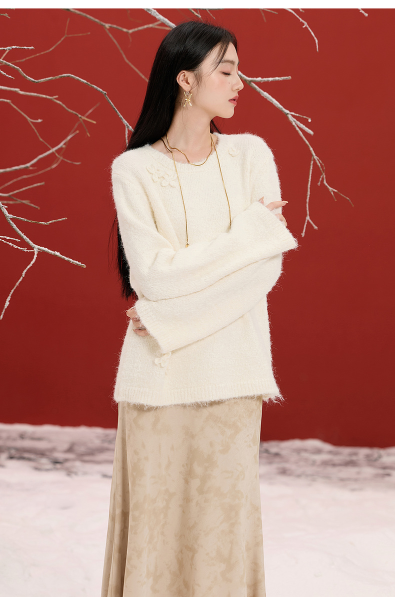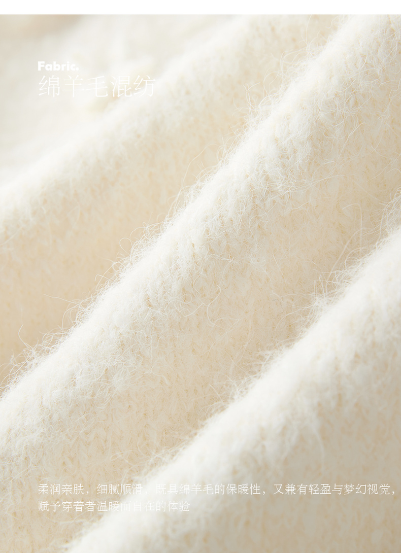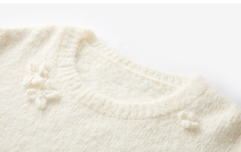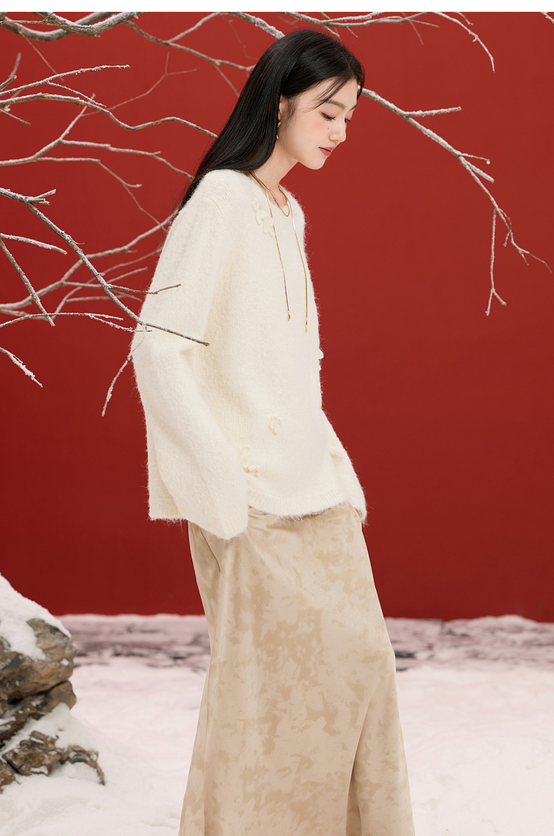 三彩【香月满桂】2025冬季新款钩花针织衫圆领宽松毛衫套头C