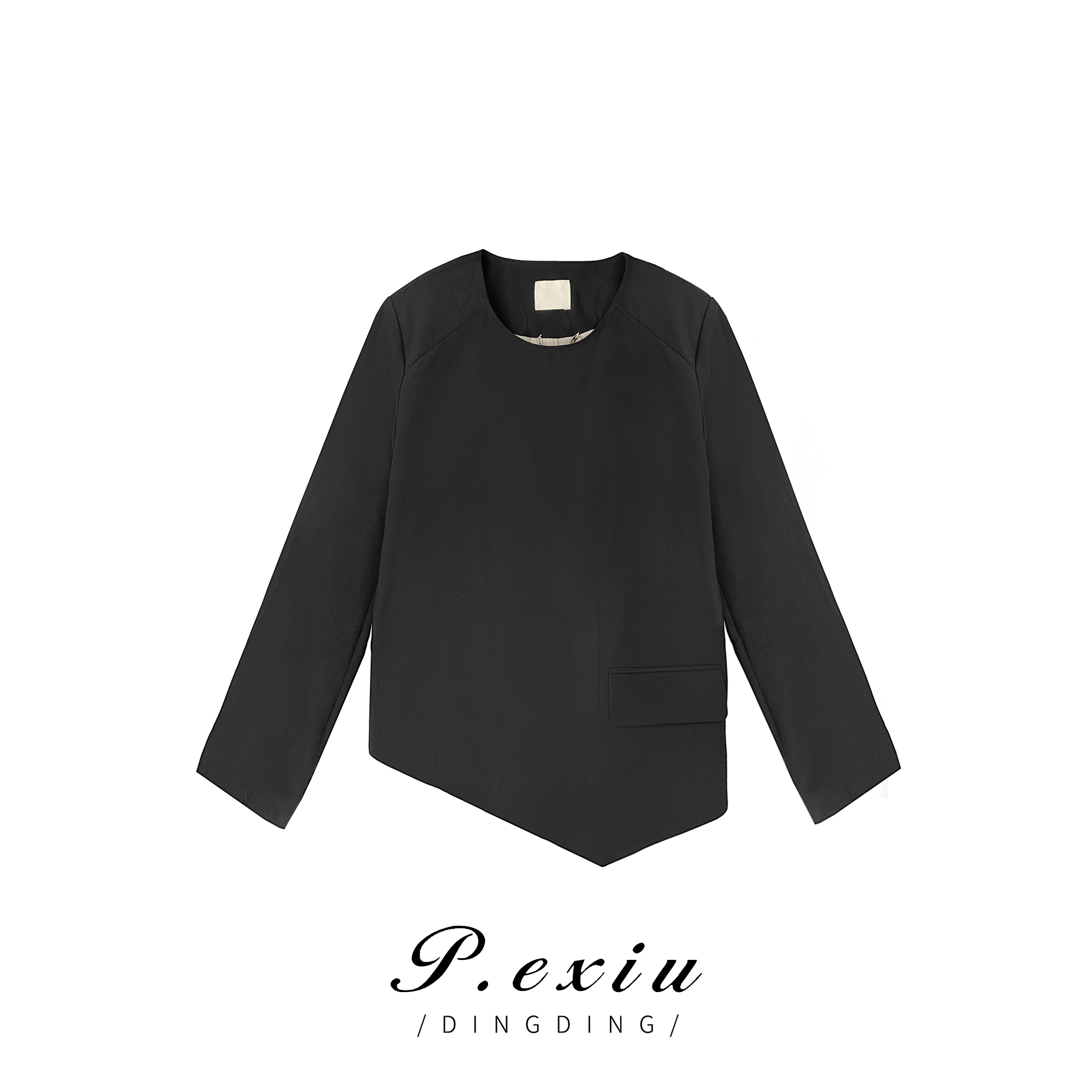 04-2潘依绣丁丁宠粉新款设计感不规则气质宽松套头长袖西装 K5318