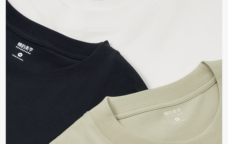 「棉的美学」320G重磅圆领透气宽松简约百搭休闲半袖情侣竹节棉T恤