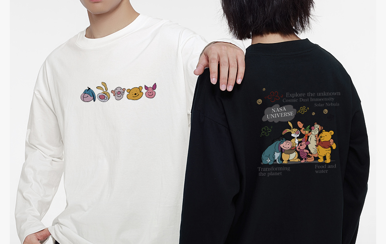 「棉的美学」 小熊一家趣味印花长袖~秋季休闲百搭印花长袖情侣款