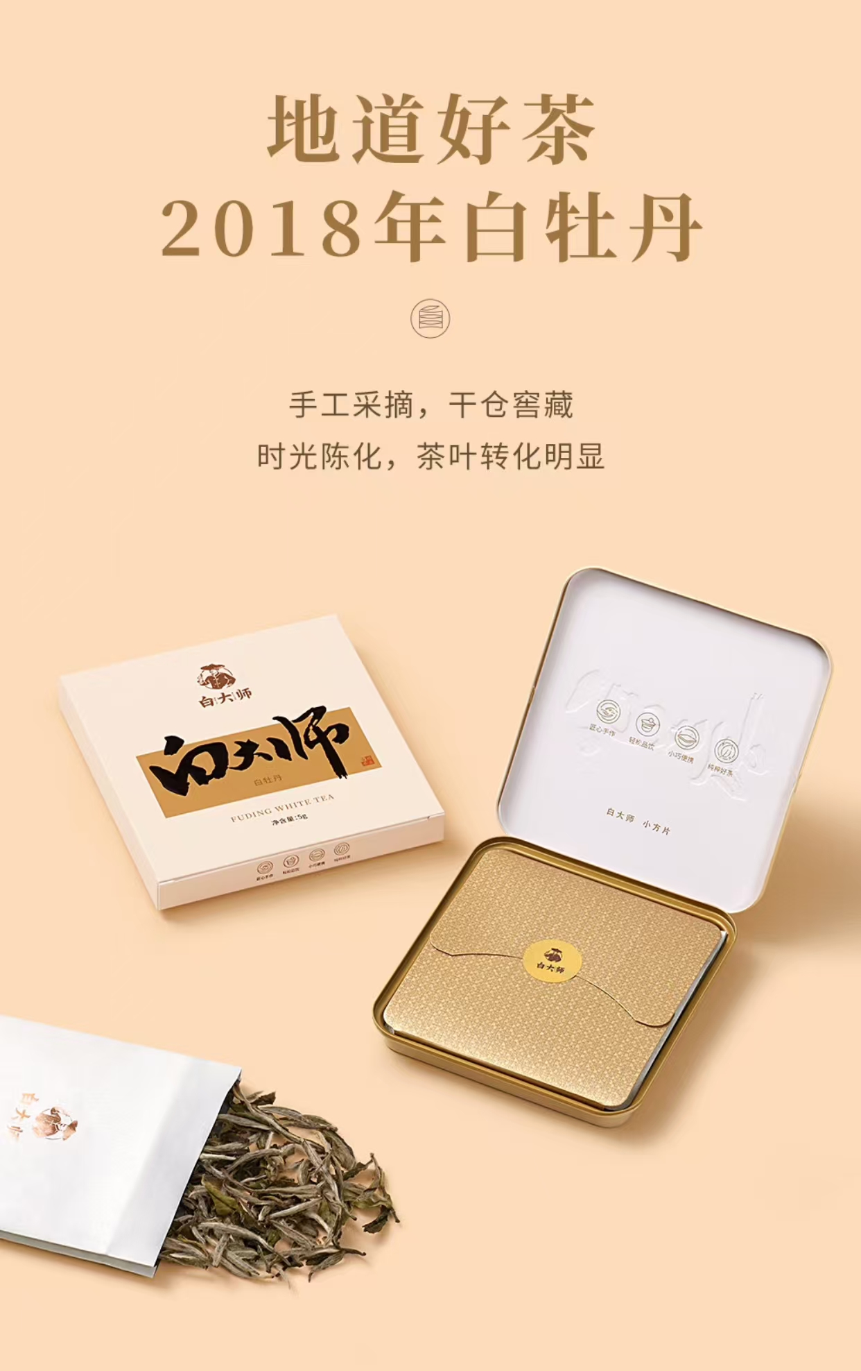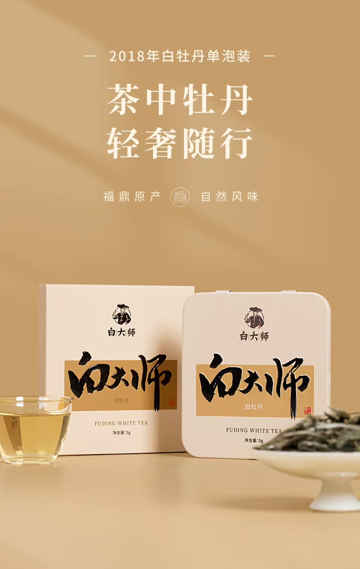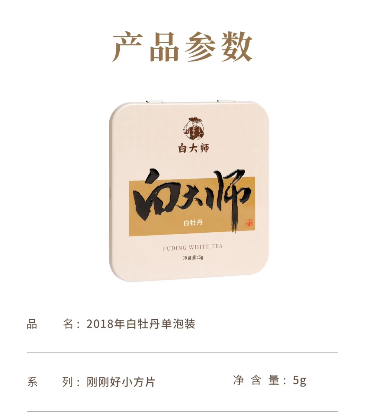 白大师 茶叶福鼎白茶2018年白牡丹刚刚好小方片5g