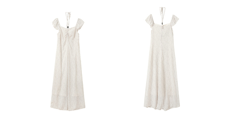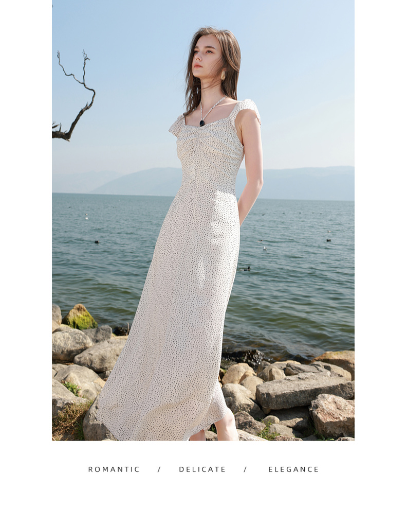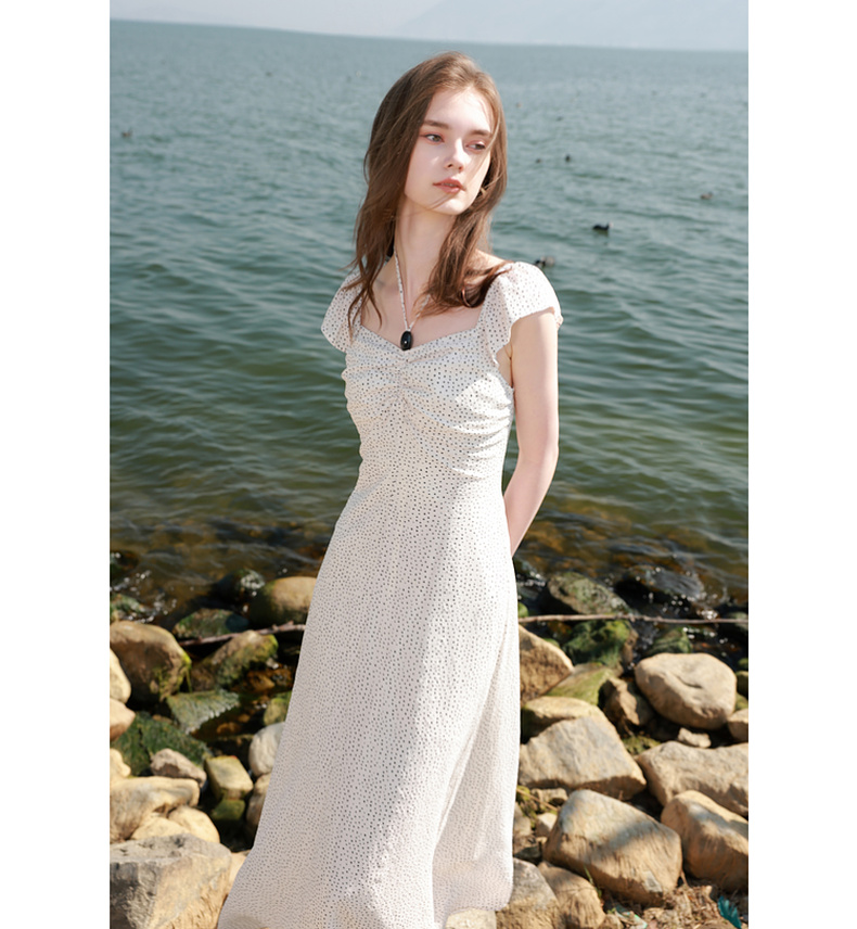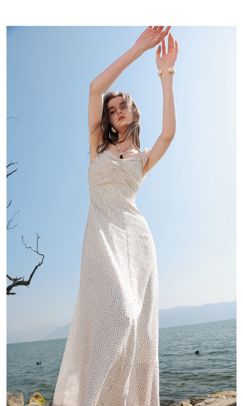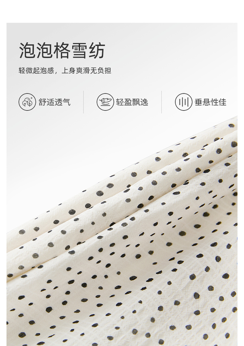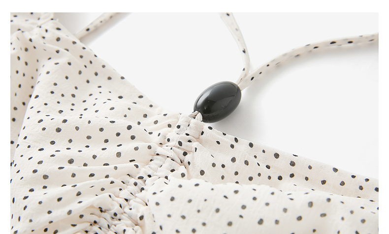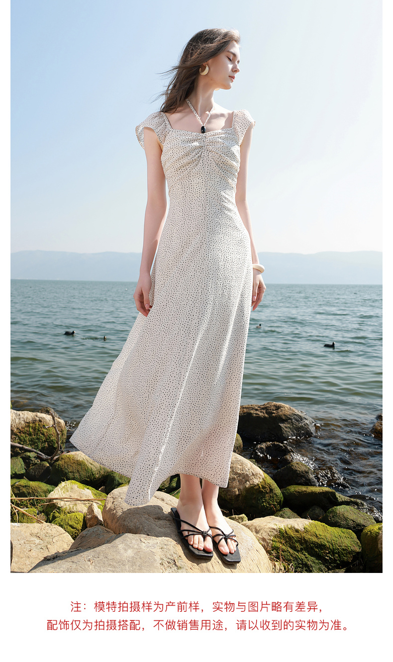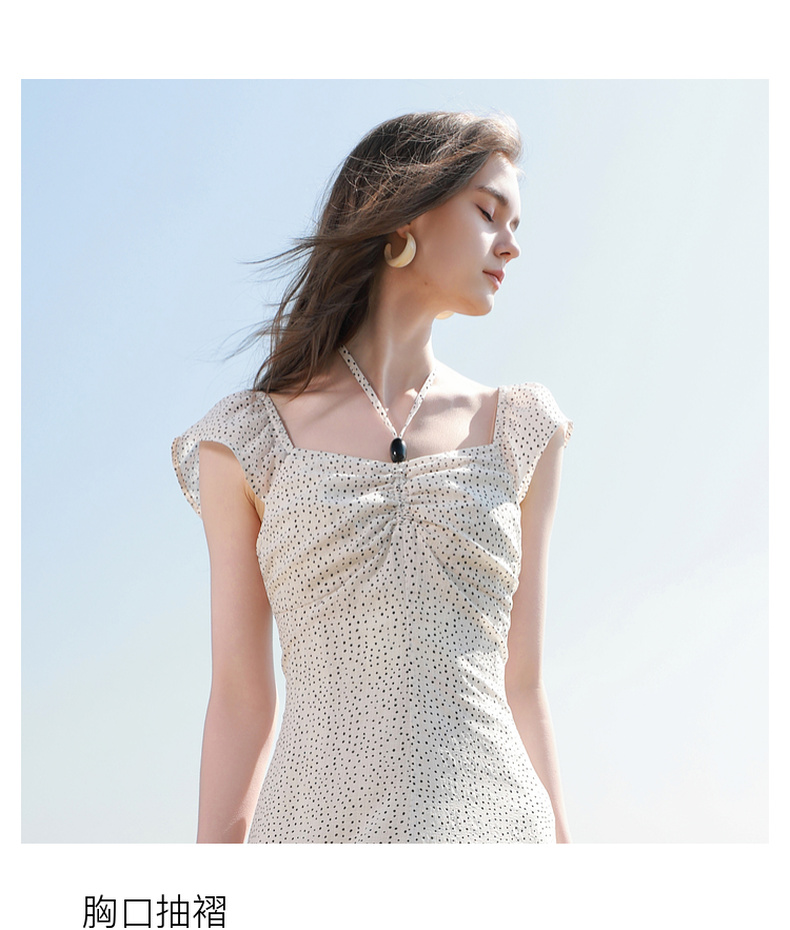 三彩2025夏季新款波点连衣裙法式收腰A字裙飞飞袖系带长裙M