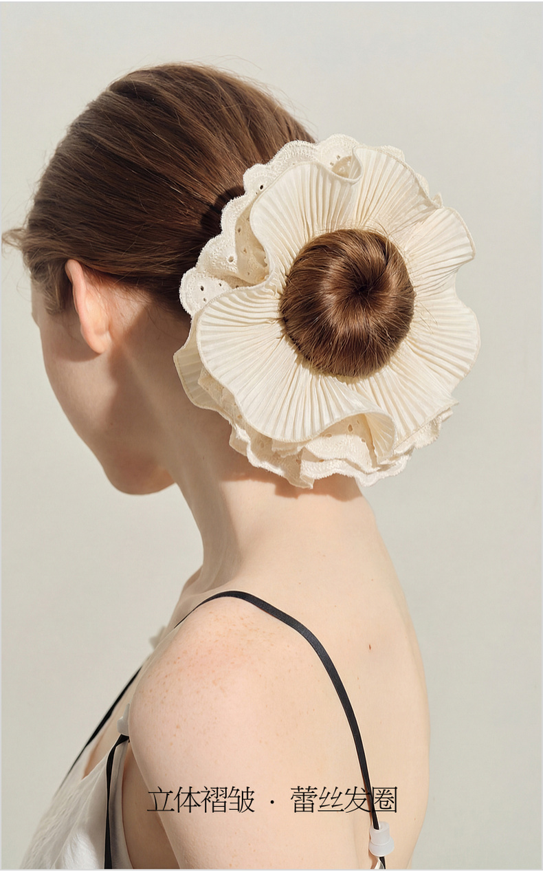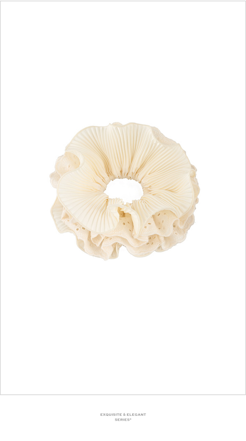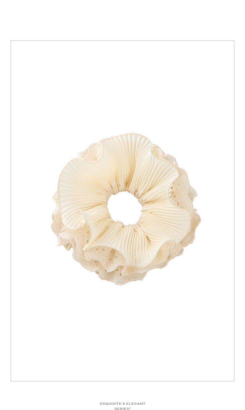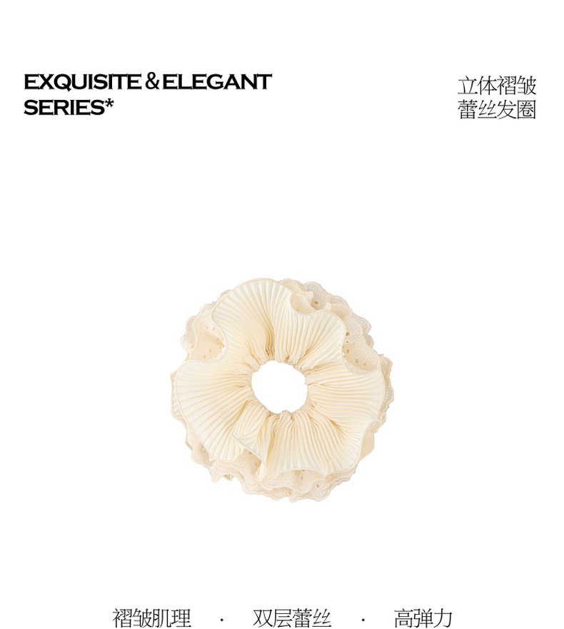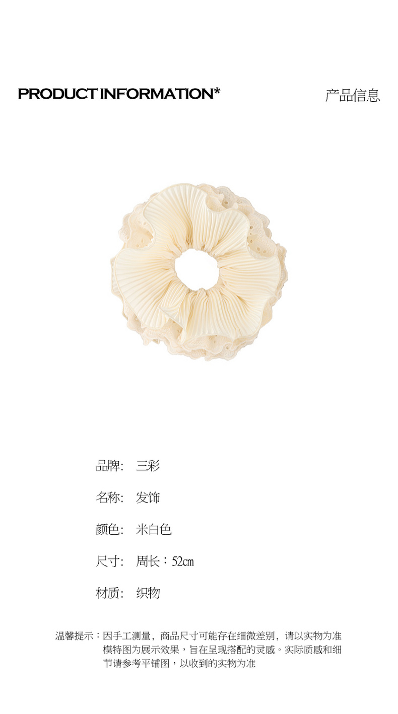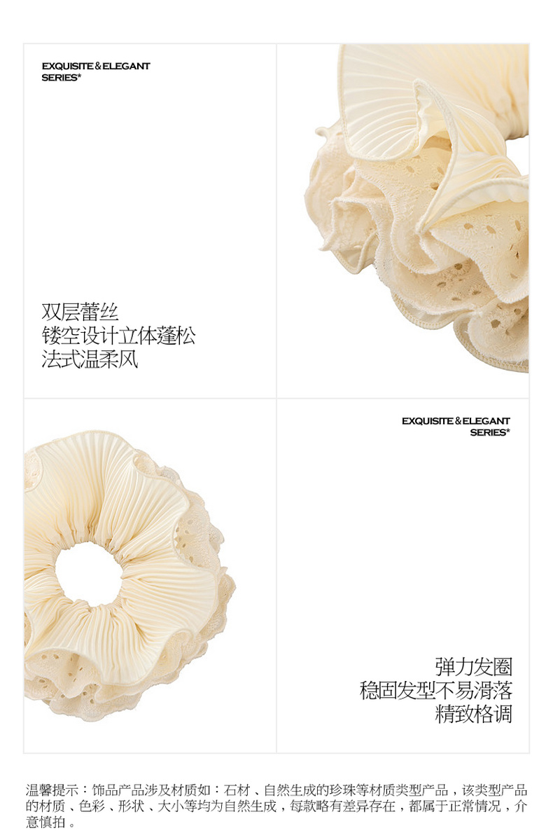 三彩2026新款白色褶皱双层蕾丝发圈荷叶边发绳约会下午茶法式温柔