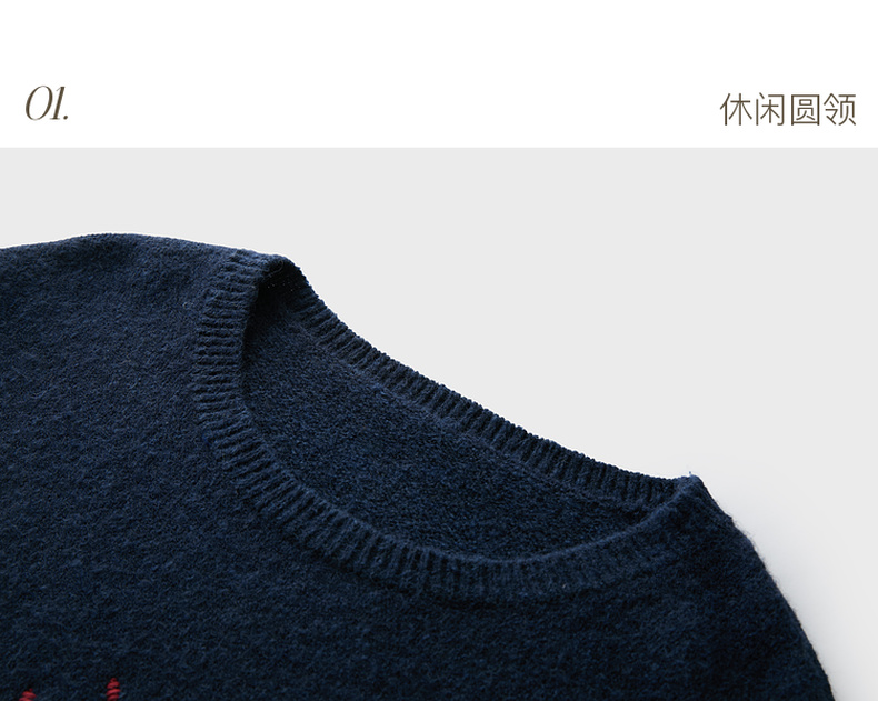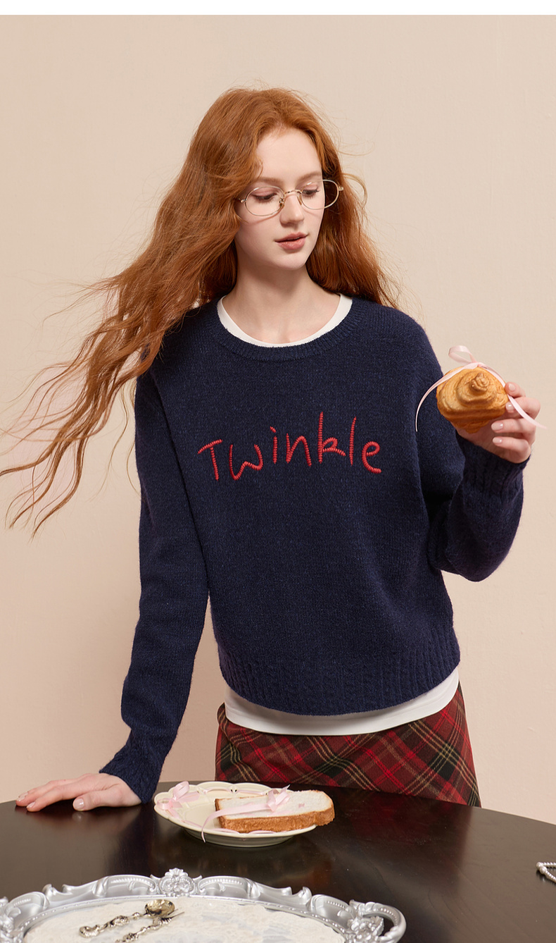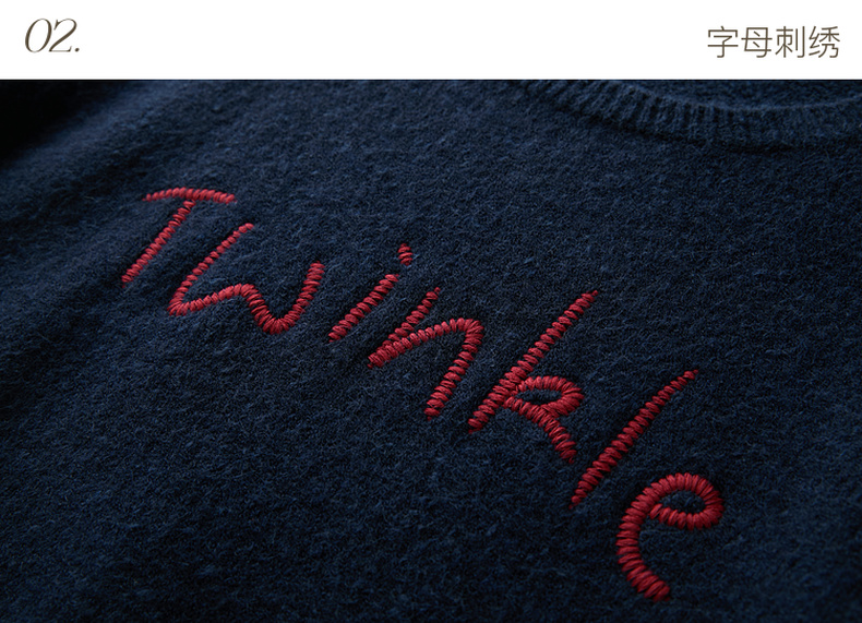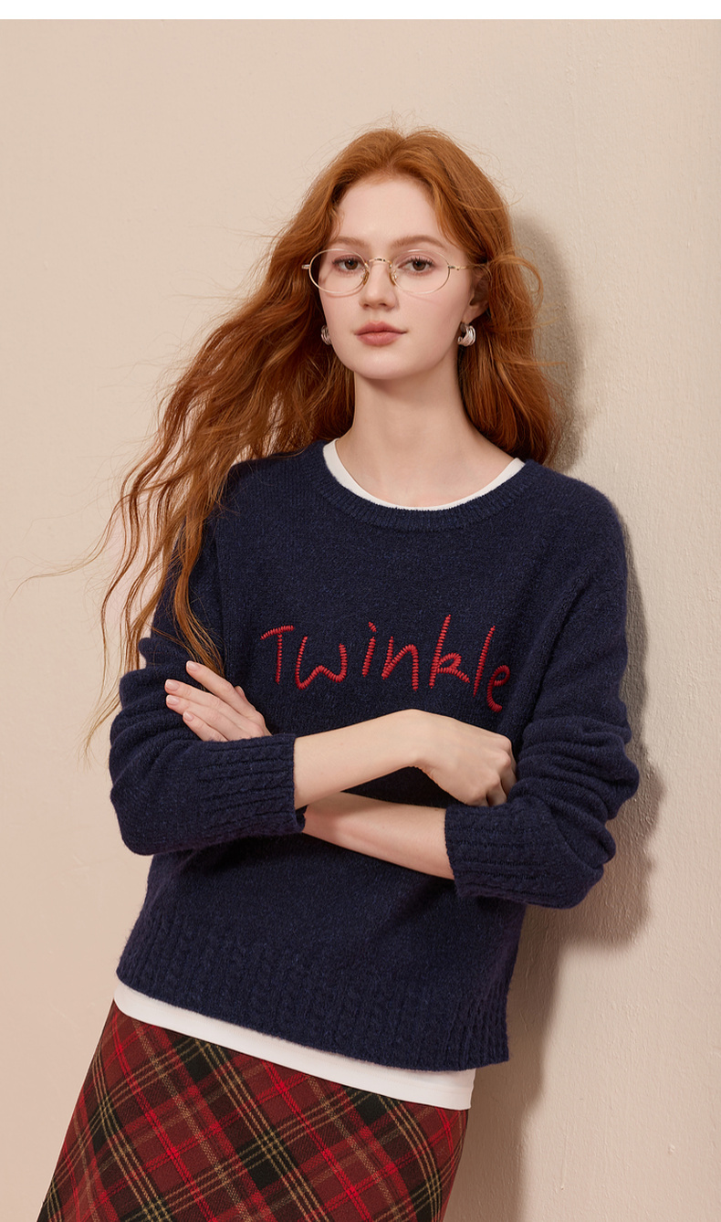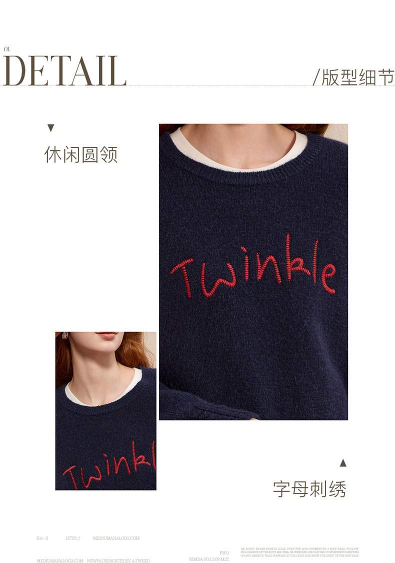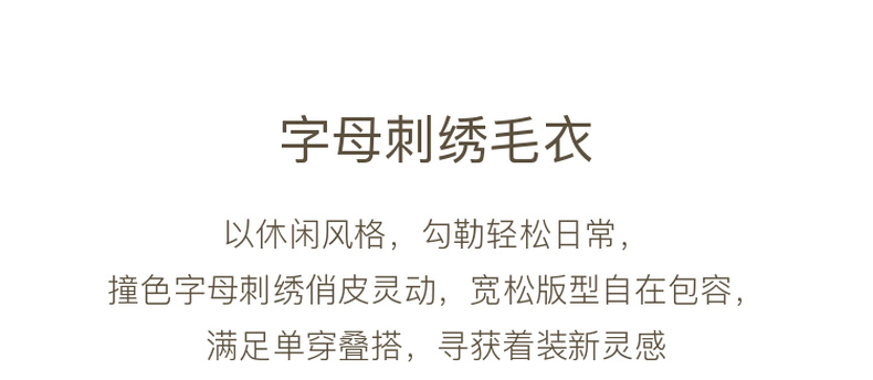 三彩2025冬季新款字母刺绣针织衫圆领宽松落肩袖毛衫休闲M