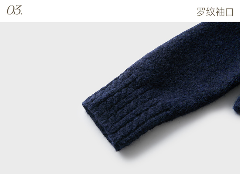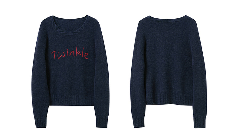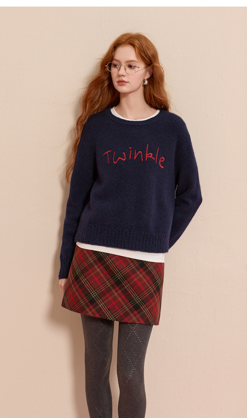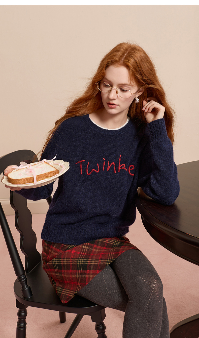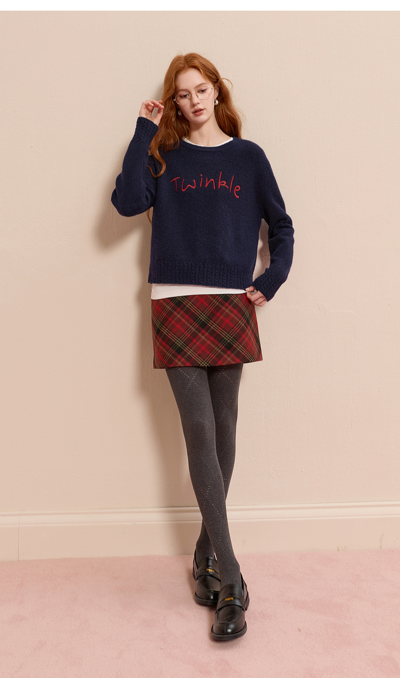 三彩2025冬季新款字母刺绣针织衫圆领宽松落肩袖毛衫休闲M