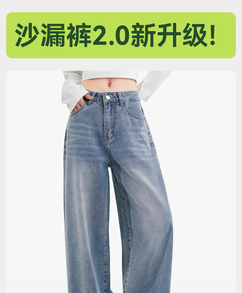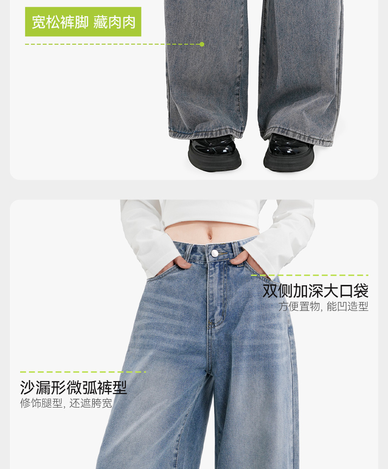「棉的美学」复古阔腿牛仔裤女2025春秋新款高腰显瘦垂感拖地长裤