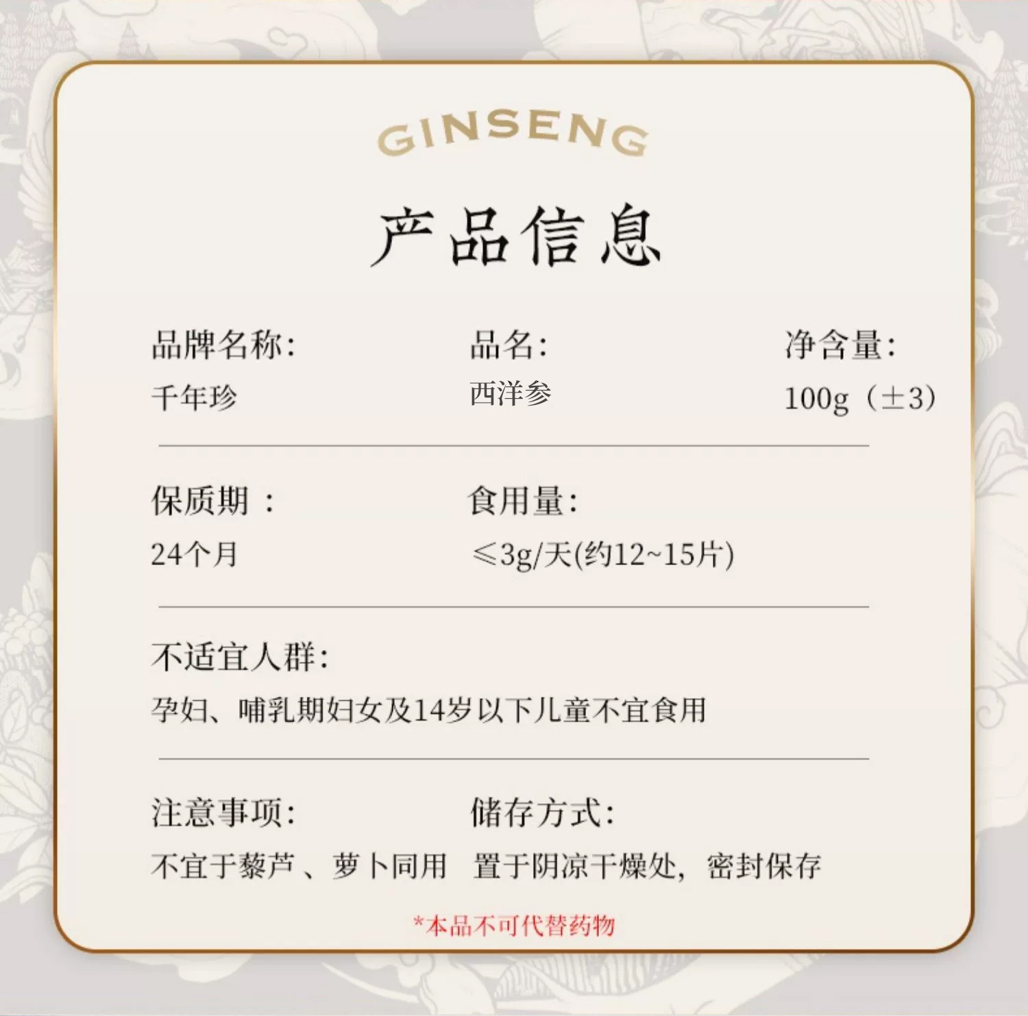 千年珍 西洋参片(1.4cm) 50g/瓶