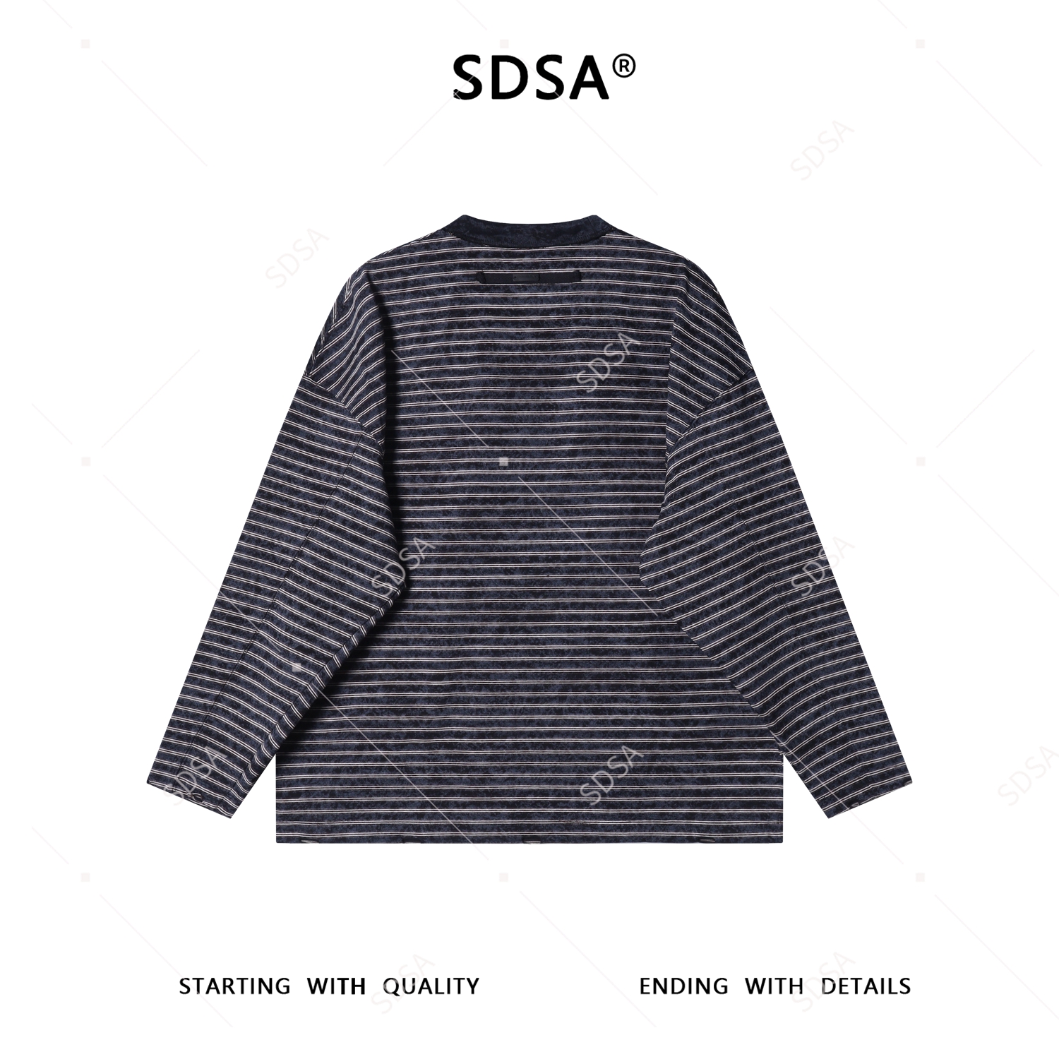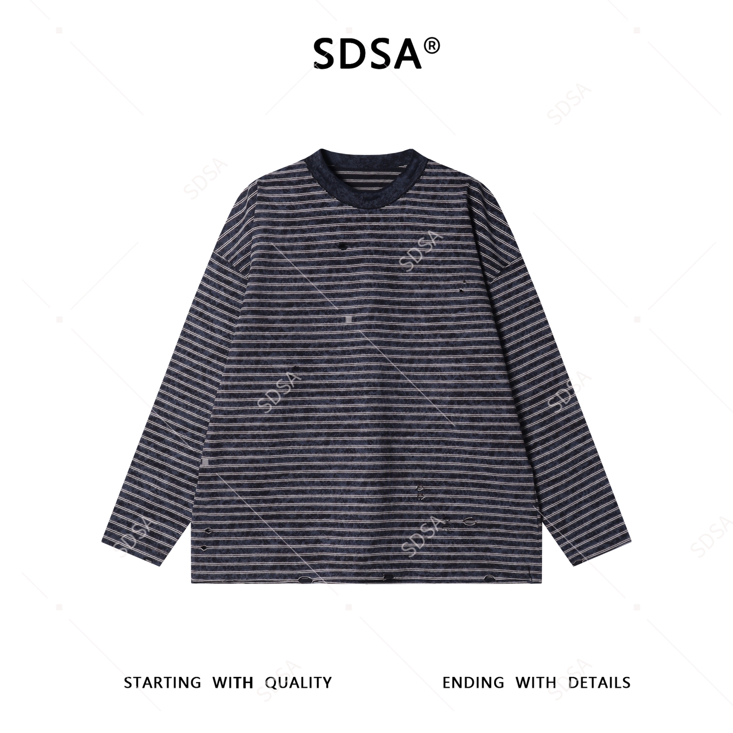 SDSA男士秋冬新款痞帅男装潮牌扎染撞色条纹圆领长袖T恤百搭时尚