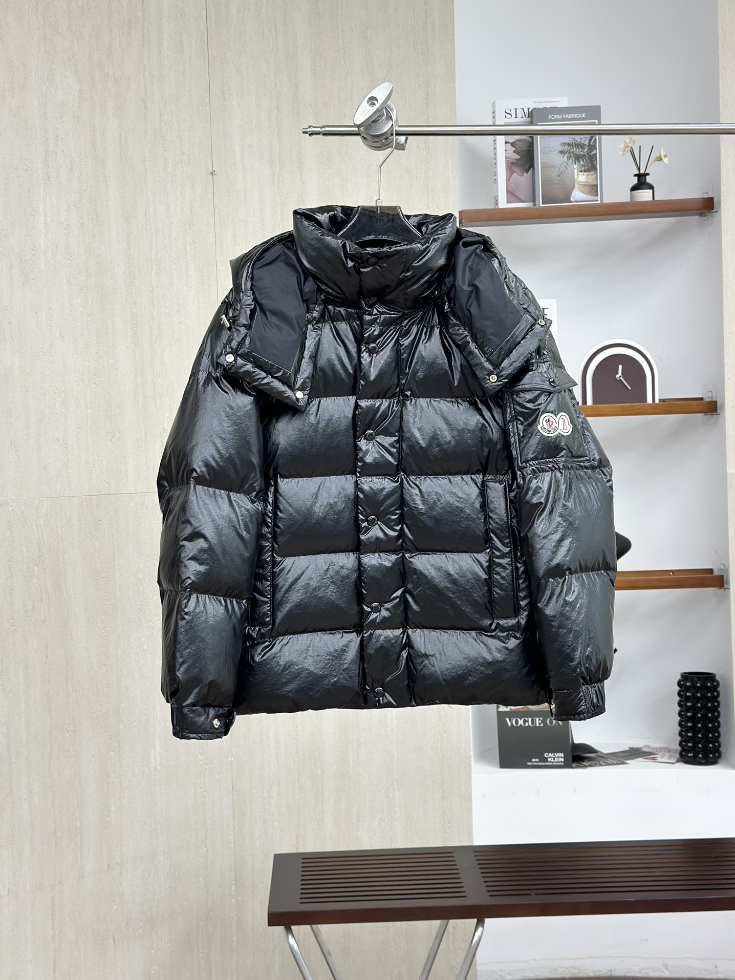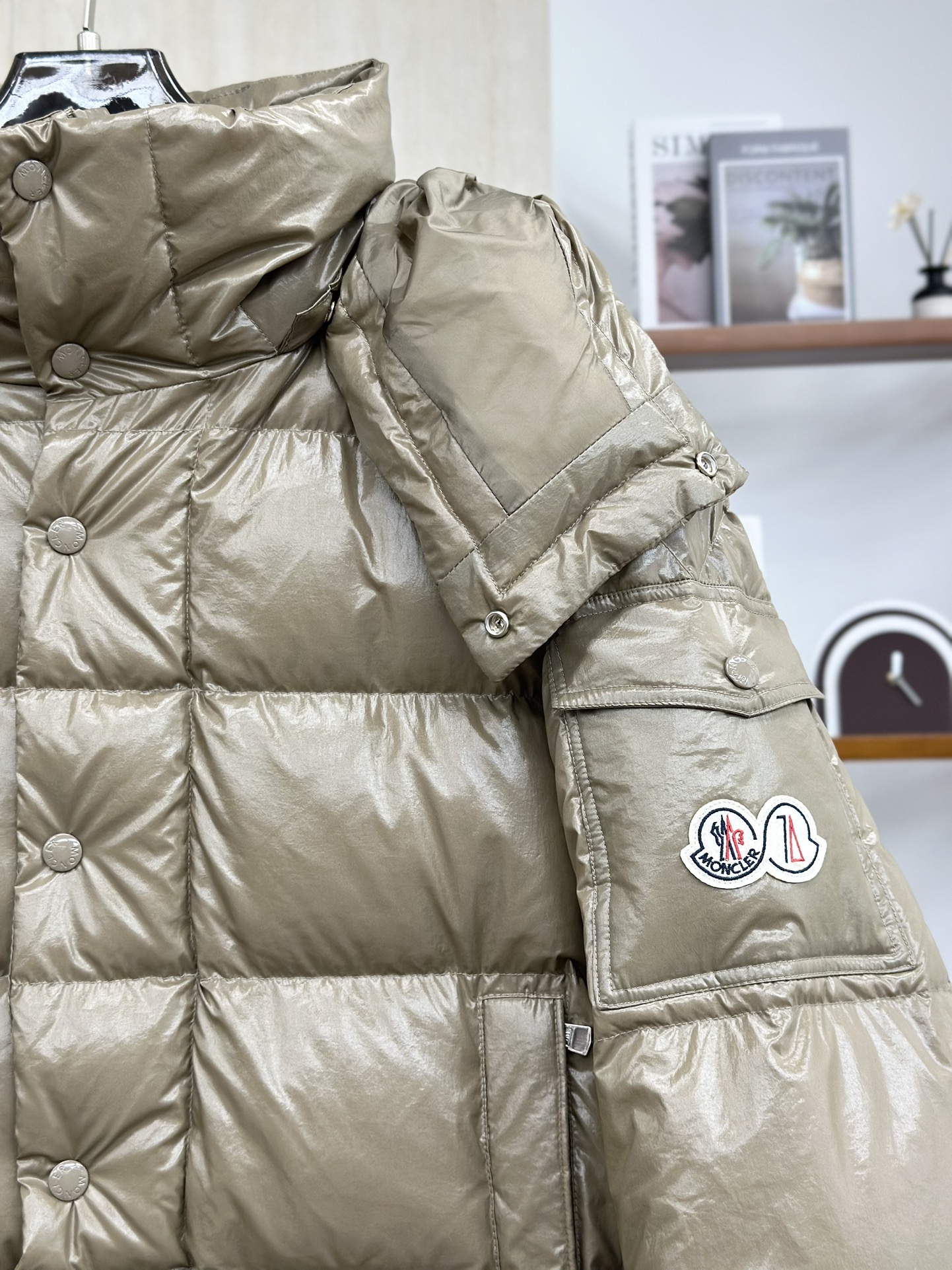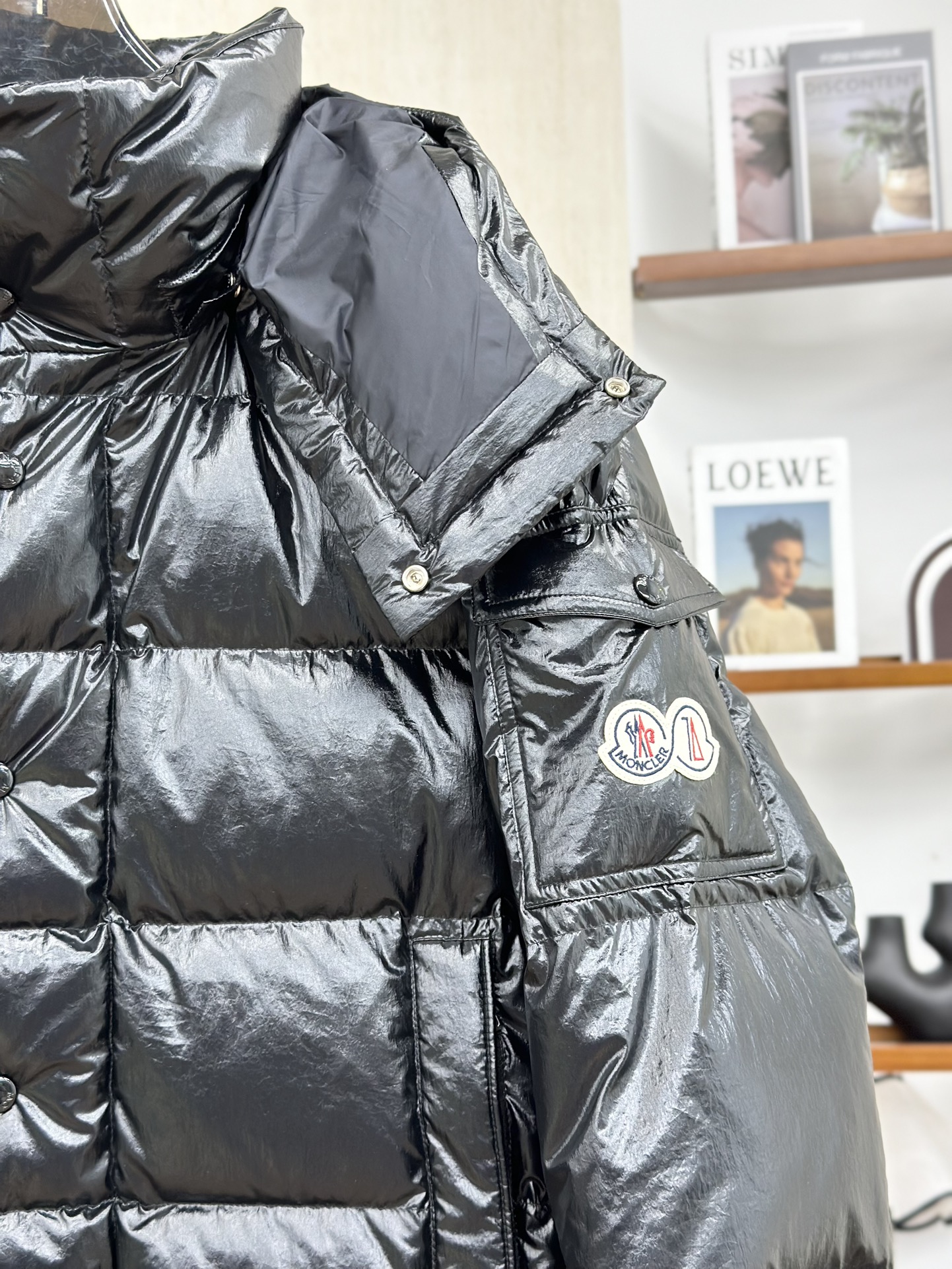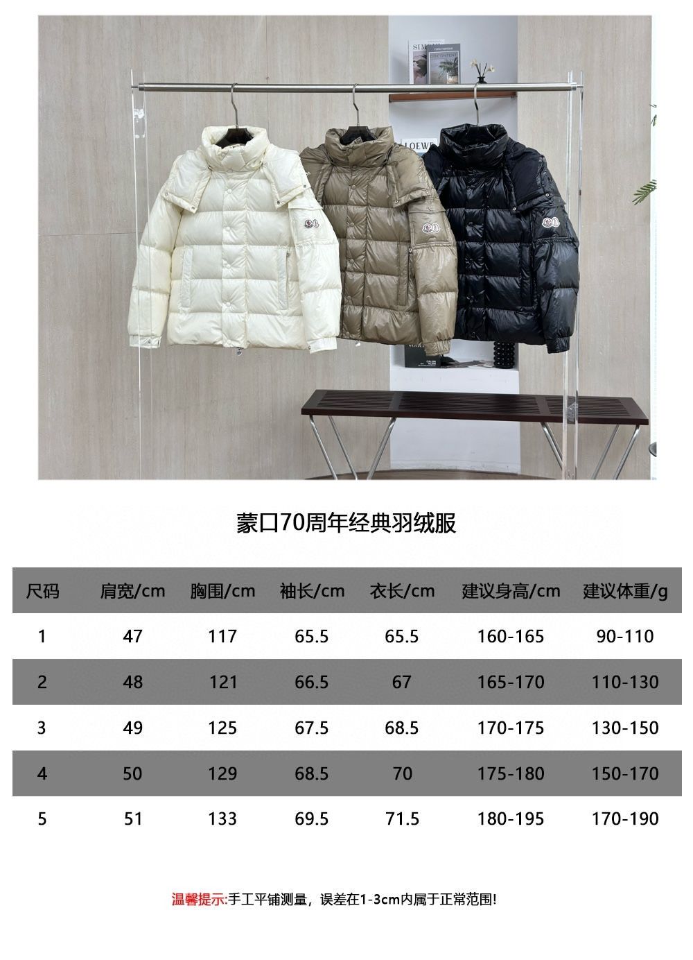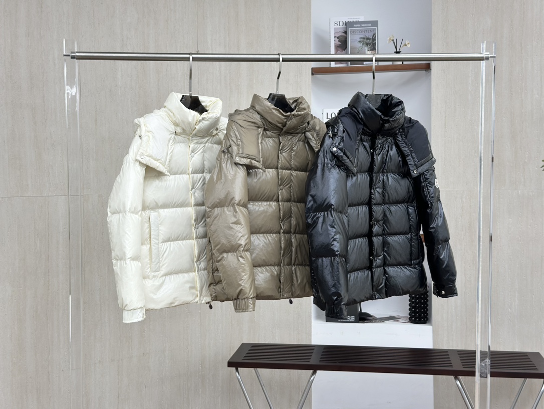 Moncler/蒙口70周年限定款羽绒服 全新色调焕新标志性款型。彰显品牌DNA的典范之作,采用闪亮漆面尼龙制成,点缀标志性长方格绗缝。跨越季节与时尚的经典短款设计,具有个性鲜明的轮廓、可拆卸风帽和可调节下摆。衣袖饰以品牌标志性的经典贴袋以及专为庆祝70周年而设计的拼贴徽标。顶级品质,填充90达标大朵白鸭绒,高端品质一比一定制五金,面料特定,黑色漆面面料特定!