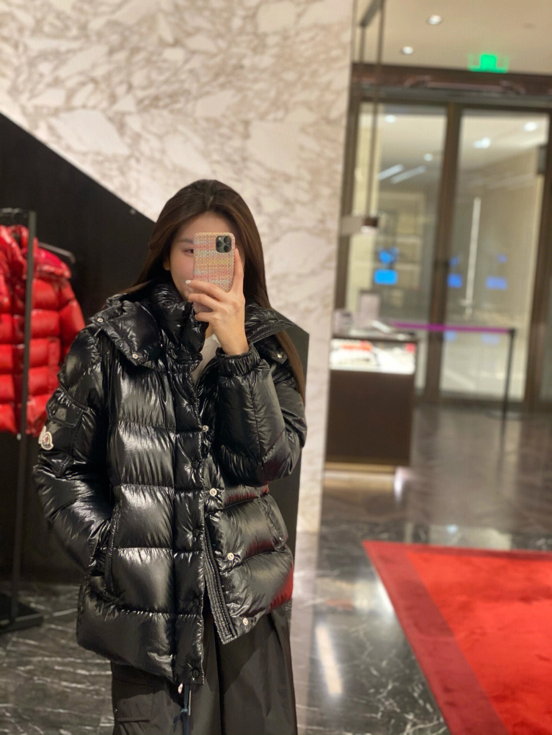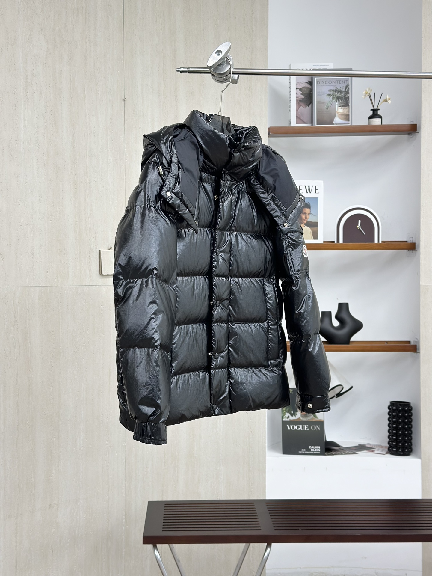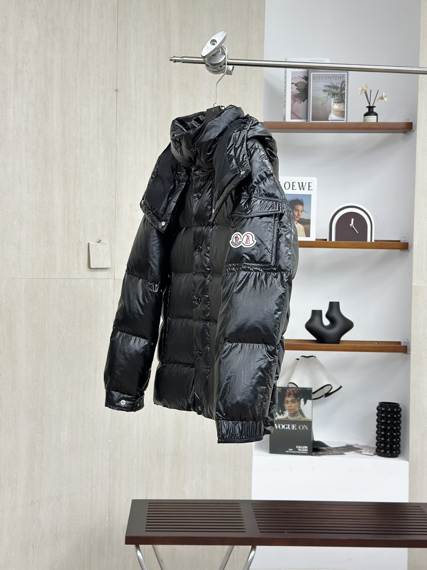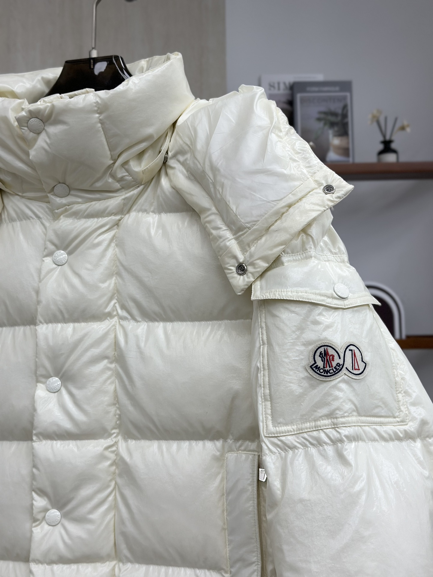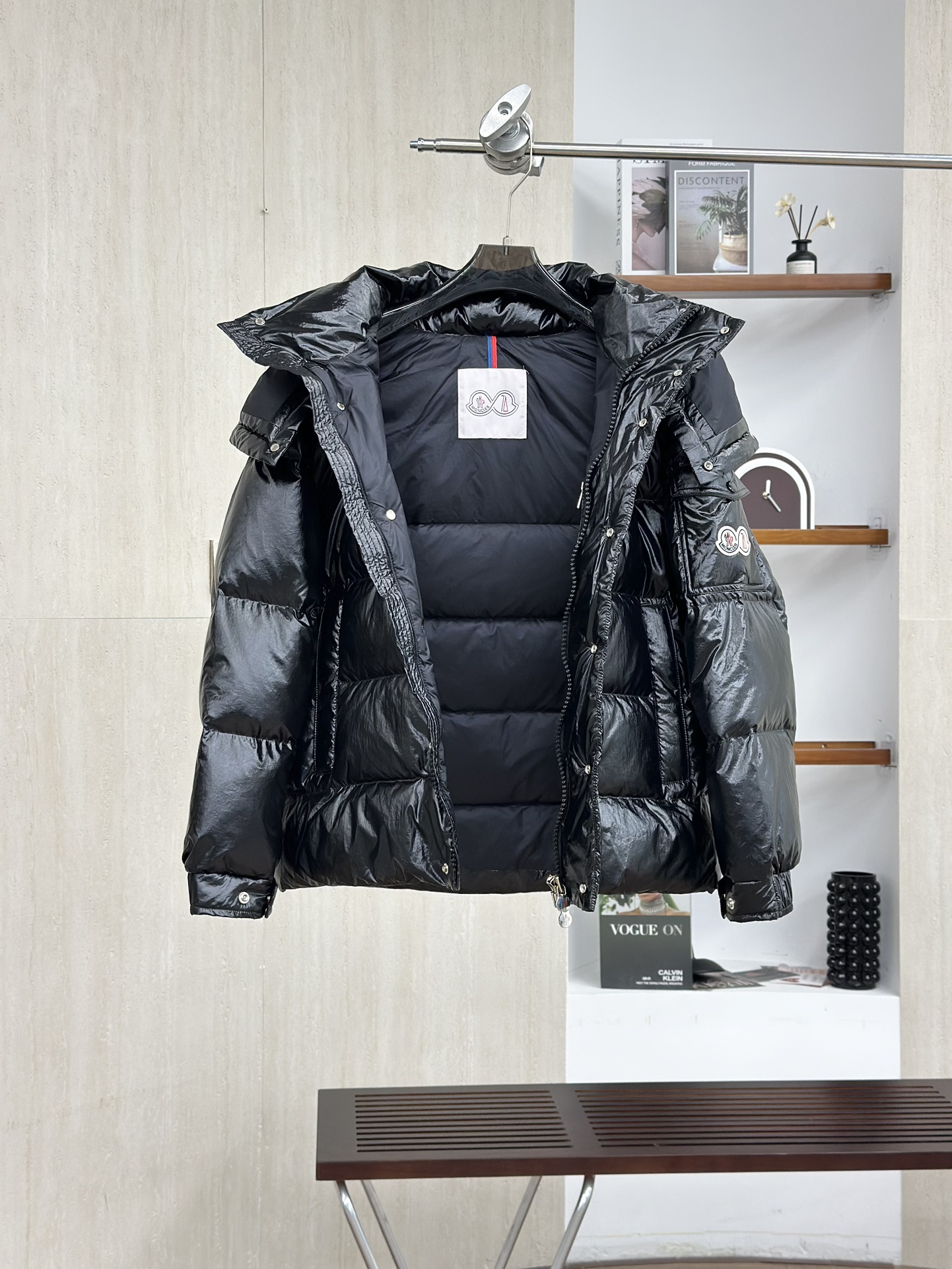 Moncler/蒙口70周年限定款羽绒服 全新色调焕新标志性款型。彰显品牌DNA的典范之作,采用闪亮漆面尼龙制成,点缀标志性长方格绗缝。跨越季节与时尚的经典短款设计,具有个性鲜明的轮廓、可拆卸风帽和可调节下摆。衣袖饰以品牌标志性的经典贴袋以及专为庆祝70周年而设计的拼贴徽标。顶级品质,填充90达标大朵白鸭绒,高端品质一比一定制五金,面料特定,黑色漆面面料特定!