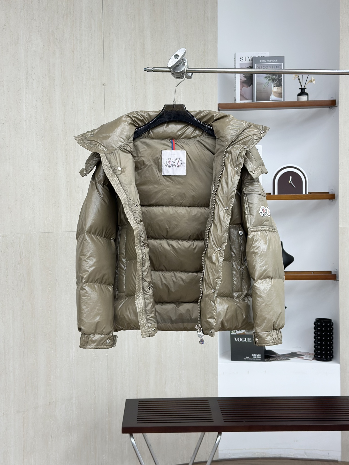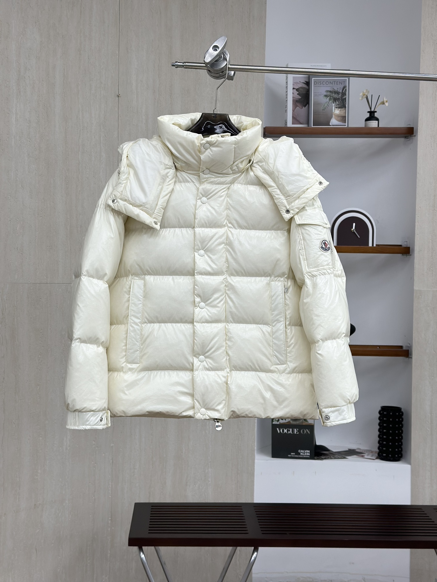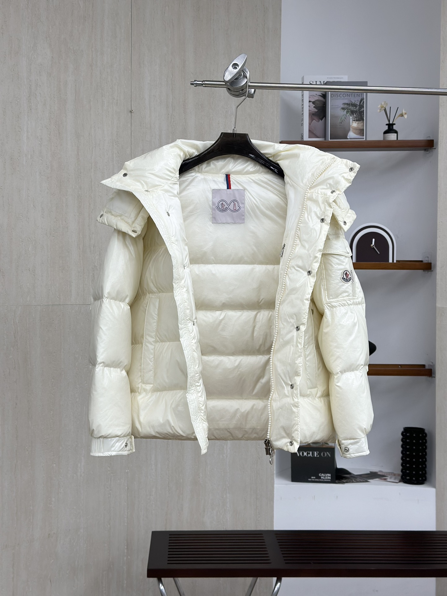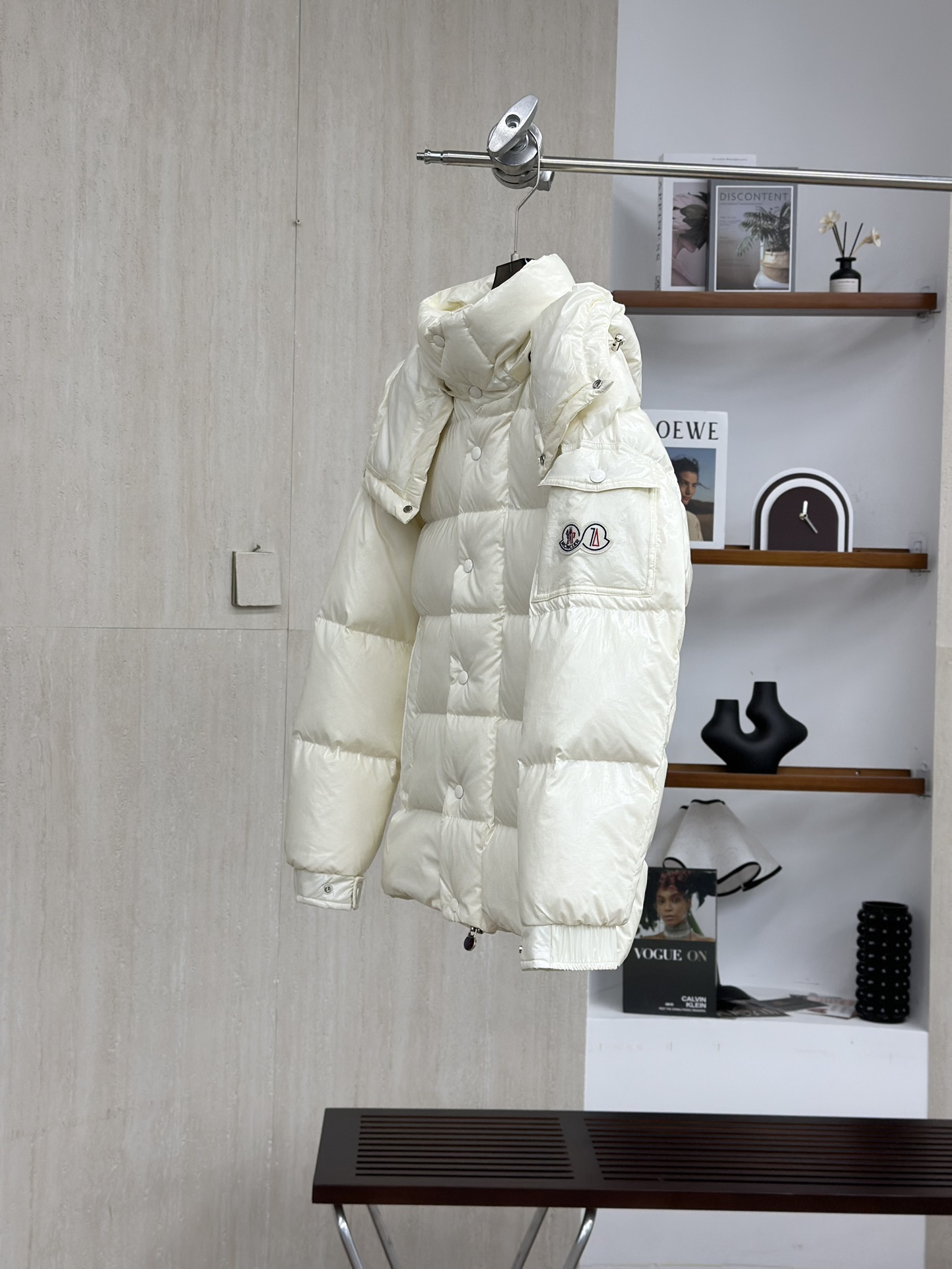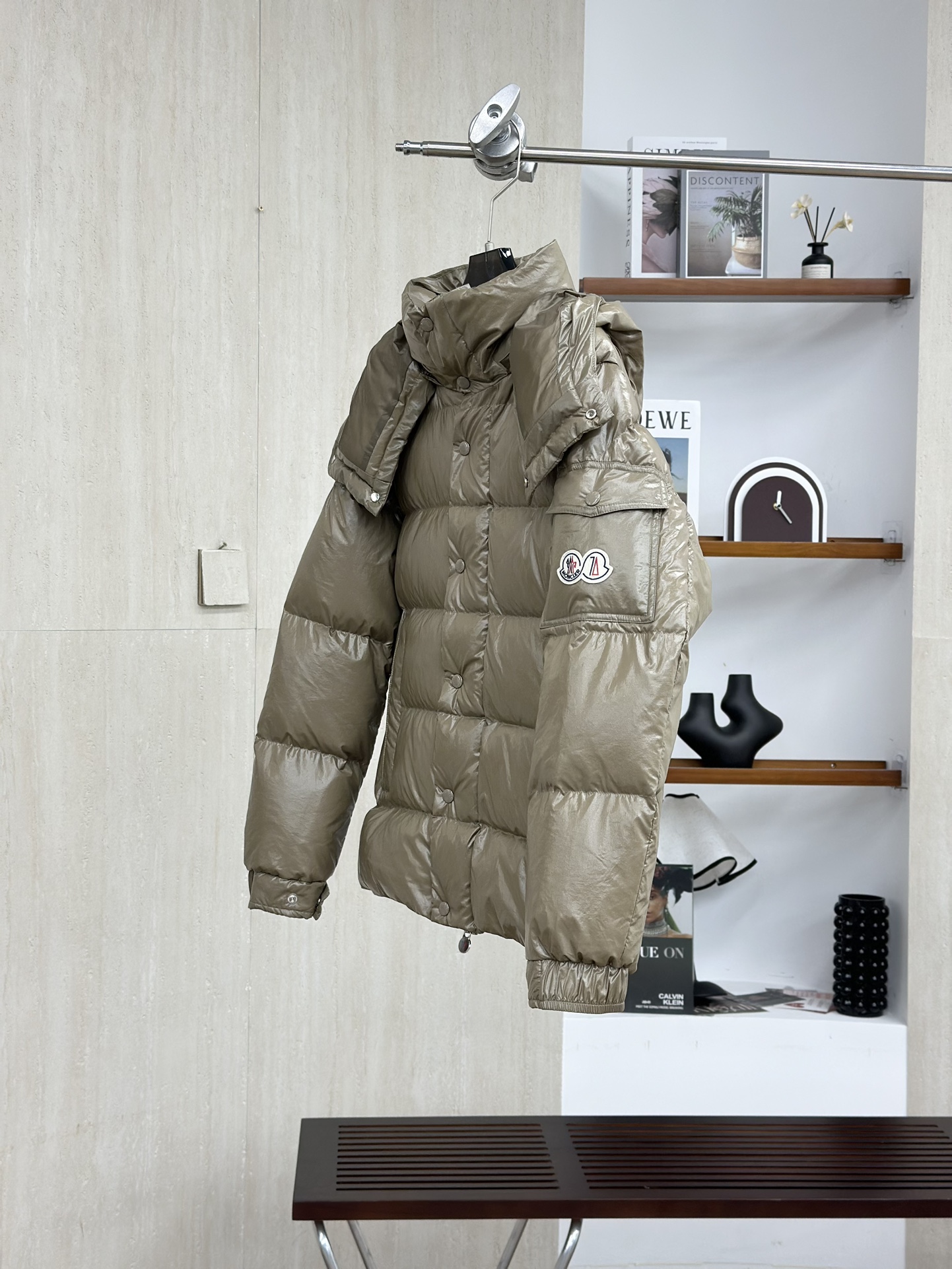 Moncler/蒙口70周年限定款羽绒服 全新色调焕新标志性款型。彰显品牌DNA的典范之作,采用闪亮漆面尼龙制成,点缀标志性长方格绗缝。跨越季节与时尚的经典短款设计,具有个性鲜明的轮廓、可拆卸风帽和可调节下摆。衣袖饰以品牌标志性的经典贴袋以及专为庆祝70周年而设计的拼贴徽标。顶级品质,填充90达标大朵白鸭绒,高端品质一比一定制五金,面料特定,黑色漆面面料特定!