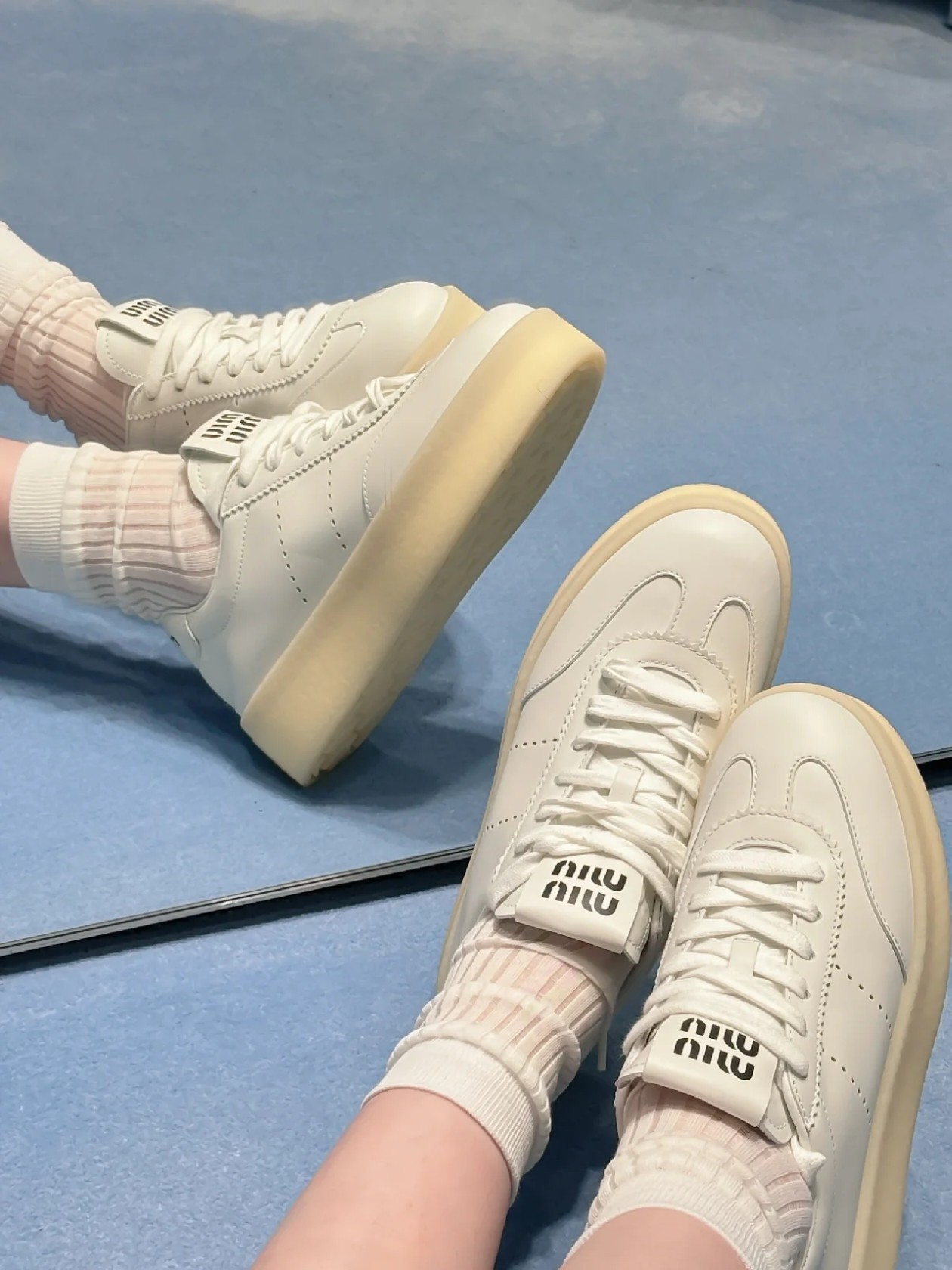 𝐌𝐢𝐮 𝐌𝐢𝐮# 缪缪新款厚底小白鞋 怎么穿都好看 上脚超级舒服 牛皮材质 羊皮内里 原版鞋底