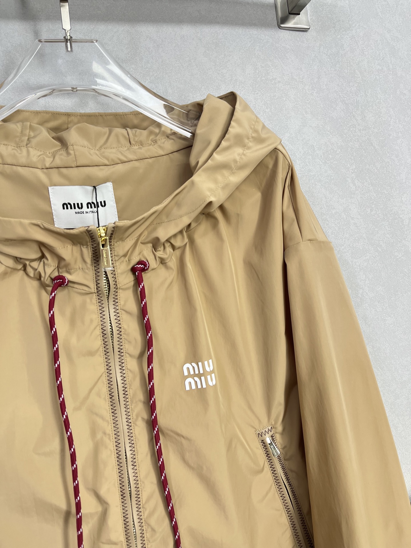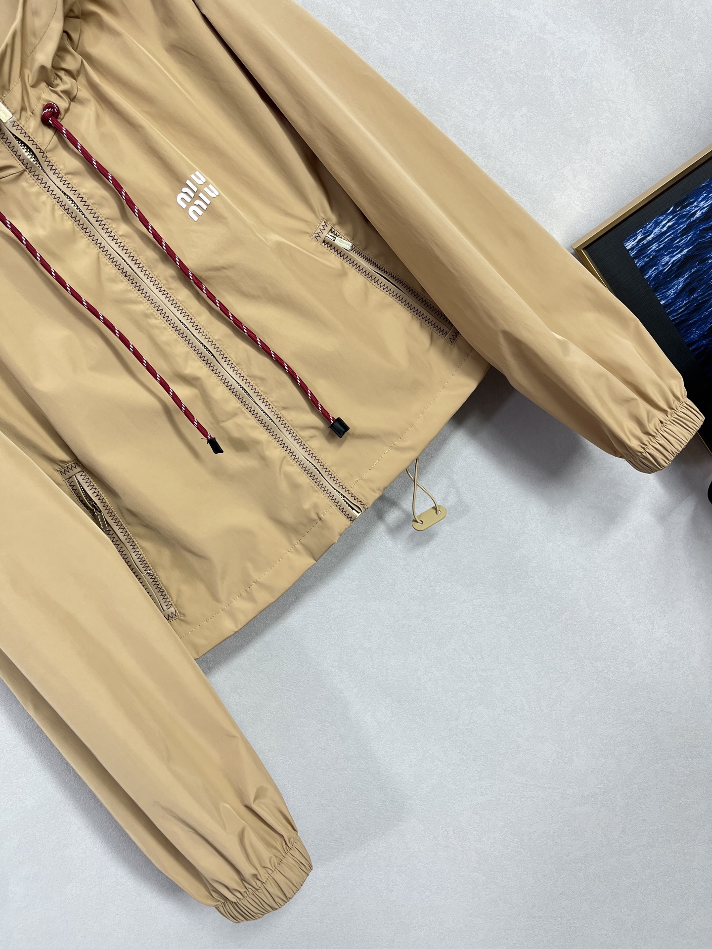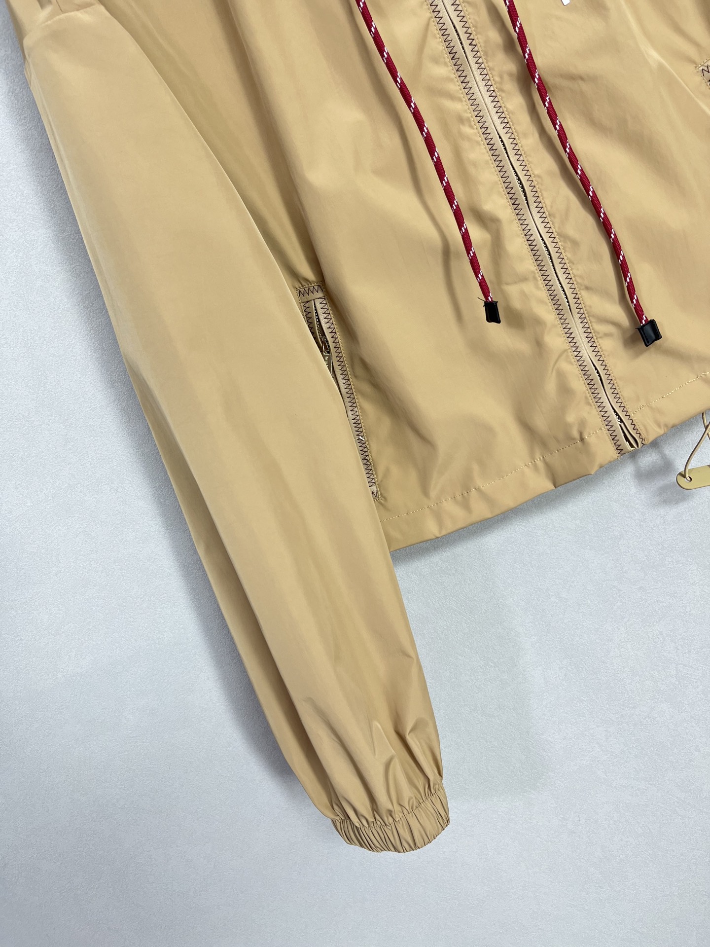 🆕卡其色连帽防晒外套,轻盈尼龙材质,春夏穿超舒服!短款设计+红色编织抽绳,细节满分,拉链开合超方便。袖口松紧收口,防风又贴合,日常通勤,户外踏青都能轻松驾驭,搭配高腰裙或休闲裤,活力又时髦SML