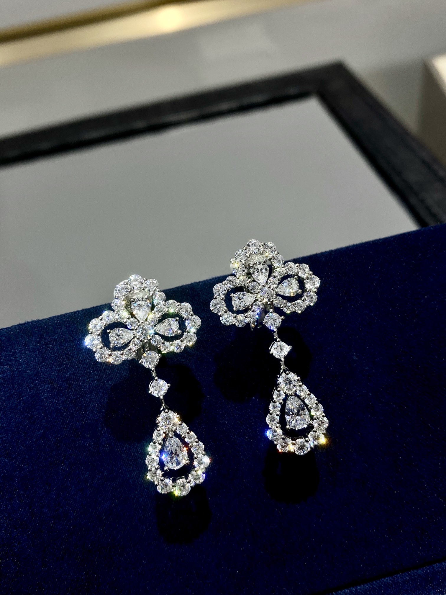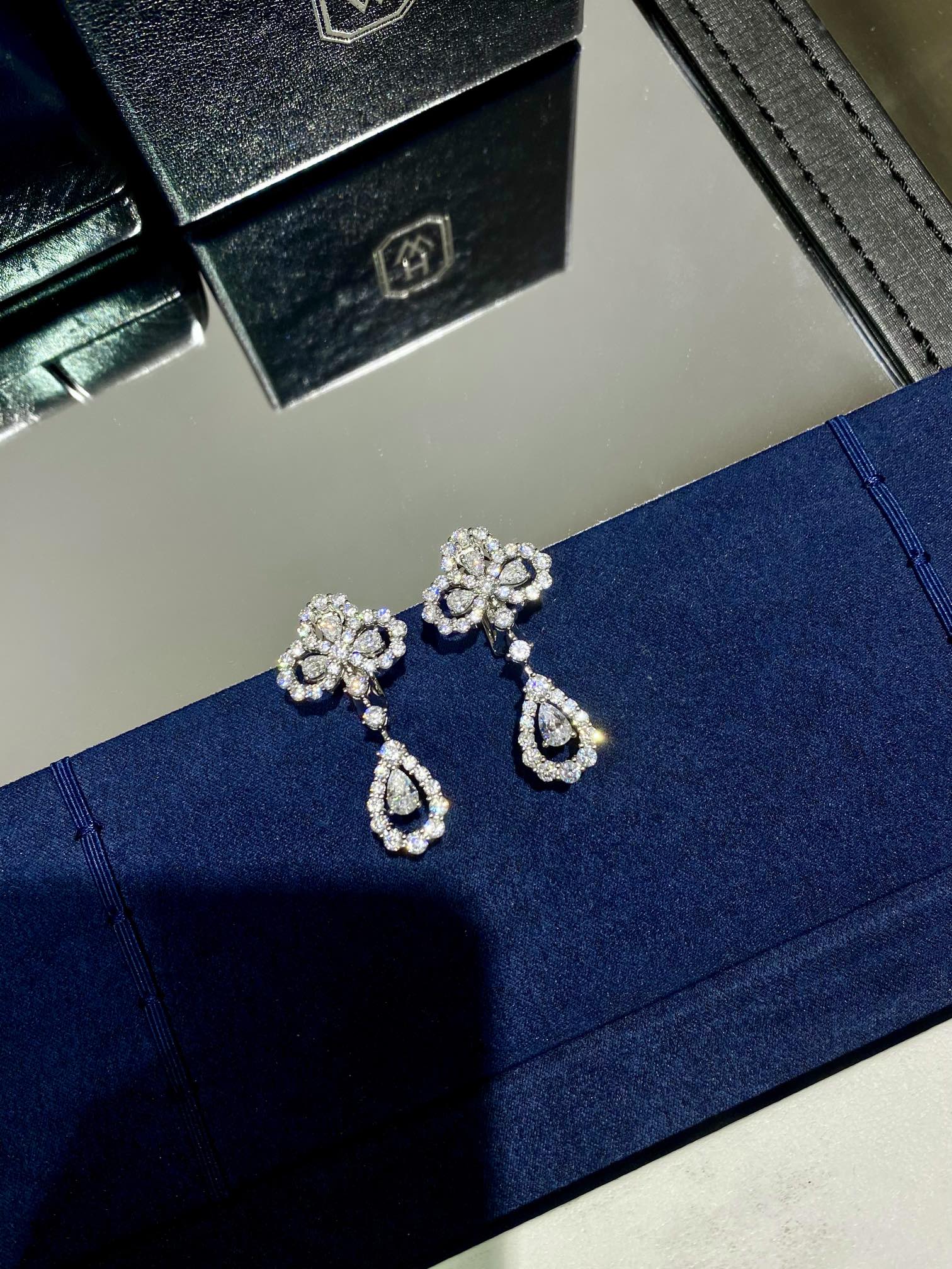 Loop作为经典的图形设计,将设计美学含蓄地表达出来,看似简单蕴藏着大大的玄机,看花形的形态弧度,饱满立体,不同大小的圆钻规律排列,镂空饰以水滴形钻,水滴钻与缝隙之间的比例考究,整个花形呈现一个拱形弧面,而非平面。蕴绽放之意,非常美好!落落大方。关节部分可轻微晃动,灵动美观。 注意我们的是珠宝结构,不是市场上用小圈直接挂起来的设计哦[皱眉]金钻怎么做我们就怎么做,妥妥地呈现珠宝品质感!
