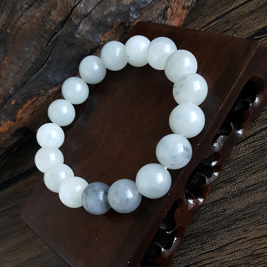 名称 | 天然新疆籽料约12.0MM青花和田玉圆珠手串 |