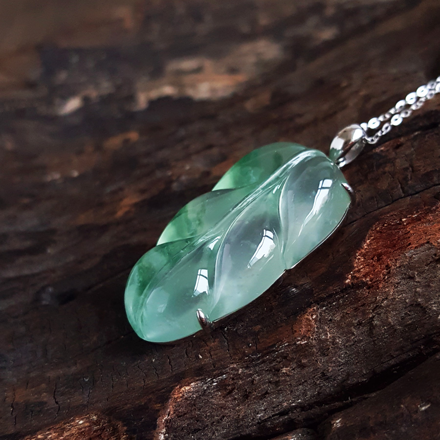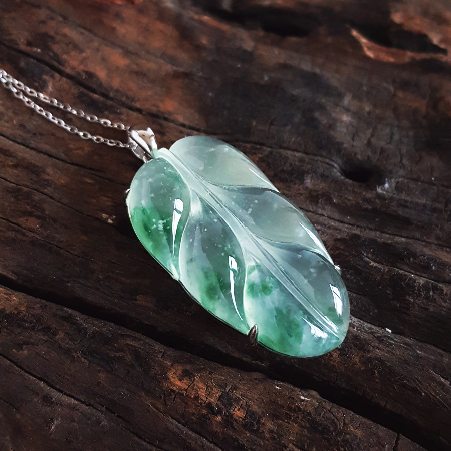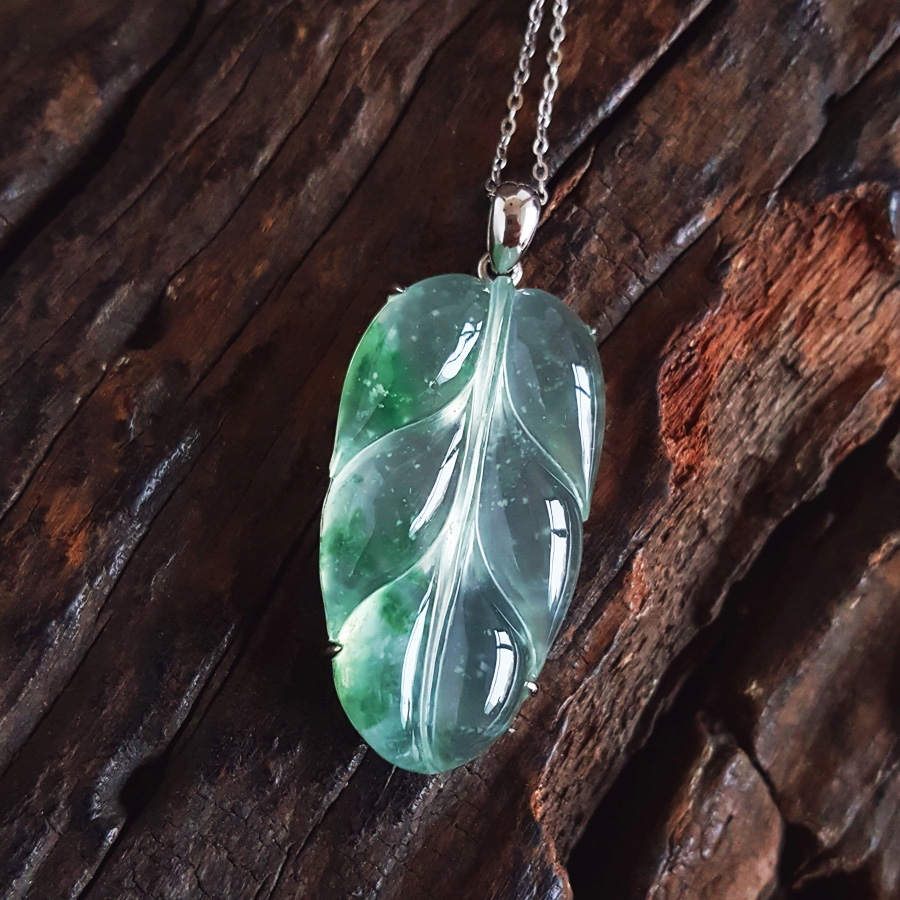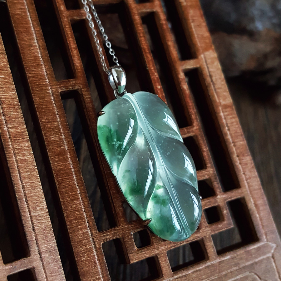 名称 | AU750收藏级白金镶天然木那高冰种飘蓝花叶子(金枝玉叶)翡翠吊坠项链 |